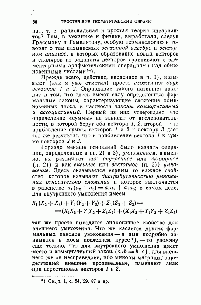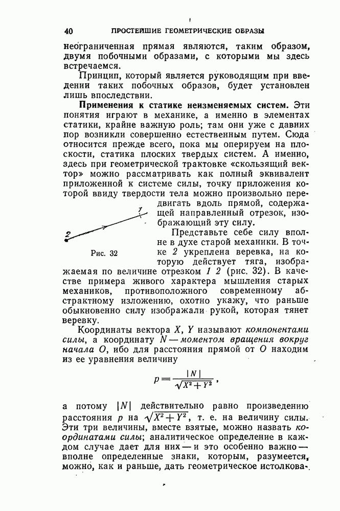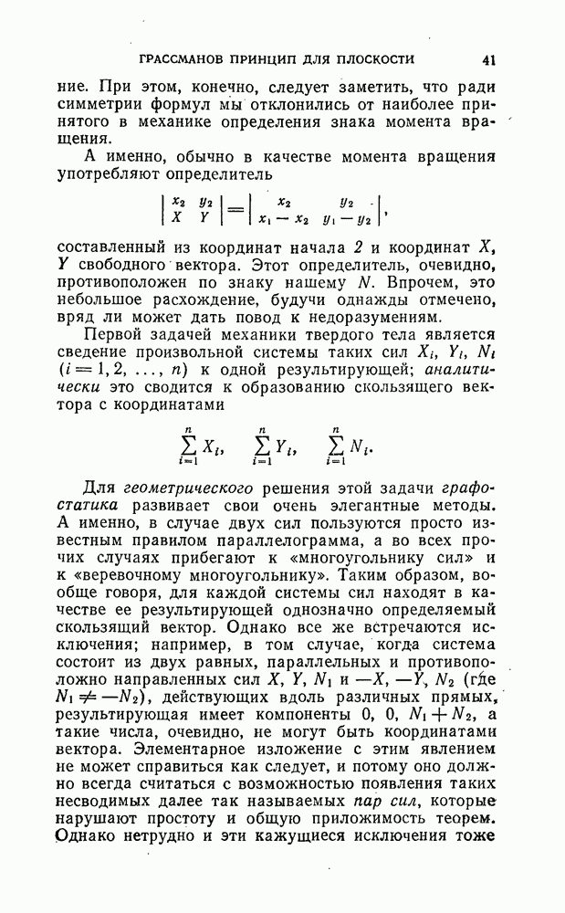 приложенных к твердому телу. Обыкновенно в элементарных книгах и на лекциях на эту задачу затрачивают много времени, тогда как мы здесь сможем решить ее очень быстро благодаря тому, что наши аналитические формулы делают излишним различение разных случаев, неизбежное при тяжеловесном элементарном изложении, не употребляющем пра вила знаков. Основной принцип сложения (сил) заключается в том, что составляют суммы