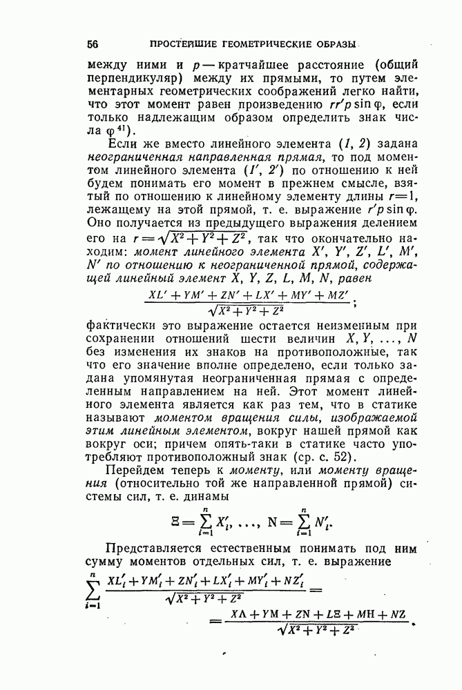 фактически это выражение остается неизменным при сохранении отношений шести величин Перейдем теперь к моменту, или моменту вращения (относительно той же направленной прямой) системы сил, т. е. динамы