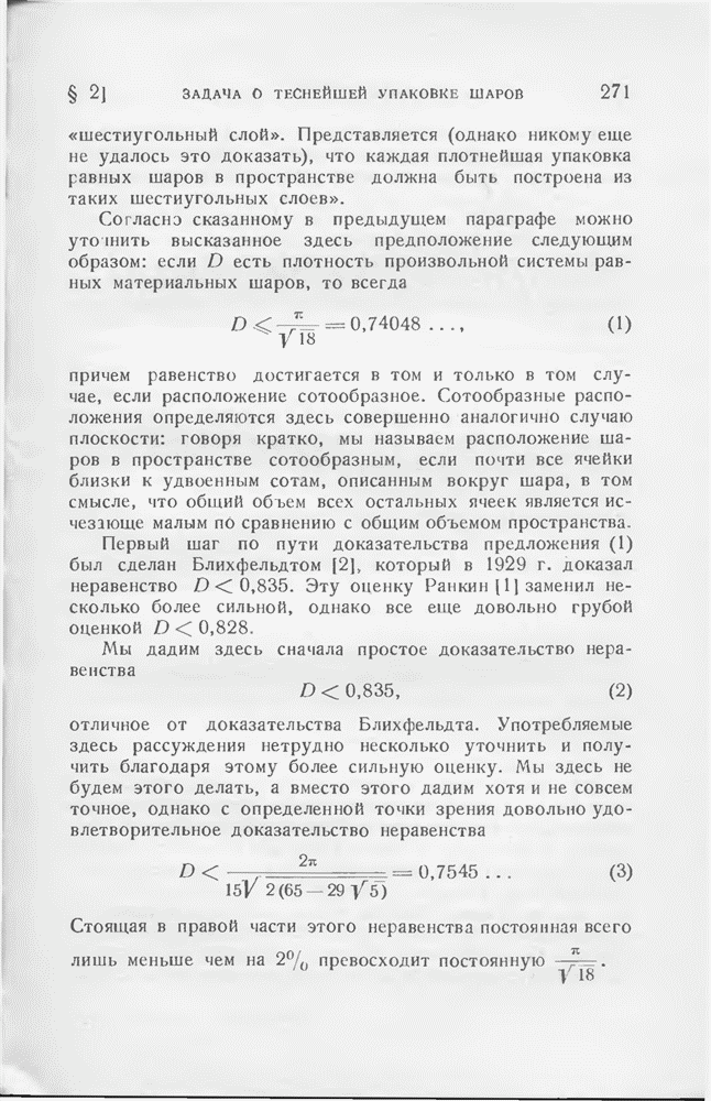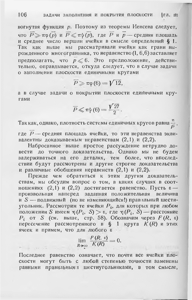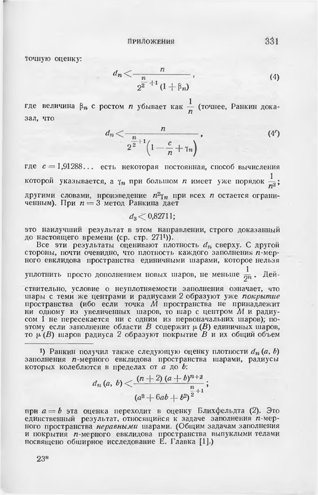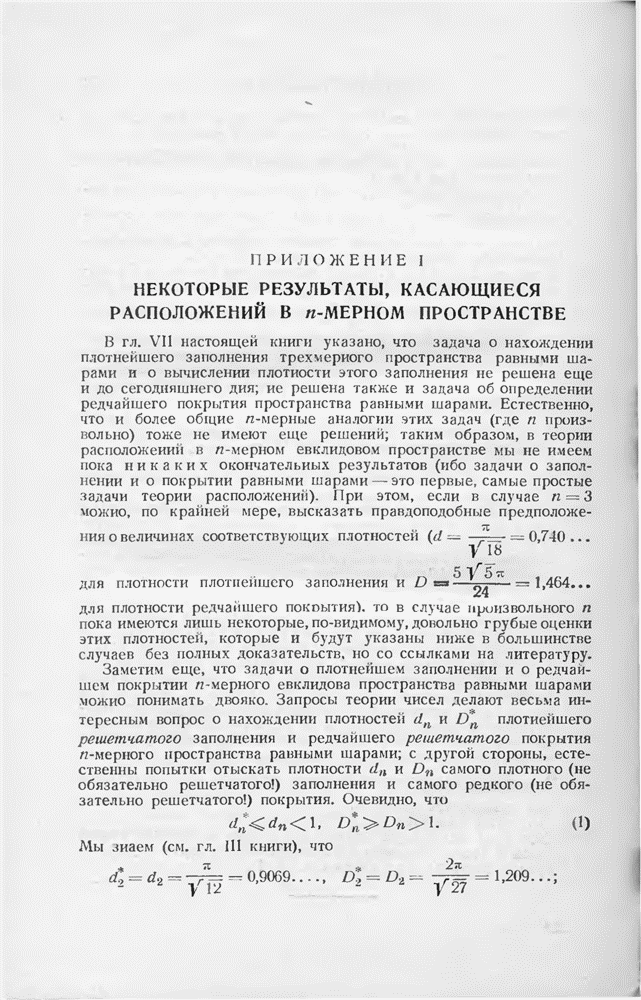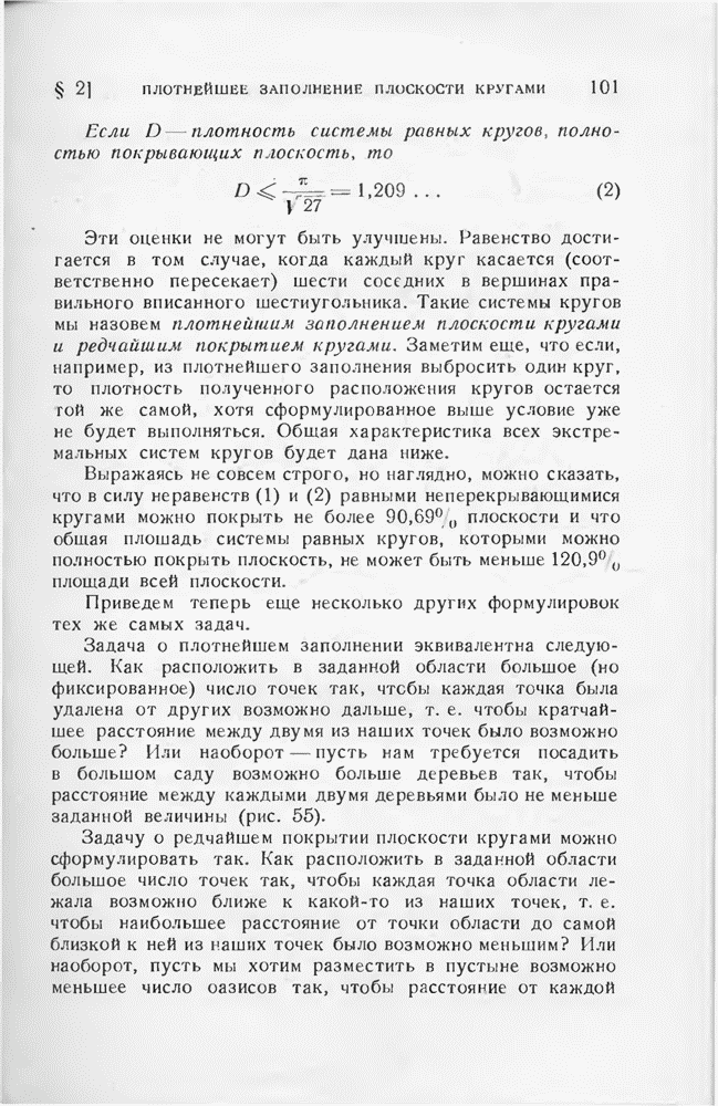 точек, наименьшее (евклидово) расстояние между которыми равно 1, а в последней — плотность