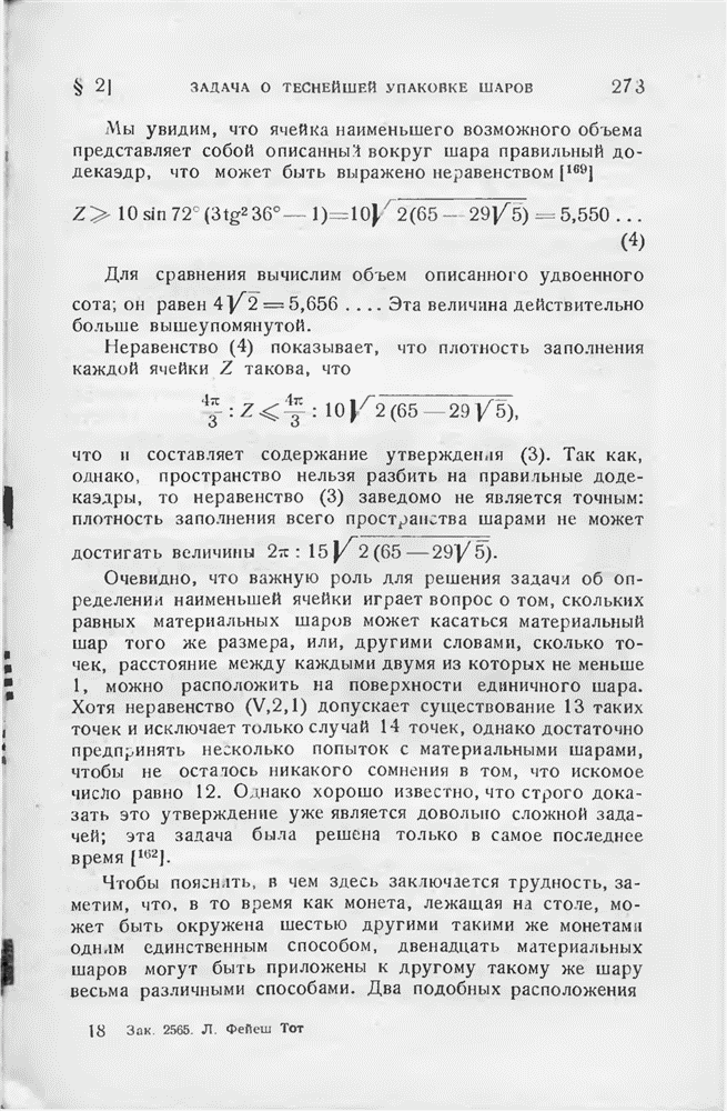 плотнейшего заполнения сферы