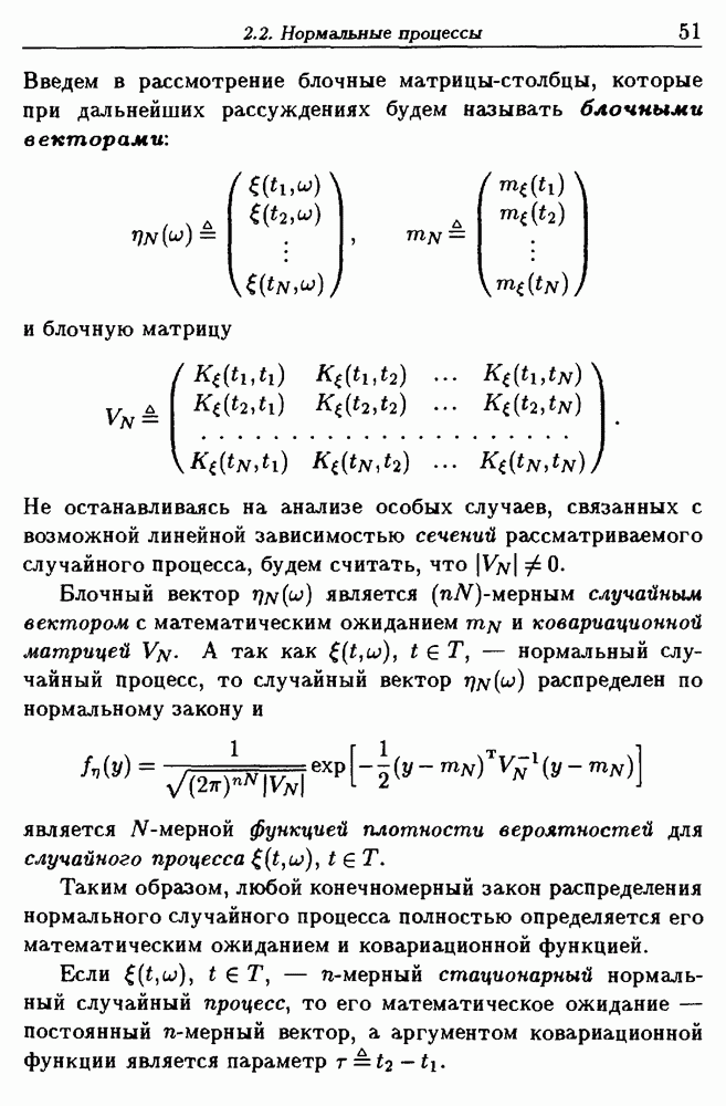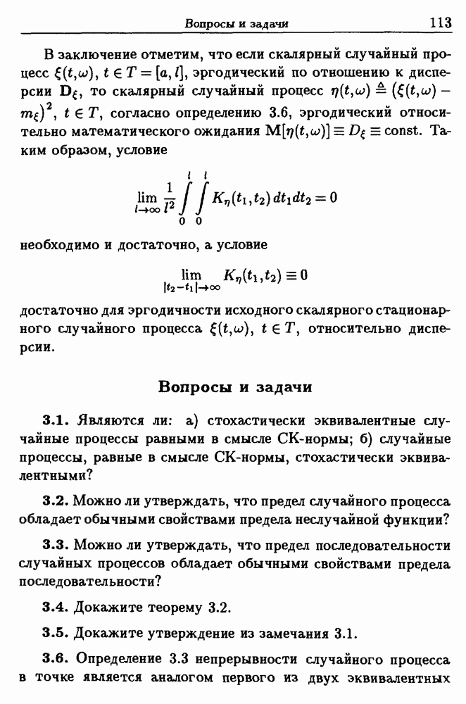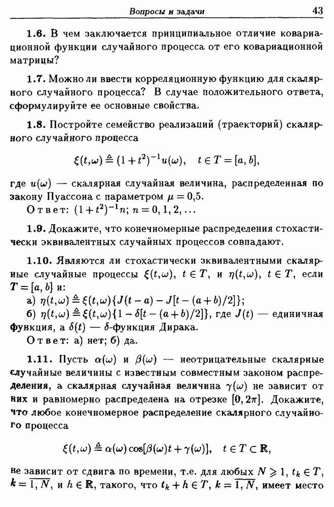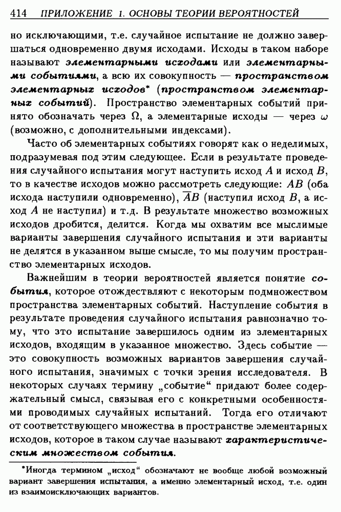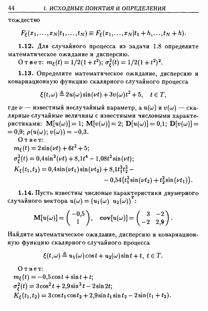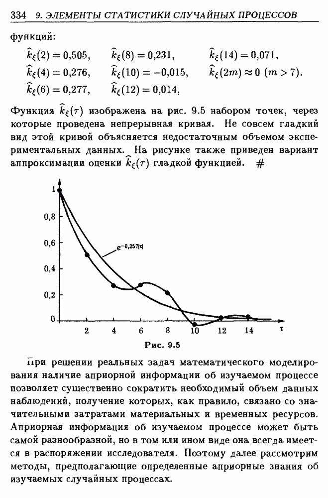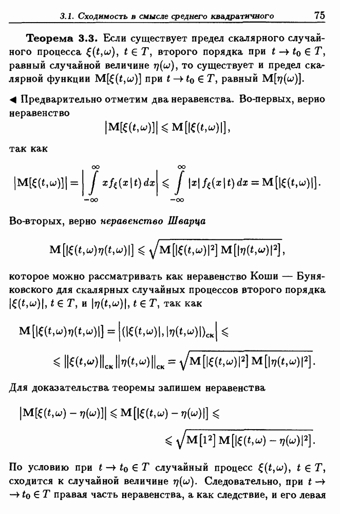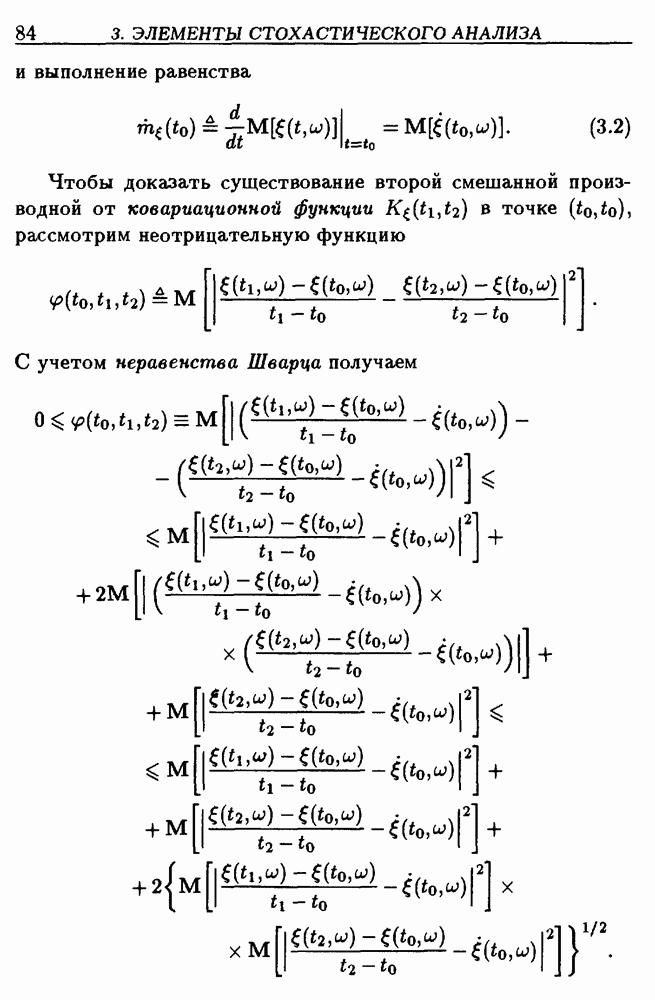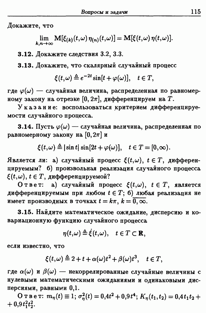 ВВЕДЕНИЕСодержание выпуска относится к одному из специальных курсов высшей математики, который является составной частью теории вероятностей. В процессе развития теории вероятностей как науки можно условно выделить три этапа, первый из которых связан с понятием случайного события, второй — с понятием случайной величины, а третий — с понятием случайной функции. При этом начало первого этапа относится к середине XVII в., второго — к середине XIX в., а третьего — к 20-30 гг. XX в., и начало каждого следующего этапа, в принципе, не связано с завершением предыдущего. Теория случайных процессов возникла вследствие практической необходимости математического моделирования реальных процессов различной природы, состояние каждого из которых в любой фиксированный момент времени представляет собой случайный вектор соответствующей размерности. Примером случайного процесса является процесс изменения во времени пространственных координат частицы, совершающей броуновское движение. Другими примерами случайных процессов являются: процесс стабилизации полета самолета в реальных условиях, когда он находится под постоянным воздействием случайных изменений вектора скорости ветра и других параметров турбулентной атмосферы; процесс развития неоднородной популяции с несколькими типами индивидуумов; процессы спроса и предложения на рынке товаров и т.д. Фактически теория случайных процессов занимается изучением различных семейств случайных величин, эволюционирующих во времени. При этом логически корректное определение основных понятий теории случайных процессов в рамках аксиоматики теории вероятностей создавало и создает много трудностей теоретико-множественного характера. Они связаны, например, с определениями непрерывности, дифференцируемости, интегрируемости и других свойств случайных процессов. Именно поэтому в монографиях по теории случайных процессов значительное место занимает анализ развития теоретикомножественных конструкций. Они написаны на высоком теоретическом уровне и, как правило, сложны для понимания специалистов, занимающихся прикладными проблемами в различных областях человеческой деятельности, решение которых предполагает широкое использование методов теории случайных процессов. А так как литература по прикладным аспектам теории случайных процессов, доступная для понимания широкому кругу студентов, аспирантов и научных работников, имеющих математическую подготовку в объеме стандартного курса высшей математики, весьма немногочисленна, то возникла необходимость в написании этой книги. Основной целью написания предлагаемого учебника явилось систематическое изложение элементов теории случайных процессов, усвоение которых должно способствовать активному овладению ее прикладными методами при решении практических задач. Различный уровень общей математической подготовки читателей и разнообразие их запросов авторы попытались учесть компоновкой материала по разделам с возрастающими уровнями сложности. Все основные понятия и методы иллюстрированы примерами, а в конце каждой главы приведены контрольные вопросы и упражнения. Отметим, что учебник не содержит библиографии по теории случайных процессов и ее приложениям. В списке рекомендуемой литературы указаны лишь те источники, обращение к ко