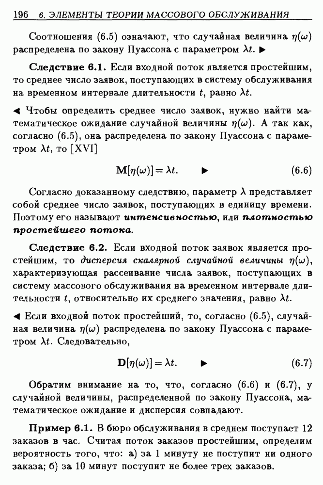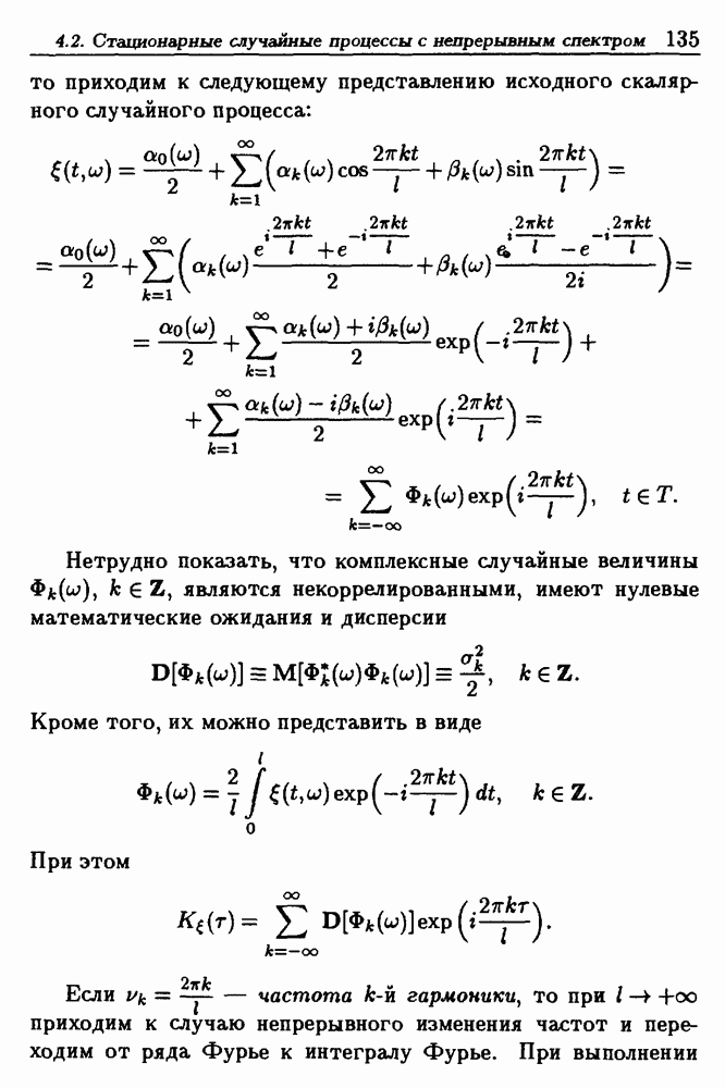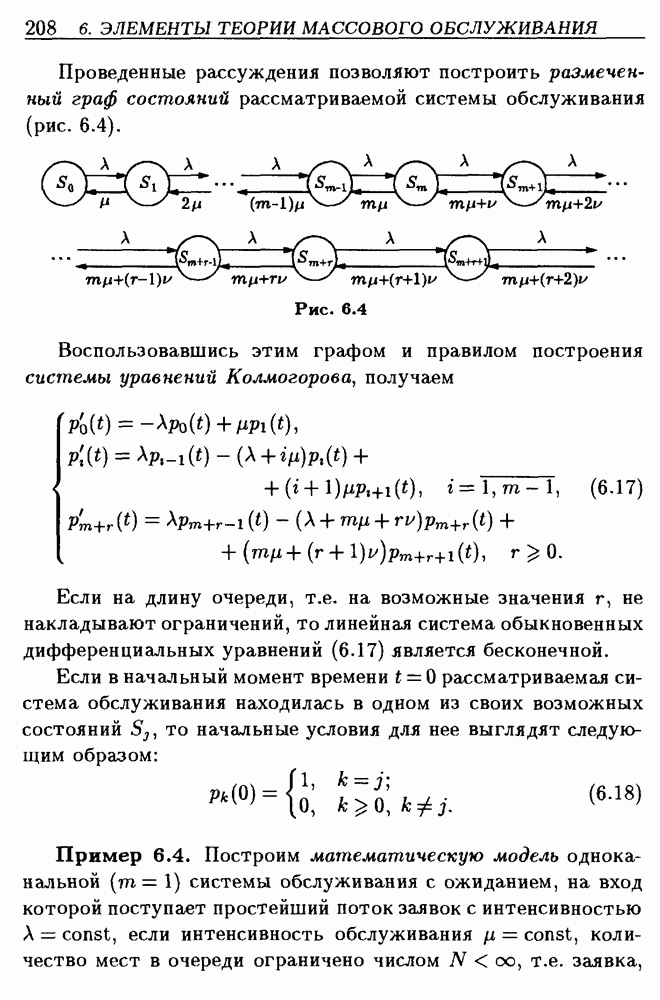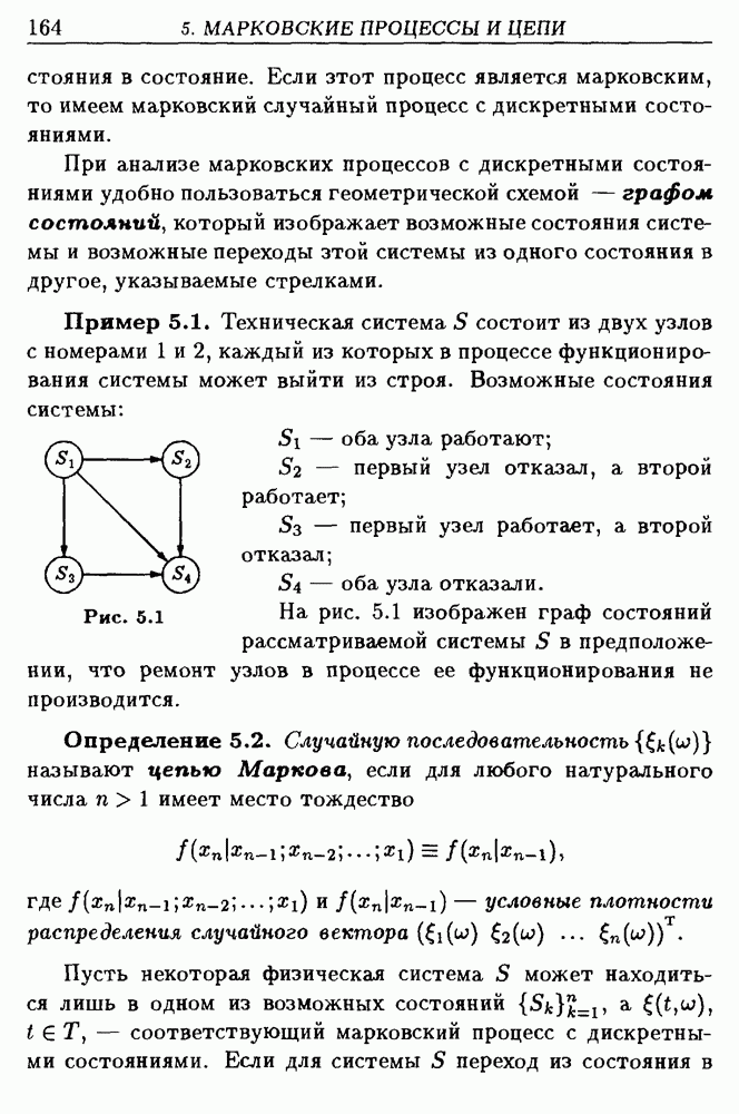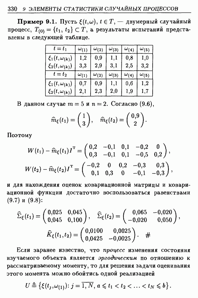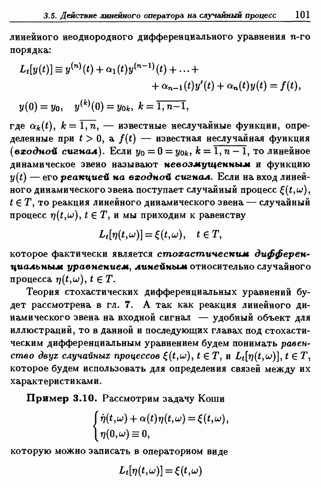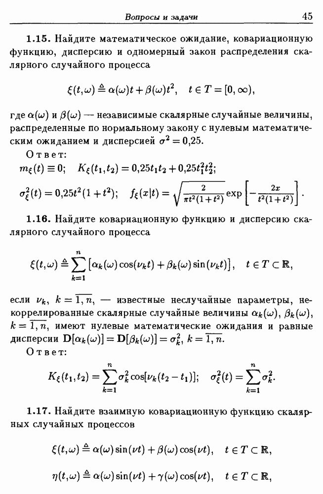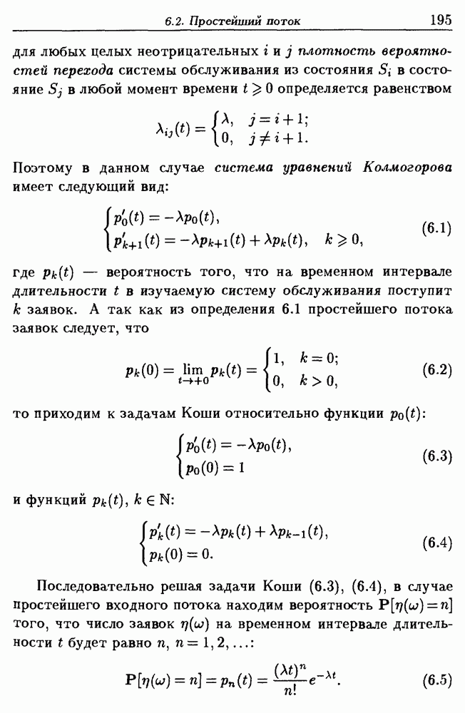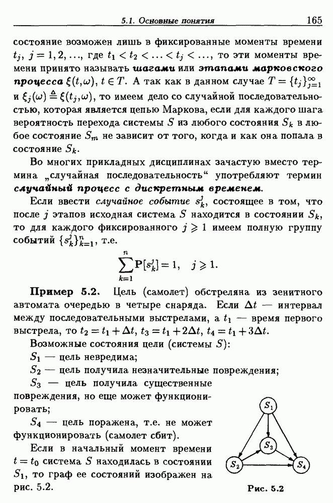 ВВЕДЕНИЕСодержание выпуска относится к одному из специальных курсов высшей математики, который является составной частью теории вероятностей. В процессе развития теории вероятностей как науки можно условно выделить три этапа, первый из которых связан с понятием случайного события, второй — с понятием случайной величины, а третий — с понятием случайной функции. При этом начало первого этапа относится к середине XVII в., второго — к середине XIX в., а третьего — к 20-30 гг. XX в., и начало каждого следующего этапа, в принципе, не связано с завершением предыдущего. Теория случайных процессов возникла вследствие практической необходимости математического моделирования реальных процессов различной природы, состояние каждого из которых в любой фиксированный момент времени представляет собой случайный вектор соответствующей размерности. Примером случайного процесса является процесс изменения во времени пространственных координат частицы, совершающей броуновское движение. Другими примерами случайных процессов являются: процесс стабилизации полета самолета в реальных условиях, когда он находится под постоянным воздействием случайных изменений вектора скорости ветра и других параметров турбулентной атмосферы; процесс развития неоднородной популяции с несколькими типами индивидуумов; процессы спроса и предложения на рынке товаров и т.д. Фактически теория случайных процессов занимается изучением различных семейств случайных величин, эволюционирующих во времени. При этом логически корректное определение основных понятий теории случайных процессов в рамках аксиоматики теории вероятностей создавало и создает много трудностей теоретико-множественного характера. Они связаны, например, с определениями непрерывности, дифференцируемости, интегрируемости и других свойств случайных процессов. Именно поэтому в монографиях по теории случайных процессов значительное место занимает анализ развития теоретикомножественных конструкций. Они написаны на высоком теоретическом уровне и, как правило, сложны для понимания специалистов, занимающихся прикладными проблемами в различных областях человеческой деятельности, решение которых предполагает широкое использование методов теории случайных процессов. А так как литература по прикладным аспектам теории случайных процессов, доступная для понимания широкому кругу студентов, аспирантов и научных работников, имеющих математическую подготовку в объеме стандартного курса высшей математики, весьма немногочисленна, то возникла необходимость в написании этой книги. Основной целью написания предлагаемого учебника явилось систематическое изложение элементов теории случайных процессов, усвоение которых должно способствовать активному овладению ее прикладными методами при решении практических задач. Различный уровень общей математической подготовки читателей и разнообразие их запросов авторы попытались учесть компоновкой материала по разделам с возрастающими уровнями сложности. Все основные понятия и методы иллюстрированы примерами, а в конце каждой главы приведены контрольные вопросы и упражнения. Отметим, что учебник не содержит библиографии по теории случайных процессов и ее приложениям. В списке рекомендуемой литературы указаны лишь те источники, обращение к ко
