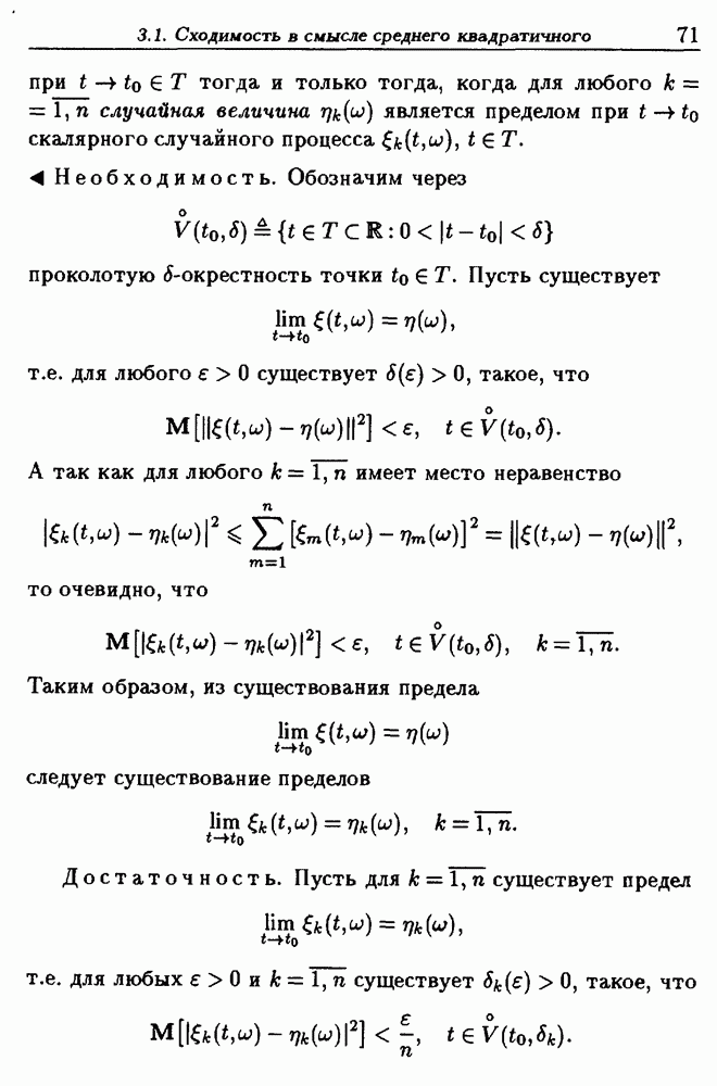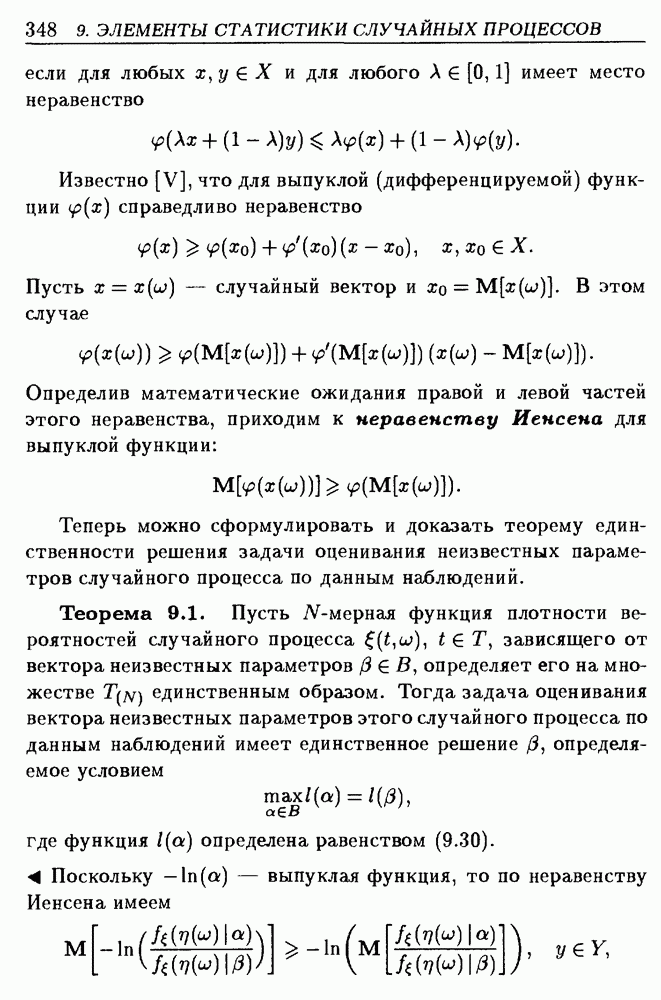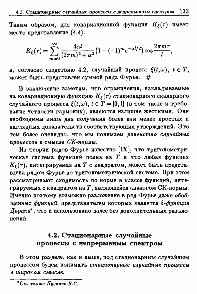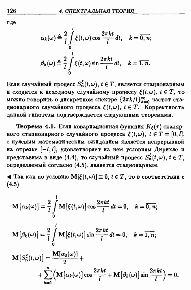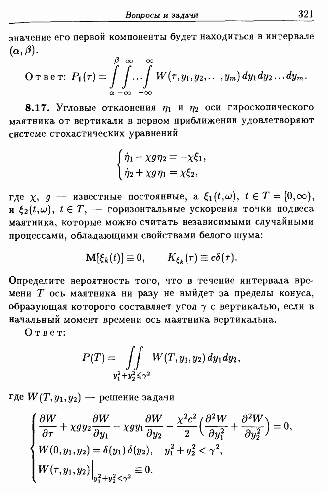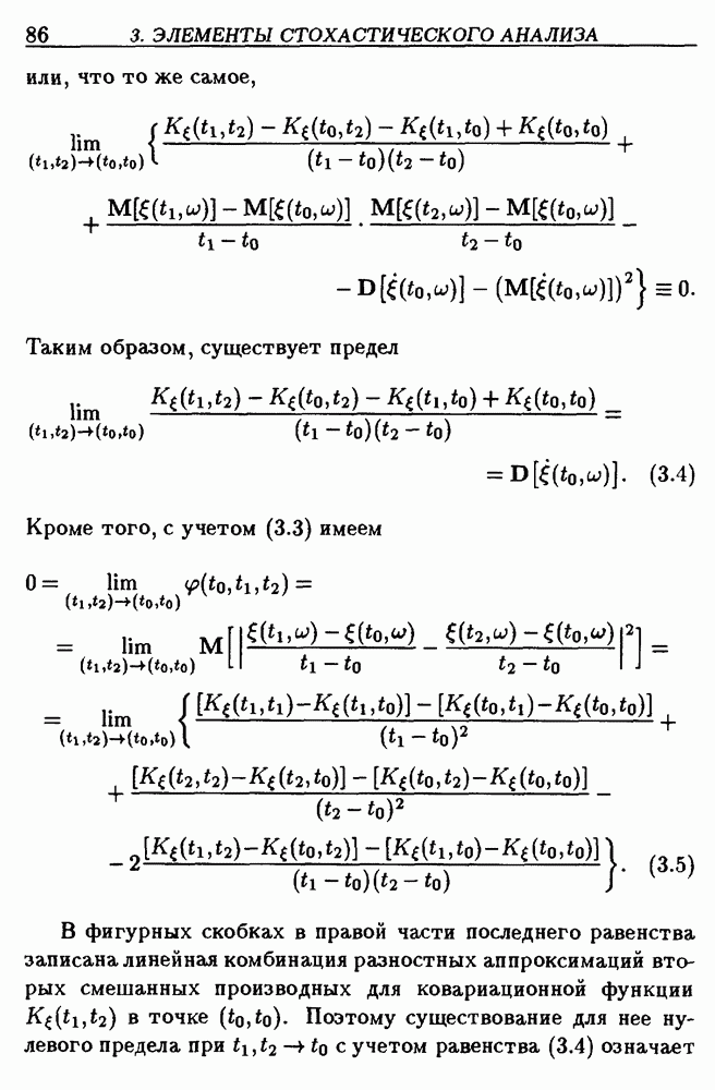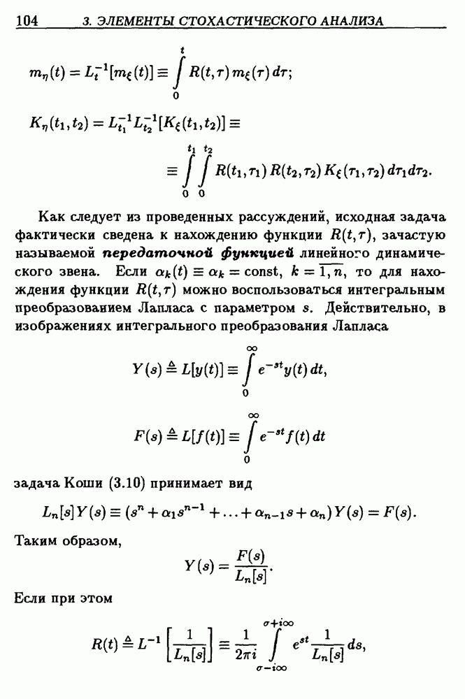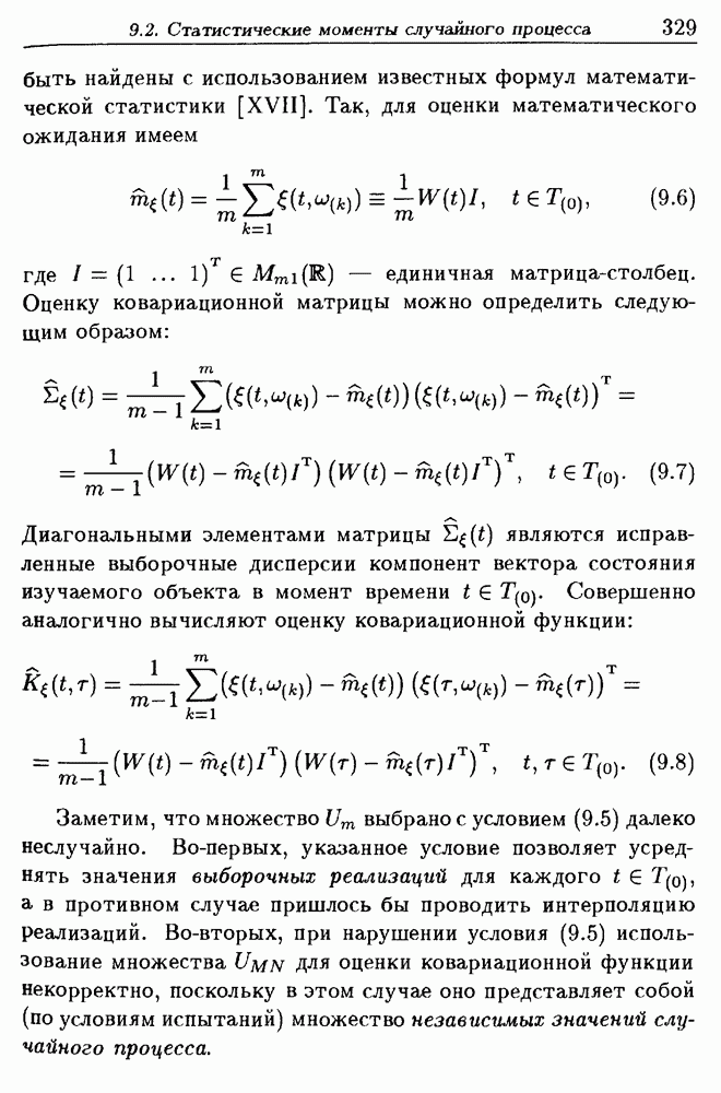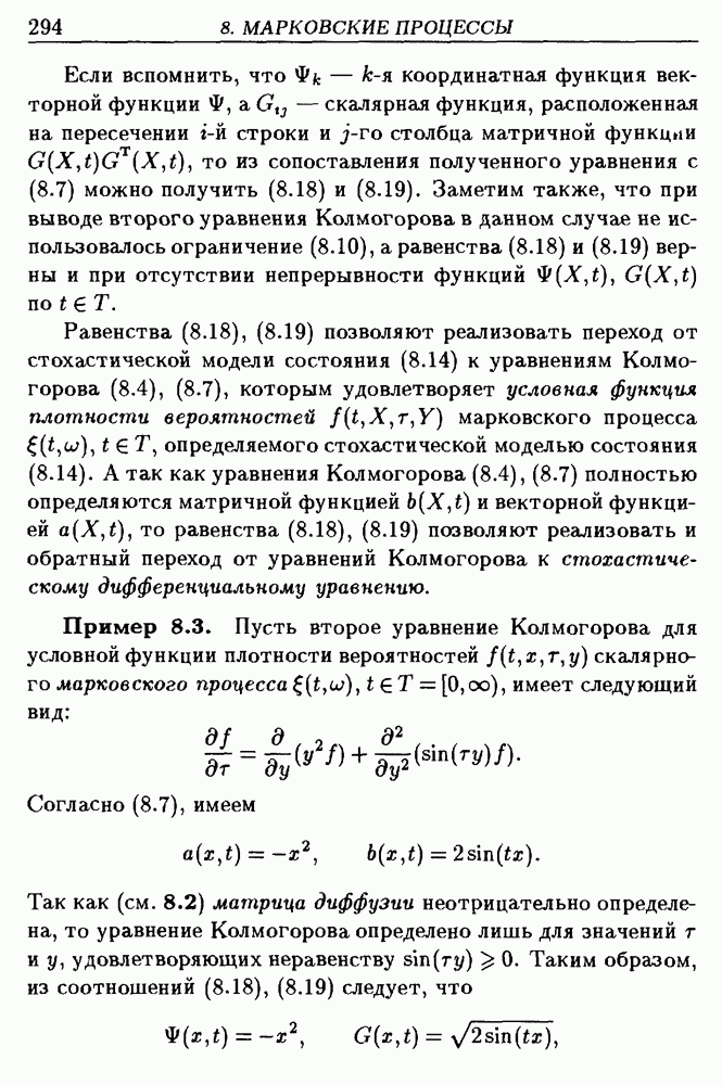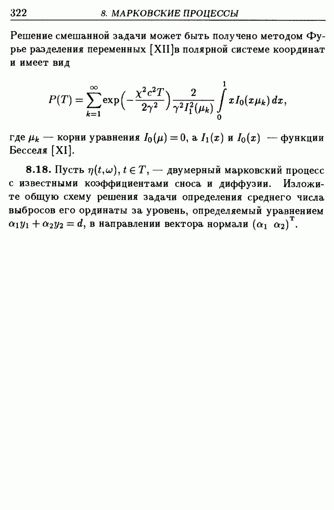 ВВЕДЕНИЕСодержание выпуска относится к одному из специальных курсов высшей математики, который является составной частью теории вероятностей. В процессе развития теории вероятностей как науки можно условно выделить три этапа, первый из которых связан с понятием случайного события, второй — с понятием случайной величины, а третий — с понятием случайной функции. При этом начало первого этапа относится к середине XVII в., второго — к середине XIX в., а третьего — к 20-30 гг. XX в., и начало каждого следующего этапа, в принципе, не связано с завершением предыдущего. Теория случайных процессов возникла вследствие практической необходимости математического моделирования реальных процессов различной природы, состояние каждого из которых в любой фиксированный момент времени представляет собой случайный вектор соответствующей размерности. Примером случайного процесса является процесс изменения во времени пространственных координат частицы, совершающей броуновское движение. Другими примерами случайных процессов являются: процесс стабилизации полета самолета в реальных условиях, когда он находится под постоянным воздействием случайных изменений вектора скорости ветра и других параметров турбулентной атмосферы; процесс развития неоднородной популяции с несколькими типами индивидуумов; процессы спроса и предложения на рынке товаров и т.д. Фактически теория случайных процессов занимается изучением различных семейств случайных величин, эволюционирующих во времени. При этом логически корректное определение основных понятий теории случайных процессов в рамках аксиоматики теории вероятностей создавало и создает много трудностей теоретико-множественного характера. Они связаны, например, с определениями непрерывности, дифференцируемости, интегрируемости и других свойств случайных процессов. Именно поэтому в монографиях по теории случайных процессов значительное место занимает анализ развития теоретикомножественных конструкций. Они написаны на высоком теоретическом уровне и, как правило, сложны для понимания специалистов, занимающихся прикладными проблемами в различных областях человеческой деятельности, решение которых предполагает широкое использование методов теории случайных процессов. А так как литература по прикладным аспектам теории случайных процессов, доступная для понимания широкому кругу студентов, аспирантов и научных работников, имеющих математическую подготовку в объеме стандартного курса высшей математики, весьма немногочисленна, то возникла необходимость в написании этой книги. Основной целью написания предлагаемого учебника явилось систематическое изложение элементов теории случайных процессов, усвоение которых должно способствовать активному овладению ее прикладными методами при решении практических задач. Различный уровень общей математической подготовки читателей и разнообразие их запросов авторы попытались учесть компоновкой материала по разделам с возрастающими уровнями сложности. Все основные понятия и методы иллюстрированы примерами, а в конце каждой главы приведены контрольные вопросы и упражнения. Отметим, что учебник не содержит библиографии по теории случайных процессов и ее приложениям. В списке рекомендуемой литературы указаны лишь те источники, обращение к ко