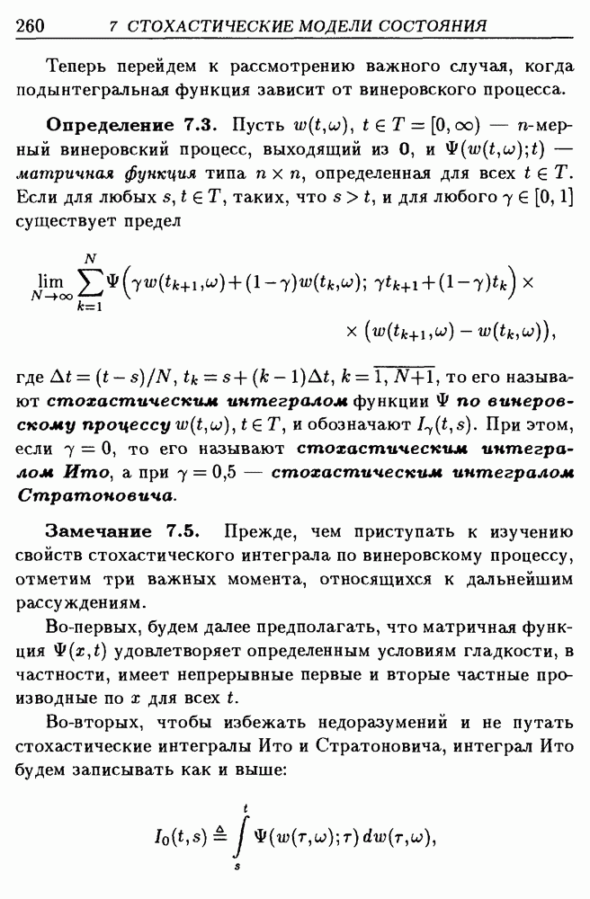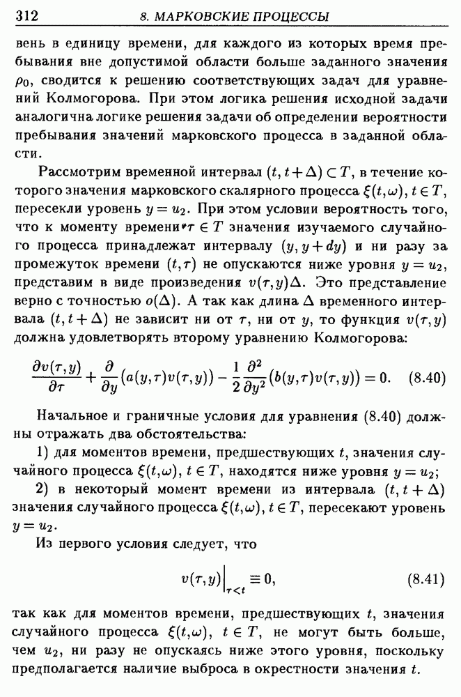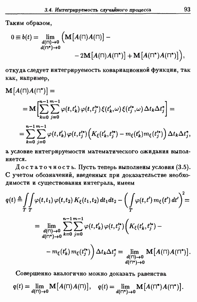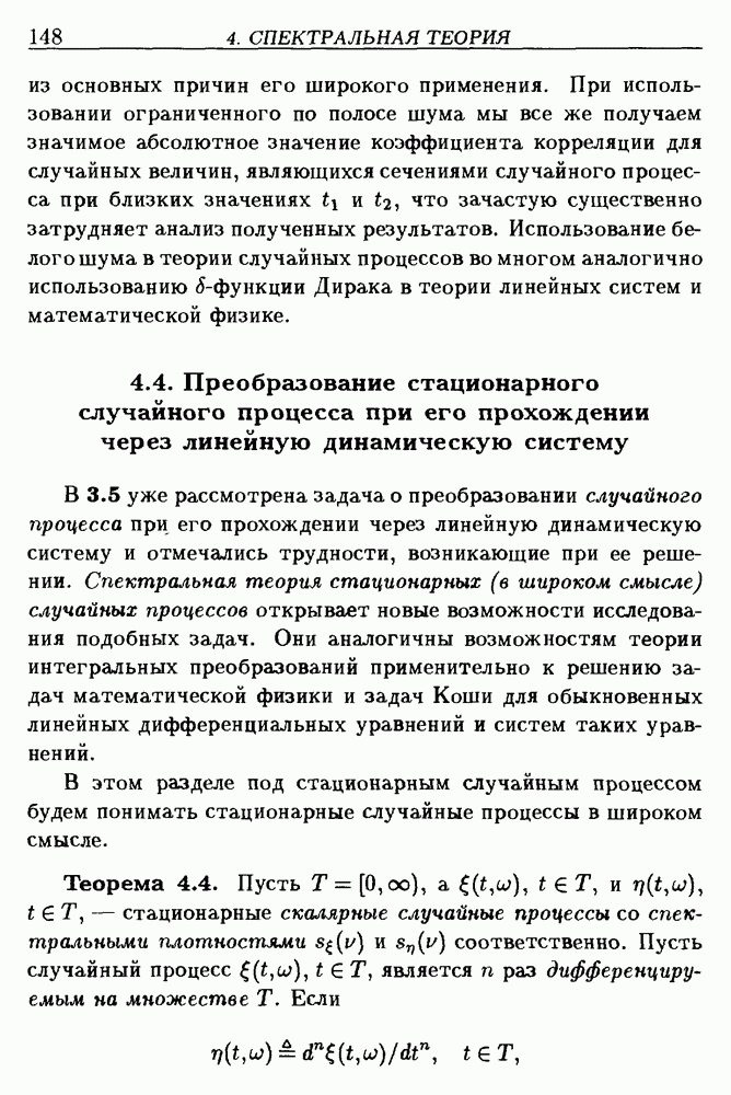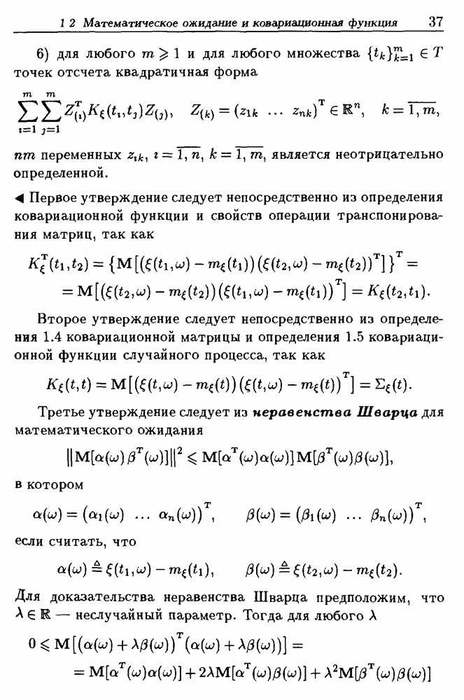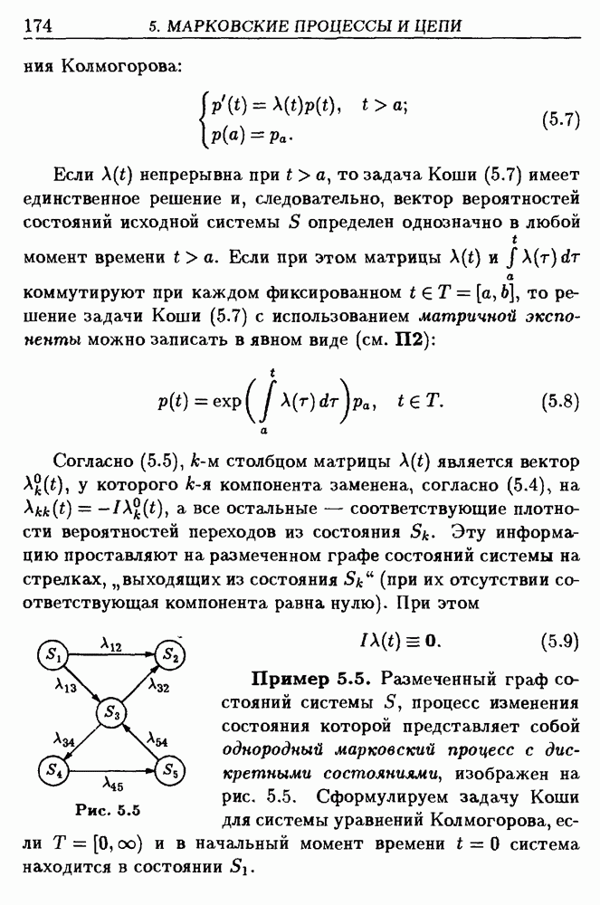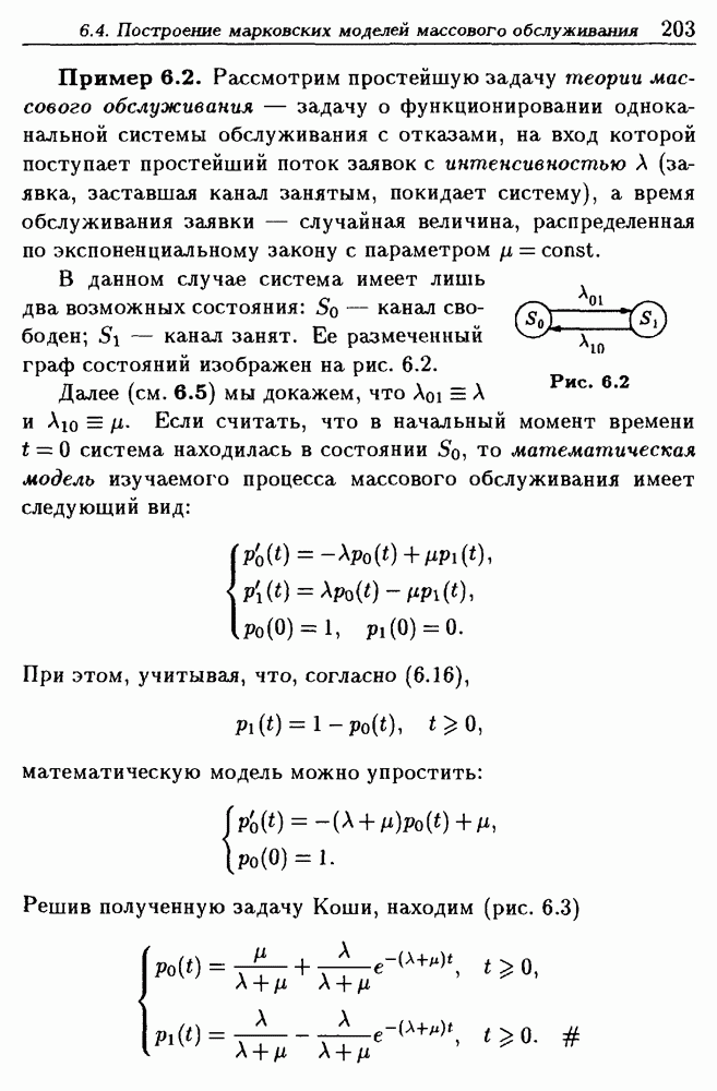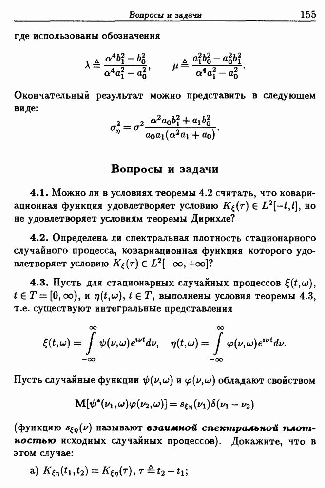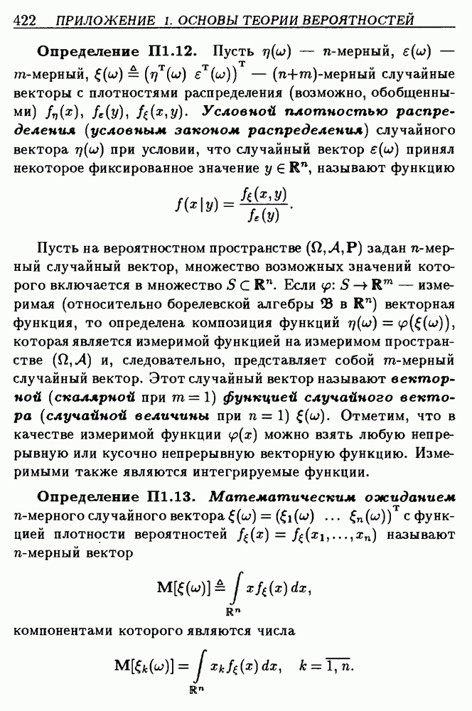 ВВЕДЕНИЕСодержание выпуска относится к одному из специальных курсов высшей математики, который является составной частью теории вероятностей. В процессе развития теории вероятностей как науки можно условно выделить три этапа, первый из которых связан с понятием случайного события, второй — с понятием случайной величины, а третий — с понятием случайной функции. При этом начало первого этапа относится к середине XVII в., второго — к середине XIX в., а третьего — к 20-30 гг. XX в., и начало каждого следующего этапа, в принципе, не связано с завершением предыдущего. Теория случайных процессов возникла вследствие практической необходимости математического моделирования реальных процессов различной природы, состояние каждого из которых в любой фиксированный момент времени представляет собой случайный вектор соответствующей размерности. Примером случайного процесса является процесс изменения во времени пространственных координат частицы, совершающей броуновское движение. Другими примерами случайных процессов являются: процесс стабилизации полета самолета в реальных условиях, когда он находится под постоянным воздействием случайных изменений вектора скорости ветра и других параметров турбулентной атмосферы; процесс развития неоднородной популяции с несколькими типами индивидуумов; процессы спроса и предложения на рынке товаров и т.д. Фактически теория случайных процессов занимается изучением различных семейств случайных величин, эволюционирующих во времени. При этом логически корректное определение основных понятий теории случайных процессов в рамках аксиоматики теории вероятностей создавало и создает много трудностей теоретико-множественного характера. Они связаны, например, с определениями непрерывности, дифференцируемости, интегрируемости и других свойств случайных процессов. Именно поэтому в монографиях по теории случайных процессов значительное место занимает анализ развития теоретикомножественных конструкций. Они написаны на высоком теоретическом уровне и, как правило, сложны для понимания специалистов, занимающихся прикладными проблемами в различных областях человеческой деятельности, решение которых предполагает широкое использование методов теории случайных процессов. А так как литература по прикладным аспектам теории случайных процессов, доступная для понимания широкому кругу студентов, аспирантов и научных работников, имеющих математическую подготовку в объеме стандартного курса высшей математики, весьма немногочисленна, то возникла необходимость в написании этой книги. Основной целью написания предлагаемого учебника явилось систематическое изложение элементов теории случайных процессов, усвоение которых должно способствовать активному овладению ее прикладными методами при решении практических задач. Различный уровень общей математической подготовки читателей и разнообразие их запросов авторы попытались учесть компоновкой материала по разделам с возрастающими уровнями сложности. Все основные понятия и методы иллюстрированы примерами, а в конце каждой главы приведены контрольные вопросы и упражнения. Отметим, что учебник не содержит библиографии по теории случайных процессов и ее приложениям. В списке рекомендуемой литературы указаны лишь те источники, обращение к ко
