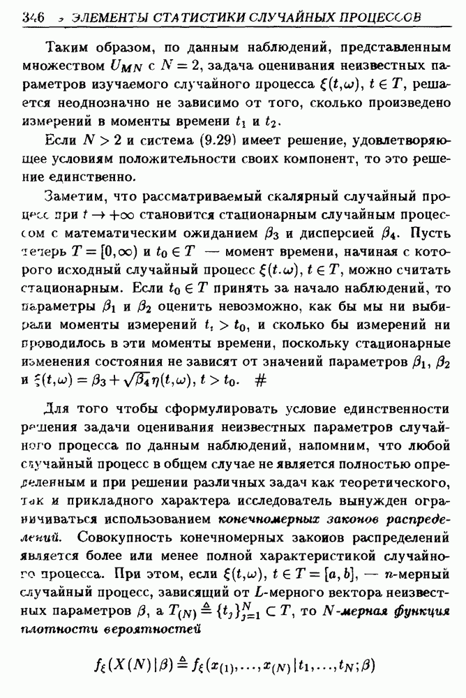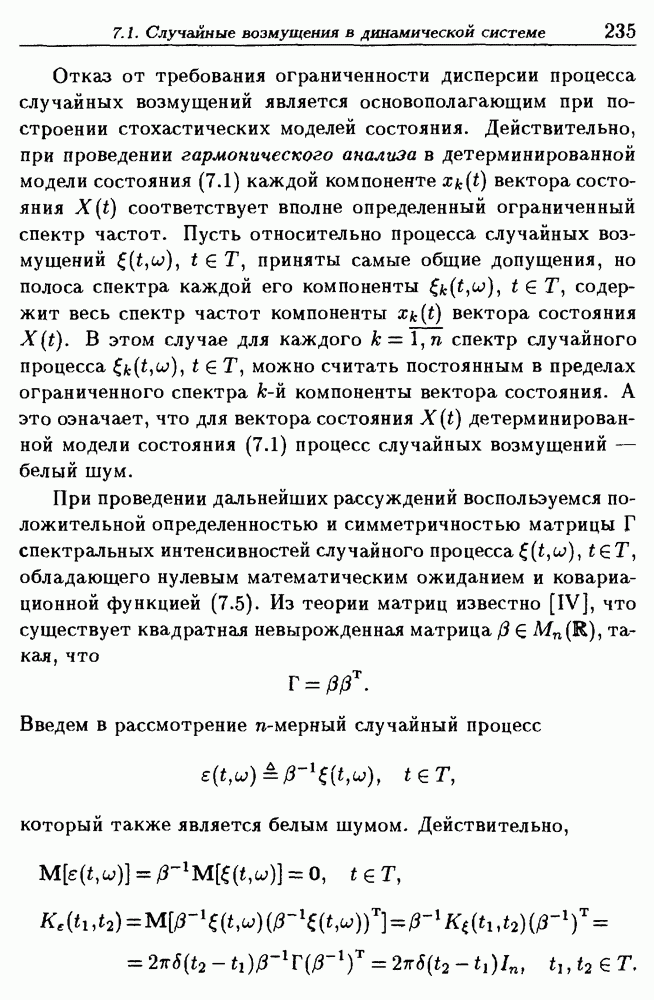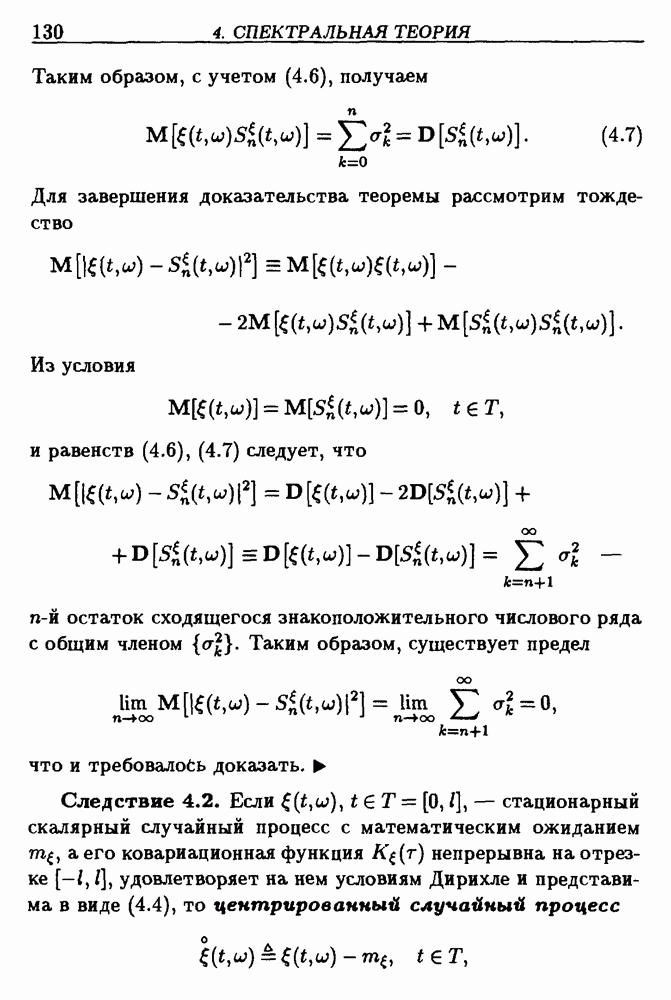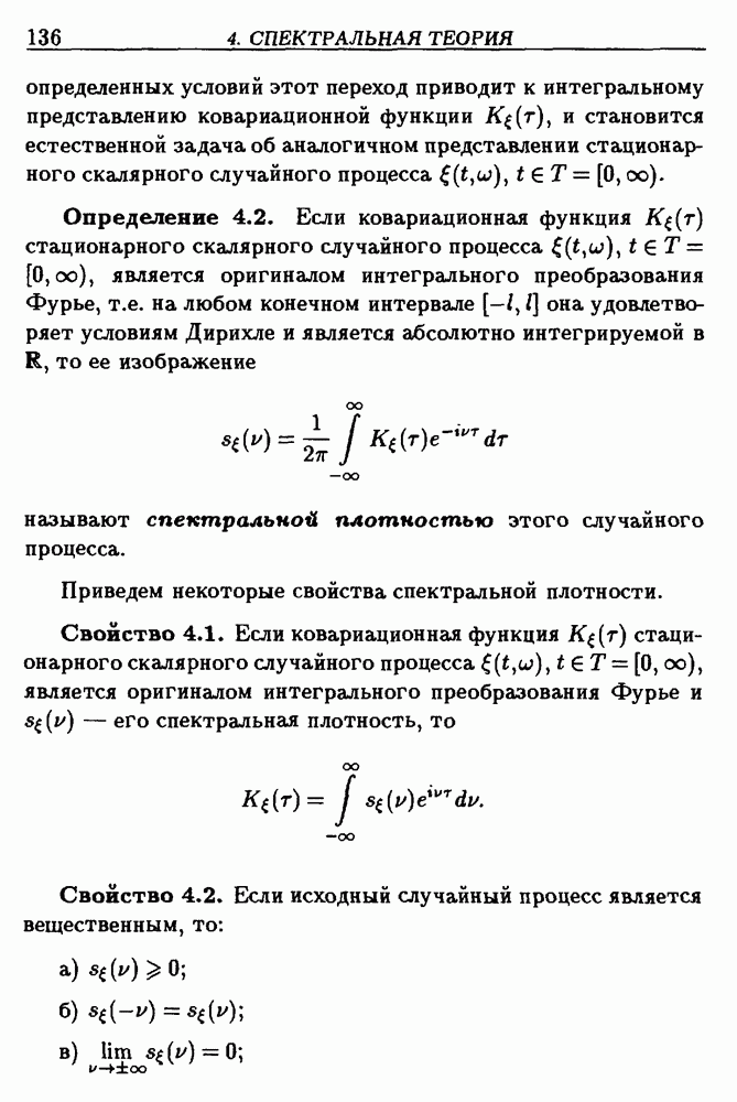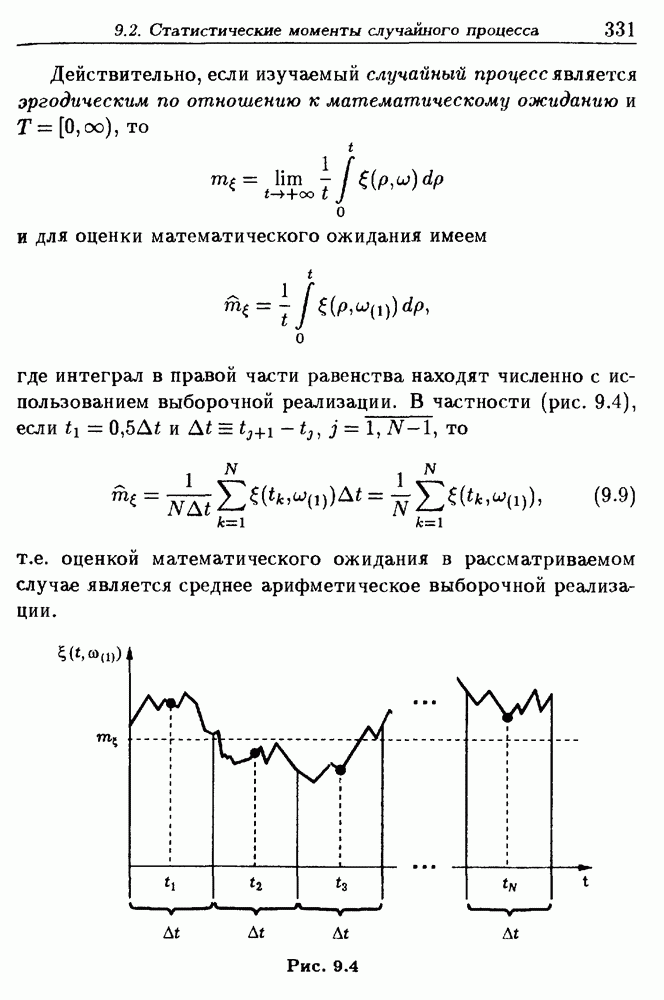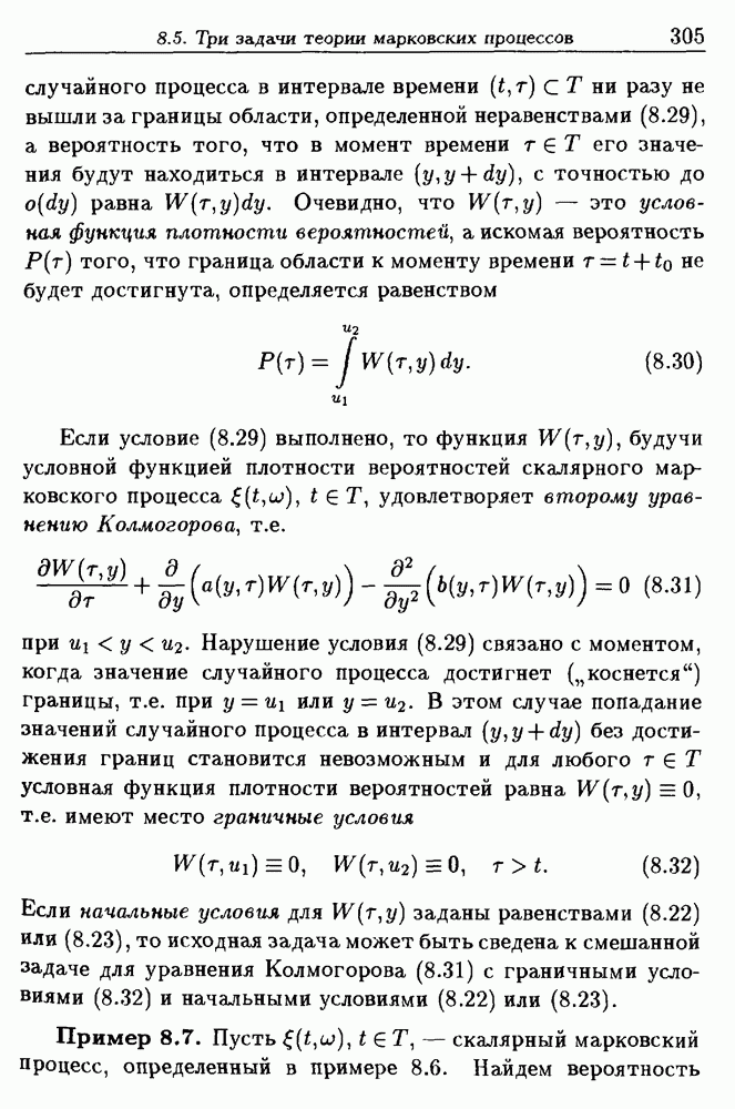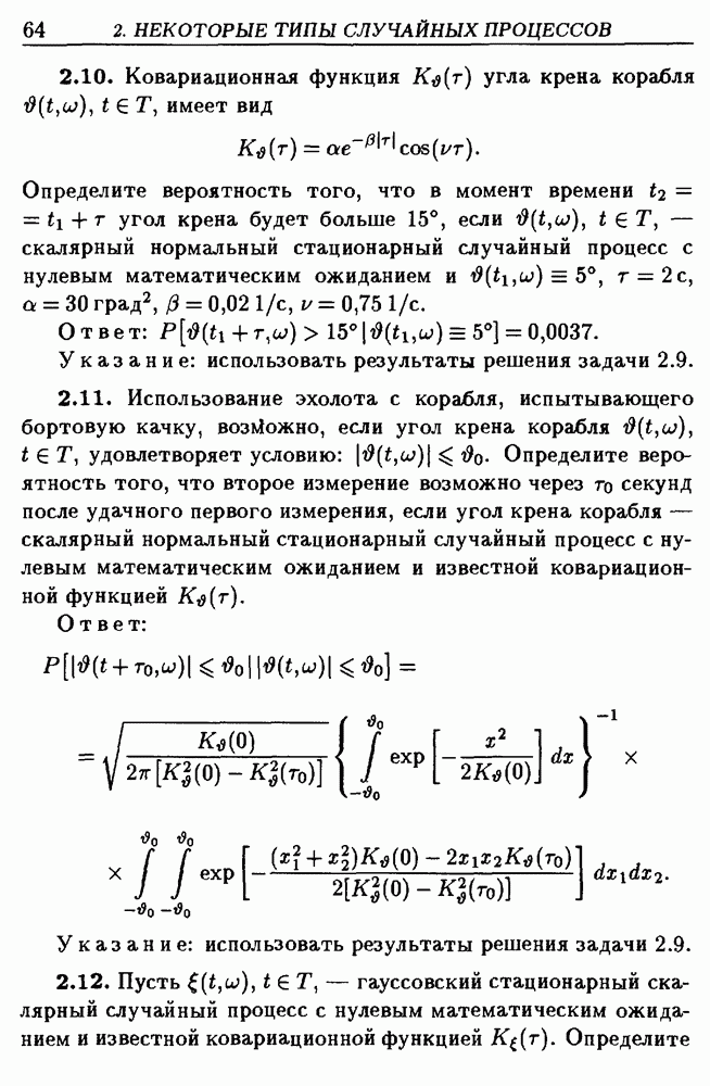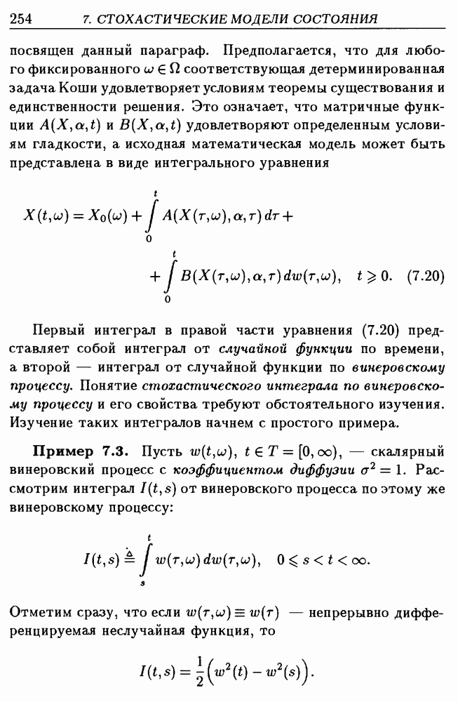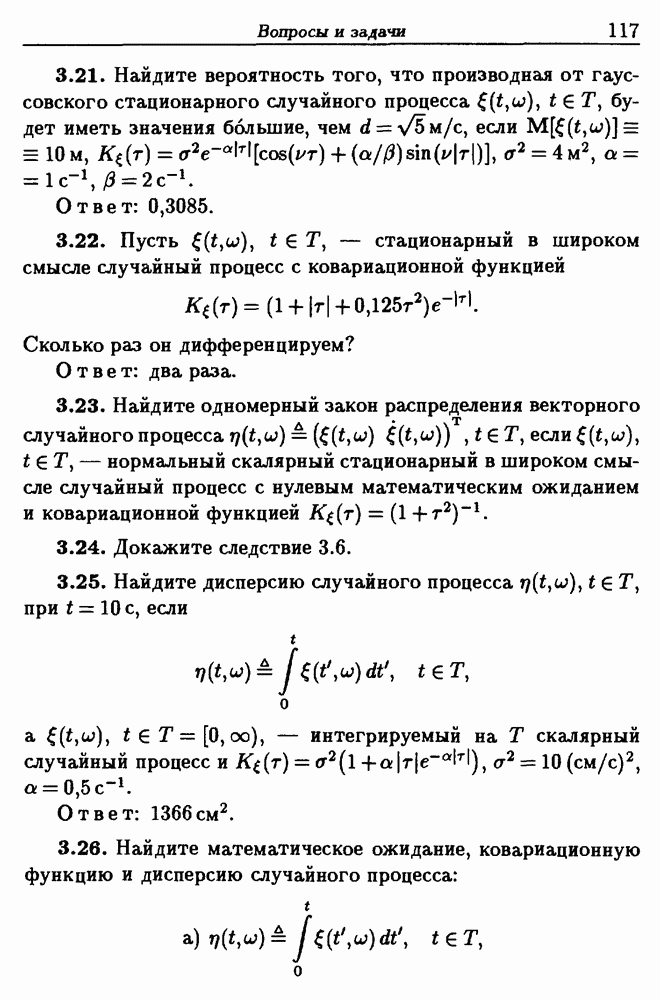 ВВЕДЕНИЕСодержание выпуска относится к одному из специальных курсов высшей математики, который является составной частью теории вероятностей. В процессе развития теории вероятностей как науки можно условно выделить три этапа, первый из которых связан с понятием случайного события, второй — с понятием случайной величины, а третий — с понятием случайной функции. При этом начало первого этапа относится к середине XVII в., второго — к середине XIX в., а третьего — к 20-30 гг. XX в., и начало каждого следующего этапа, в принципе, не связано с завершением предыдущего. Теория случайных процессов возникла вследствие практической необходимости математического моделирования реальных процессов различной природы, состояние каждого из которых в любой фиксированный момент времени представляет собой случайный вектор соответствующей размерности. Примером случайного процесса является процесс изменения во времени пространственных координат частицы, совершающей броуновское движение. Другими примерами случайных процессов являются: процесс стабилизации полета самолета в реальных условиях, когда он находится под постоянным воздействием случайных изменений вектора скорости ветра и других параметров турбулентной атмосферы; процесс развития неоднородной популяции с несколькими типами индивидуумов; процессы спроса и предложения на рынке товаров и т.д. Фактически теория случайных процессов занимается изучением различных семейств случайных величин, эволюционирующих во времени. При этом логически корректное определение основных понятий теории случайных процессов в рамках аксиоматики теории вероятностей создавало и создает много трудностей теоретико-множественного характера. Они связаны, например, с определениями непрерывности, дифференцируемости, интегрируемости и других свойств случайных процессов. Именно поэтому в монографиях по теории случайных процессов значительное место занимает анализ развития теоретикомножественных конструкций. Они написаны на высоком теоретическом уровне и, как правило, сложны для понимания специалистов, занимающихся прикладными проблемами в различных областях человеческой деятельности, решение которых предполагает широкое использование методов теории случайных процессов. А так как литература по прикладным аспектам теории случайных процессов, доступная для понимания широкому кругу студентов, аспирантов и научных работников, имеющих математическую подготовку в объеме стандартного курса высшей математики, весьма немногочисленна, то возникла необходимость в написании этой книги. Основной целью написания предлагаемого учебника явилось систематическое изложение элементов теории случайных процессов, усвоение которых должно способствовать активному овладению ее прикладными методами при решении практических задач. Различный уровень общей математической подготовки читателей и разнообразие их запросов авторы попытались учесть компоновкой материала по разделам с возрастающими уровнями сложности. Все основные понятия и методы иллюстрированы примерами, а в конце каждой главы приведены контрольные вопросы и упражнения. Отметим, что учебник не содержит библиографии по теории случайных процессов и ее приложениям. В списке рекомендуемой литературы указаны лишь те источники, обращение к ко
