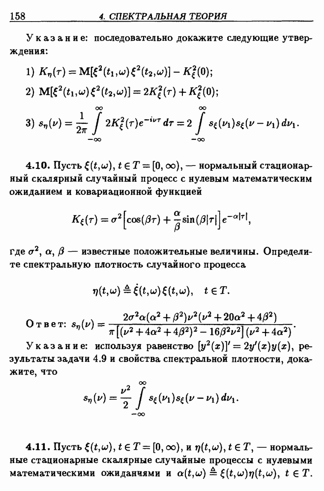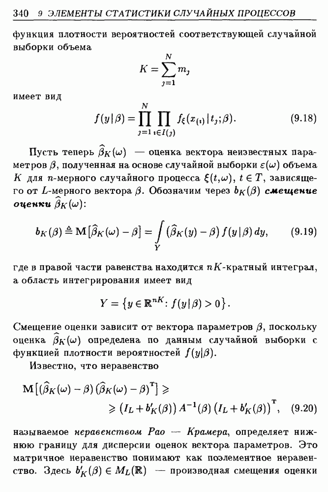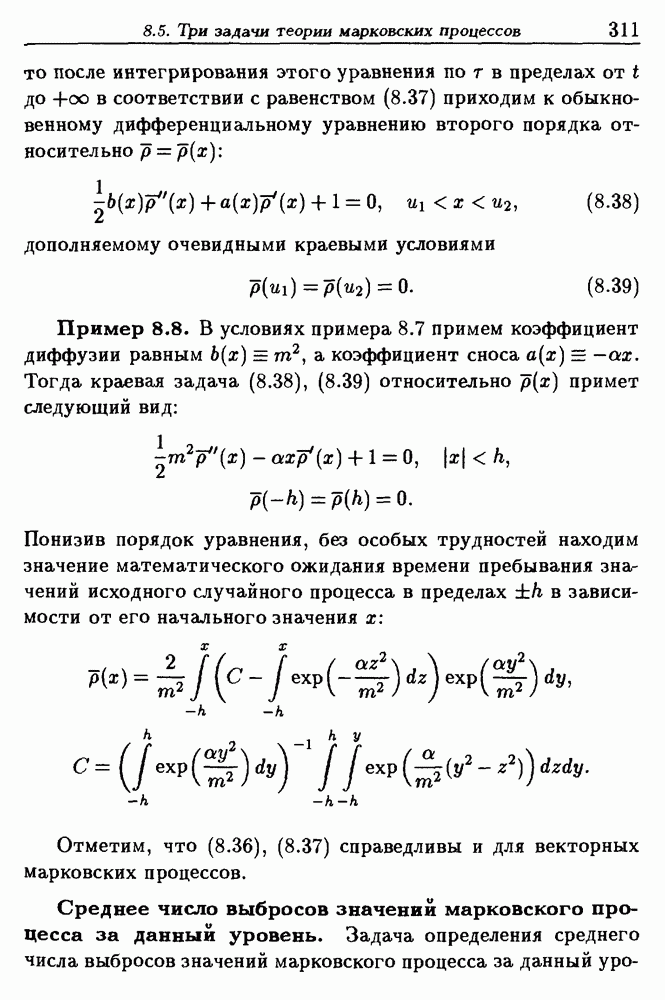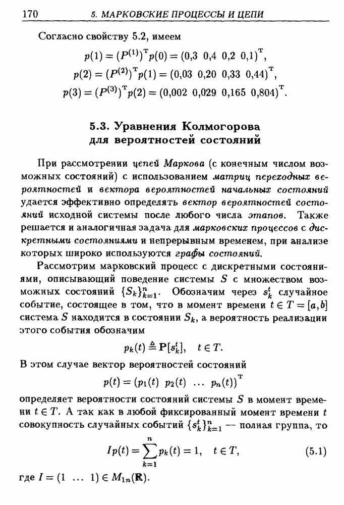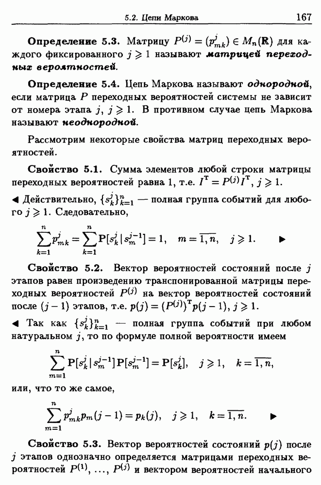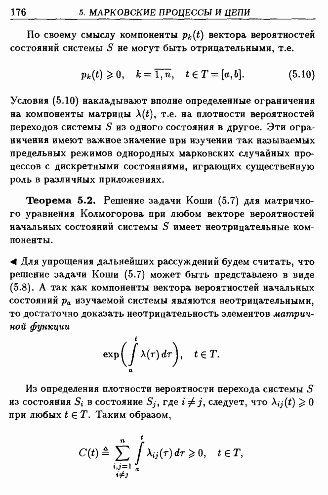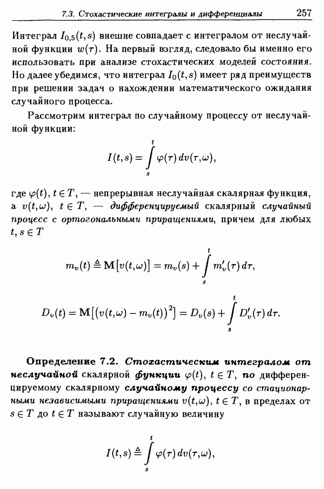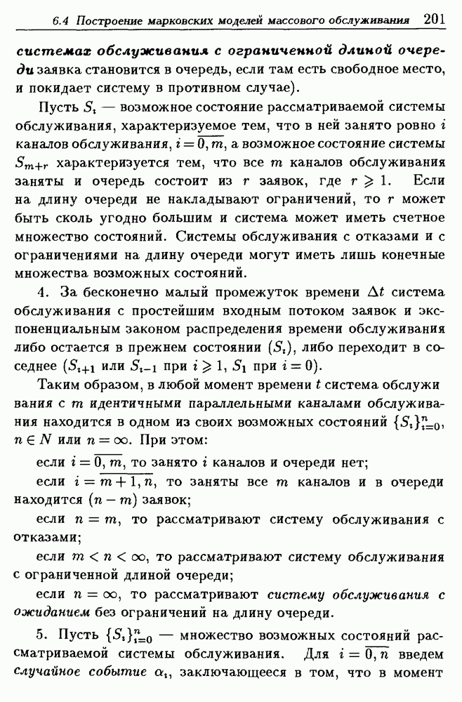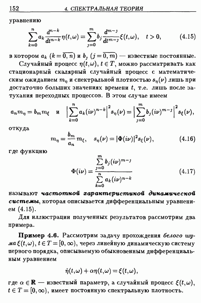 ВВЕДЕНИЕСодержание выпуска относится к одному из специальных курсов высшей математики, который является составной частью теории вероятностей. В процессе развития теории вероятностей как науки можно условно выделить три этапа, первый из которых связан с понятием случайного события, второй — с понятием случайной величины, а третий — с понятием случайной функции. При этом начало первого этапа относится к середине XVII в., второго — к середине XIX в., а третьего — к 20-30 гг. XX в., и начало каждого следующего этапа, в принципе, не связано с завершением предыдущего. Теория случайных процессов возникла вследствие практической необходимости математического моделирования реальных процессов различной природы, состояние каждого из которых в любой фиксированный момент времени представляет собой случайный вектор соответствующей размерности. Примером случайного процесса является процесс изменения во времени пространственных координат частицы, совершающей броуновское движение. Другими примерами случайных процессов являются: процесс стабилизации полета самолета в реальных условиях, когда он находится под постоянным воздействием случайных изменений вектора скорости ветра и других параметров турбулентной атмосферы; процесс развития неоднородной популяции с несколькими типами индивидуумов; процессы спроса и предложения на рынке товаров и т.д. Фактически теория случайных процессов занимается изучением различных семейств случайных величин, эволюционирующих во времени. При этом логически корректное определение основных понятий теории случайных процессов в рамках аксиоматики теории вероятностей создавало и создает много трудностей теоретико-множественного характера. Они связаны, например, с определениями непрерывности, дифференцируемости, интегрируемости и других свойств случайных процессов. Именно поэтому в монографиях по теории случайных процессов значительное место занимает анализ развития теоретикомножественных конструкций. Они написаны на высоком теоретическом уровне и, как правило, сложны для понимания специалистов, занимающихся прикладными проблемами в различных областях человеческой деятельности, решение которых предполагает широкое использование методов теории случайных процессов. А так как литература по прикладным аспектам теории случайных процессов, доступная для понимания широкому кругу студентов, аспирантов и научных работников, имеющих математическую подготовку в объеме стандартного курса высшей математики, весьма немногочисленна, то возникла необходимость в написании этой книги. Основной целью написания предлагаемого учебника явилось систематическое изложение элементов теории случайных процессов, усвоение которых должно способствовать активному овладению ее прикладными методами при решении практических задач. Различный уровень общей математической подготовки читателей и разнообразие их запросов авторы попытались учесть компоновкой материала по разделам с возрастающими уровнями сложности. Все основные понятия и методы иллюстрированы примерами, а в конце каждой главы приведены контрольные вопросы и упражнения. Отметим, что учебник не содержит библиографии по теории случайных процессов и ее приложениям. В списке рекомендуемой литературы указаны лишь те источники, обращение к ко