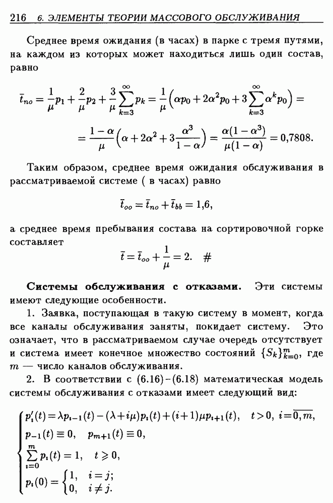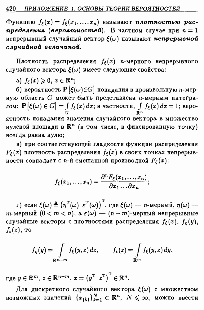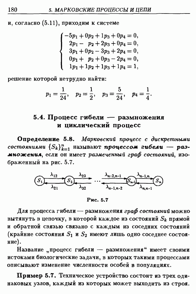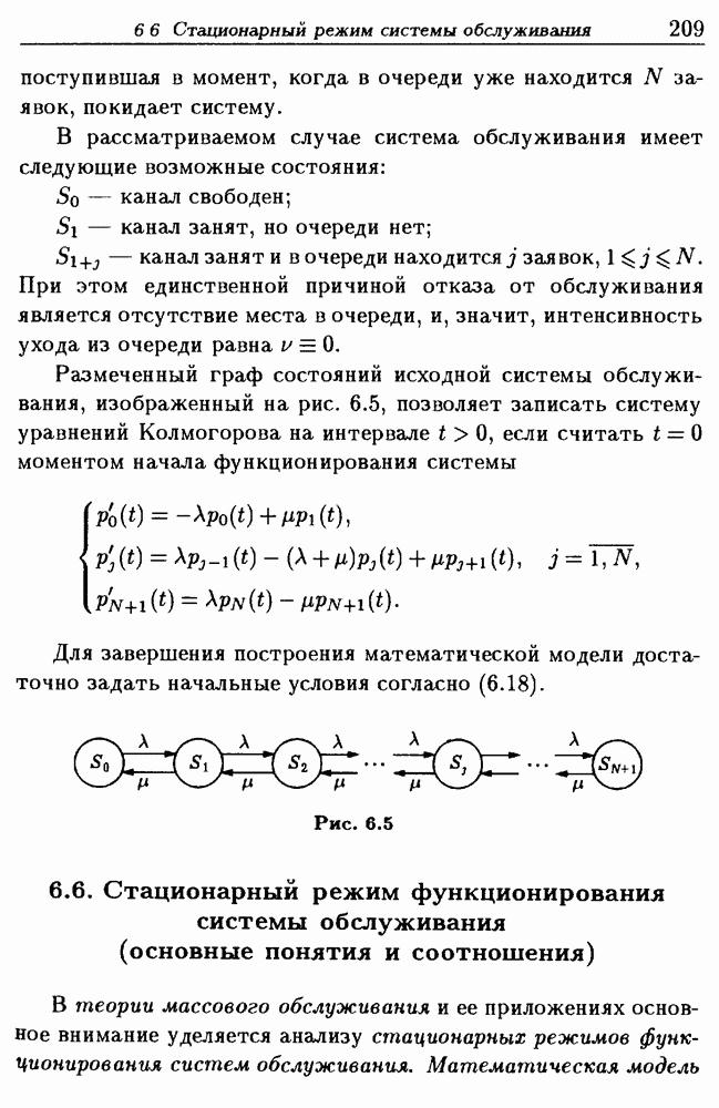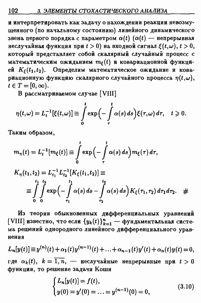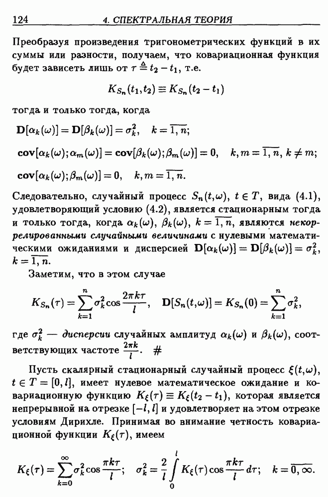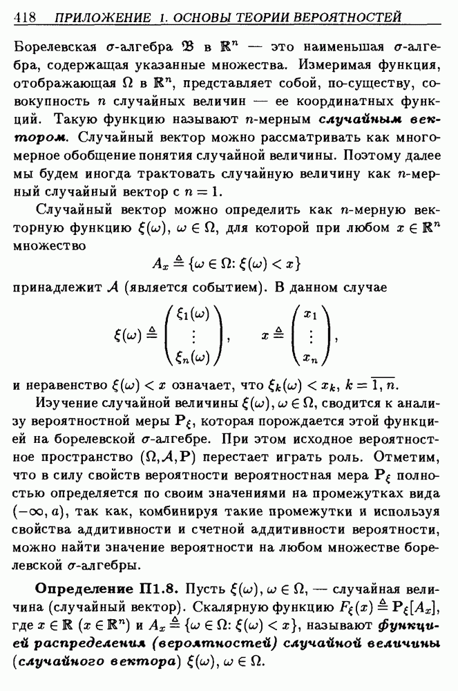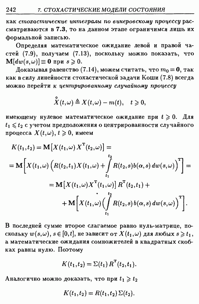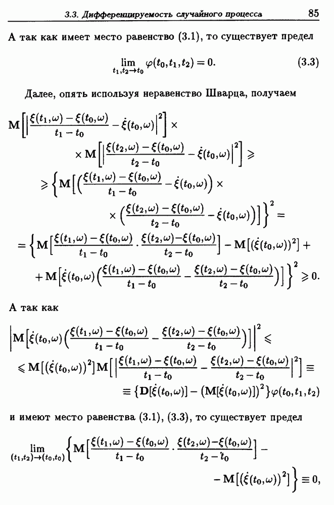 ВВЕДЕНИЕСодержание выпуска относится к одному из специальных курсов высшей математики, который является составной частью теории вероятностей. В процессе развития теории вероятностей как науки можно условно выделить три этапа, первый из которых связан с понятием случайного события, второй — с понятием случайной величины, а третий — с понятием случайной функции. При этом начало первого этапа относится к середине XVII в., второго — к середине XIX в., а третьего — к 20-30 гг. XX в., и начало каждого следующего этапа, в принципе, не связано с завершением предыдущего. Теория случайных процессов возникла вследствие практической необходимости математического моделирования реальных процессов различной природы, состояние каждого из которых в любой фиксированный момент времени представляет собой случайный вектор соответствующей размерности. Примером случайного процесса является процесс изменения во времени пространственных координат частицы, совершающей броуновское движение. Другими примерами случайных процессов являются: процесс стабилизации полета самолета в реальных условиях, когда он находится под постоянным воздействием случайных изменений вектора скорости ветра и других параметров турбулентной атмосферы; процесс развития неоднородной популяции с несколькими типами индивидуумов; процессы спроса и предложения на рынке товаров и т.д. Фактически теория случайных процессов занимается изучением различных семейств случайных величин, эволюционирующих во времени. При этом логически корректное определение основных понятий теории случайных процессов в рамках аксиоматики теории вероятностей создавало и создает много трудностей теоретико-множественного характера. Они связаны, например, с определениями непрерывности, дифференцируемости, интегрируемости и других свойств случайных процессов. Именно поэтому в монографиях по теории случайных процессов значительное место занимает анализ развития теоретикомножественных конструкций. Они написаны на высоком теоретическом уровне и, как правило, сложны для понимания специалистов, занимающихся прикладными проблемами в различных областях человеческой деятельности, решение которых предполагает широкое использование методов теории случайных процессов. А так как литература по прикладным аспектам теории случайных процессов, доступная для понимания широкому кругу студентов, аспирантов и научных работников, имеющих математическую подготовку в объеме стандартного курса высшей математики, весьма немногочисленна, то возникла необходимость в написании этой книги. Основной целью написания предлагаемого учебника явилось систематическое изложение элементов теории случайных процессов, усвоение которых должно способствовать активному овладению ее прикладными методами при решении практических задач. Различный уровень общей математической подготовки читателей и разнообразие их запросов авторы попытались учесть компоновкой материала по разделам с возрастающими уровнями сложности. Все основные понятия и методы иллюстрированы примерами, а в конце каждой главы приведены контрольные вопросы и упражнения. Отметим, что учебник не содержит библиографии по теории случайных процессов и ее приложениям. В списке рекомендуемой литературы указаны лишь те источники, обращение к ко