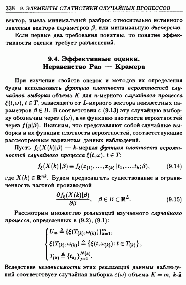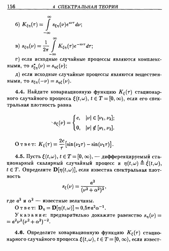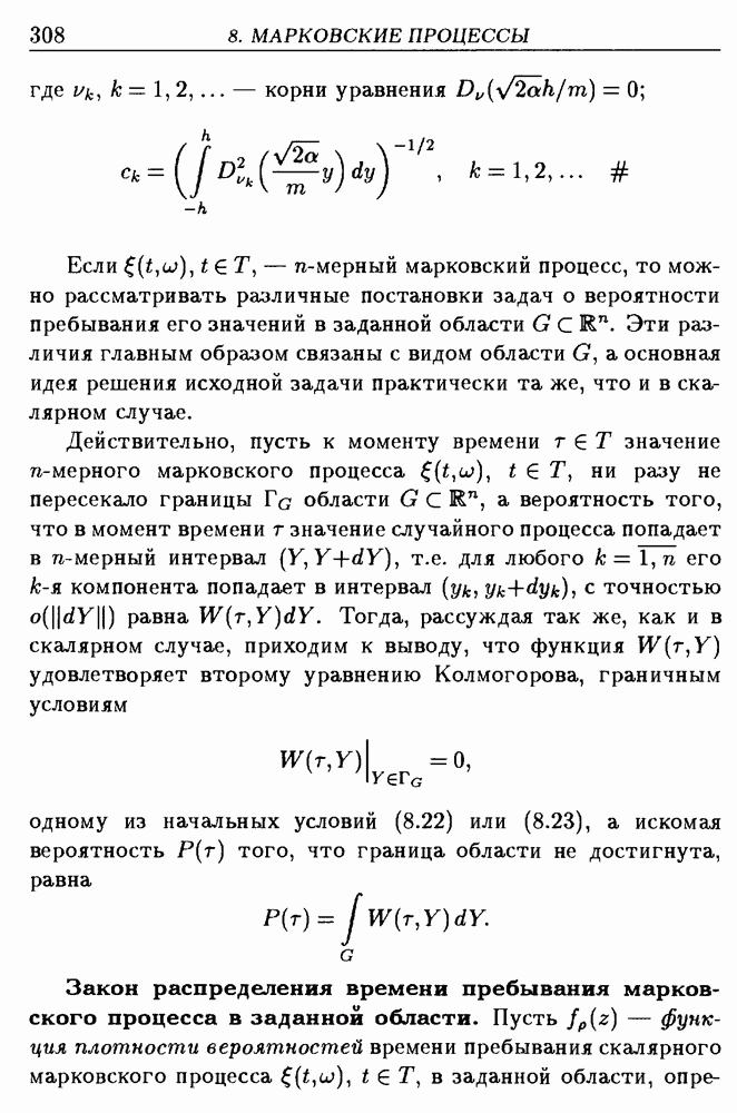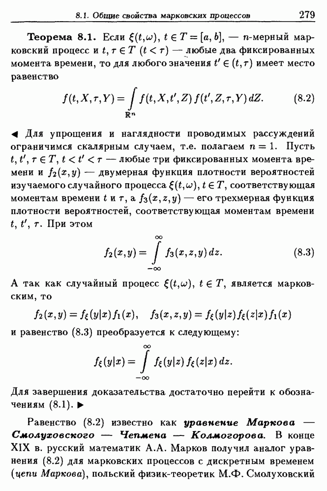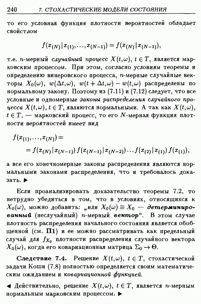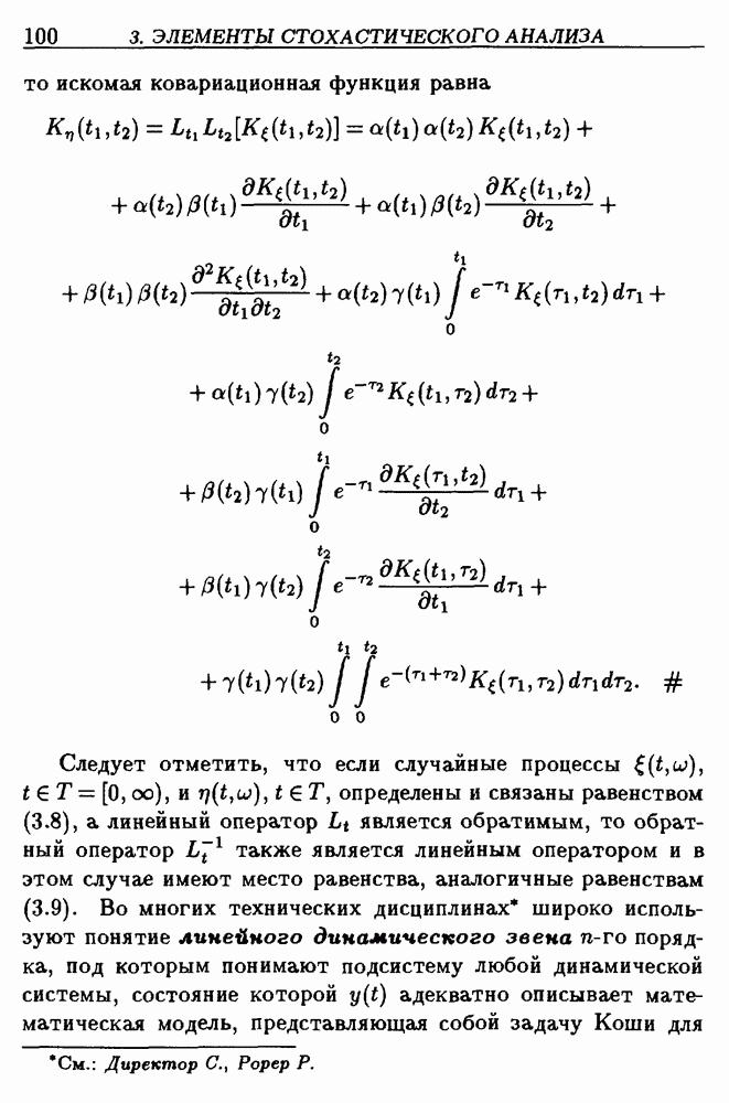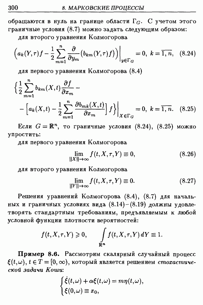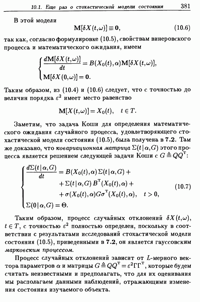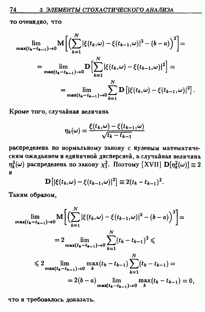 ВВЕДЕНИЕСодержание выпуска относится к одному из специальных курсов высшей математики, который является составной частью теории вероятностей. В процессе развития теории вероятностей как науки можно условно выделить три этапа, первый из которых связан с понятием случайного события, второй — с понятием случайной величины, а третий — с понятием случайной функции. При этом начало первого этапа относится к середине XVII в., второго — к середине XIX в., а третьего — к 20-30 гг. XX в., и начало каждого следующего этапа, в принципе, не связано с завершением предыдущего. Теория случайных процессов возникла вследствие практической необходимости математического моделирования реальных процессов различной природы, состояние каждого из которых в любой фиксированный момент времени представляет собой случайный вектор соответствующей размерности. Примером случайного процесса является процесс изменения во времени пространственных координат частицы, совершающей броуновское движение. Другими примерами случайных процессов являются: процесс стабилизации полета самолета в реальных условиях, когда он находится под постоянным воздействием случайных изменений вектора скорости ветра и других параметров турбулентной атмосферы; процесс развития неоднородной популяции с несколькими типами индивидуумов; процессы спроса и предложения на рынке товаров и т.д. Фактически теория случайных процессов занимается изучением различных семейств случайных величин, эволюционирующих во времени. При этом логически корректное определение основных понятий теории случайных процессов в рамках аксиоматики теории вероятностей создавало и создает много трудностей теоретико-множественного характера. Они связаны, например, с определениями непрерывности, дифференцируемости, интегрируемости и других свойств случайных процессов. Именно поэтому в монографиях по теории случайных процессов значительное место занимает анализ развития теоретикомножественных конструкций. Они написаны на высоком теоретическом уровне и, как правило, сложны для понимания специалистов, занимающихся прикладными проблемами в различных областях человеческой деятельности, решение которых предполагает широкое использование методов теории случайных процессов. А так как литература по прикладным аспектам теории случайных процессов, доступная для понимания широкому кругу студентов, аспирантов и научных работников, имеющих математическую подготовку в объеме стандартного курса высшей математики, весьма немногочисленна, то возникла необходимость в написании этой книги. Основной целью написания предлагаемого учебника явилось систематическое изложение элементов теории случайных процессов, усвоение которых должно способствовать активному овладению ее прикладными методами при решении практических задач. Различный уровень общей математической подготовки читателей и разнообразие их запросов авторы попытались учесть компоновкой материала по разделам с возрастающими уровнями сложности. Все основные понятия и методы иллюстрированы примерами, а в конце каждой главы приведены контрольные вопросы и упражнения. Отметим, что учебник не содержит библиографии по теории случайных процессов и ее приложениям. В списке рекомендуемой литературы указаны лишь те источники, обращение к ко