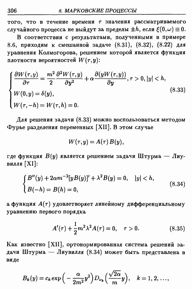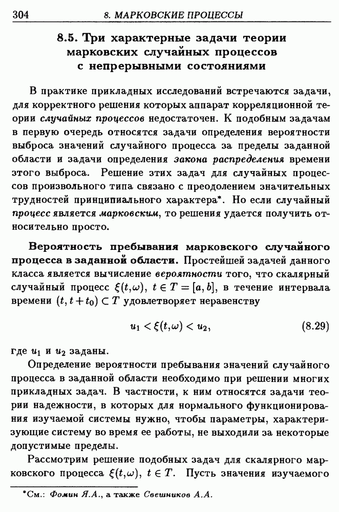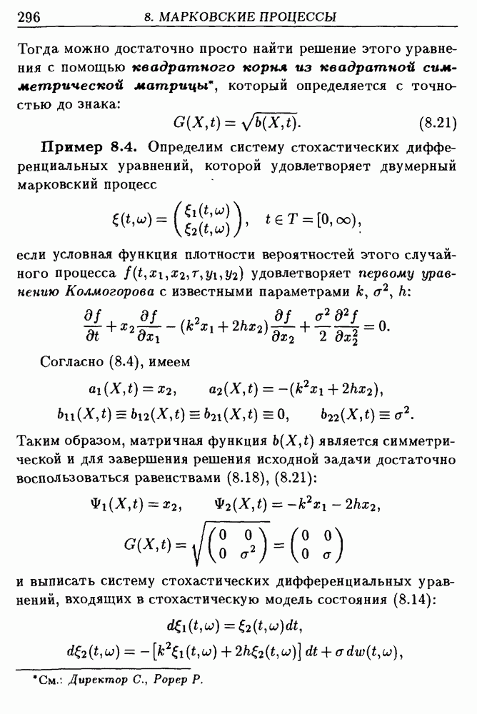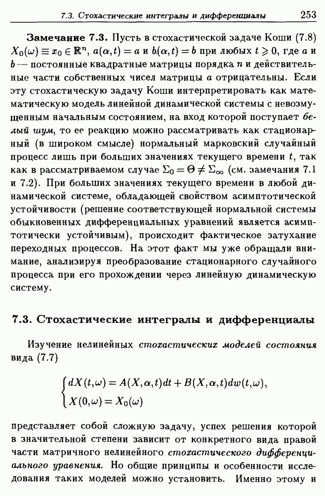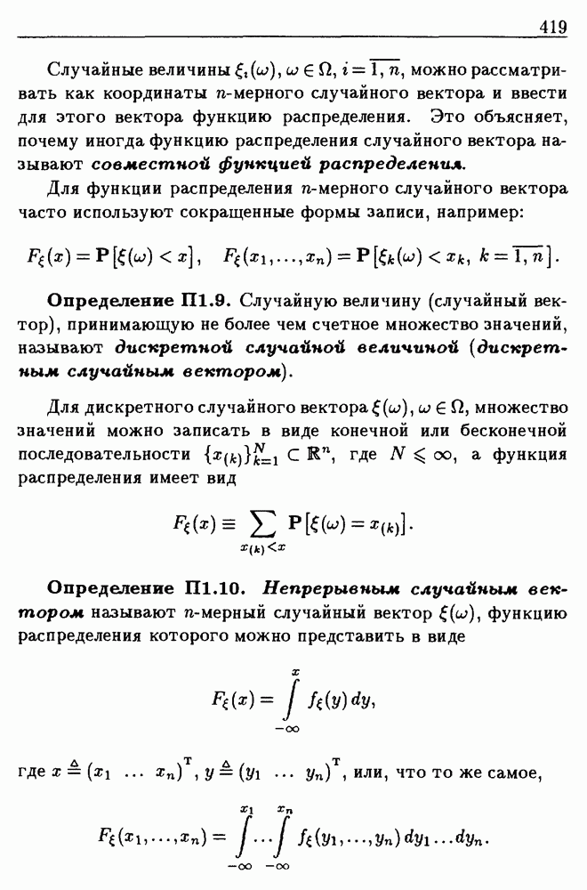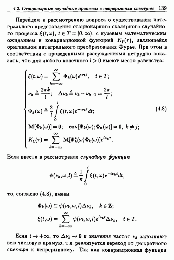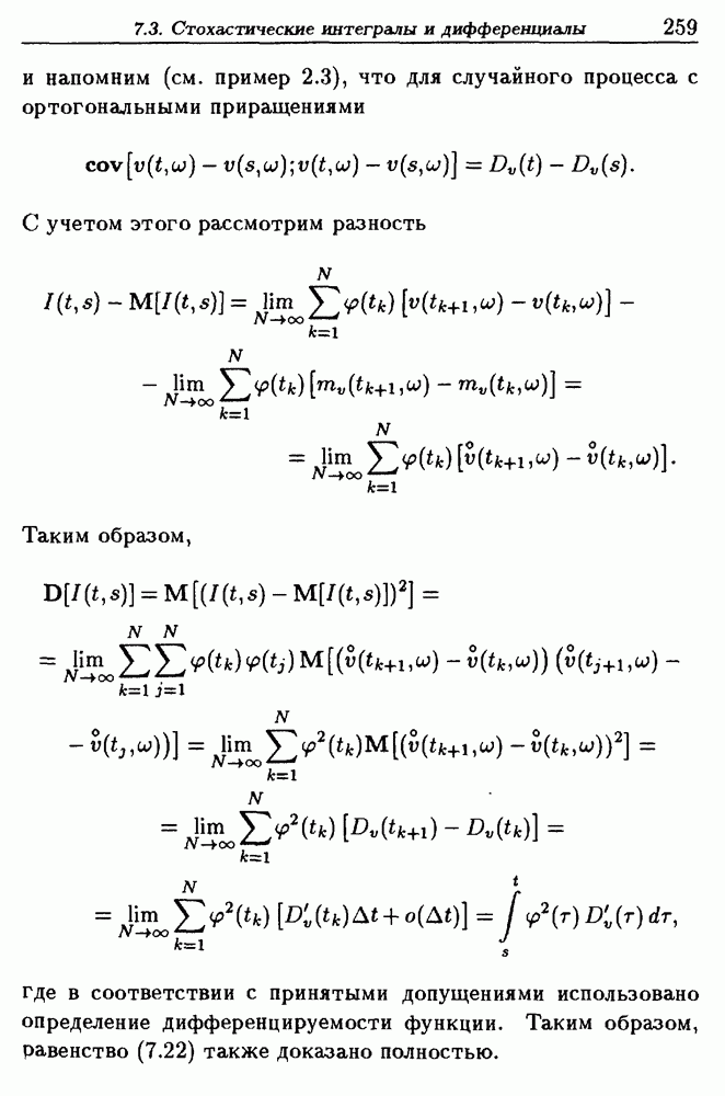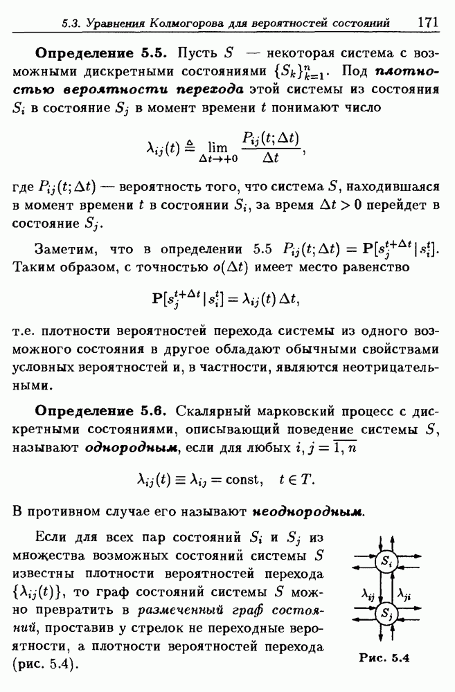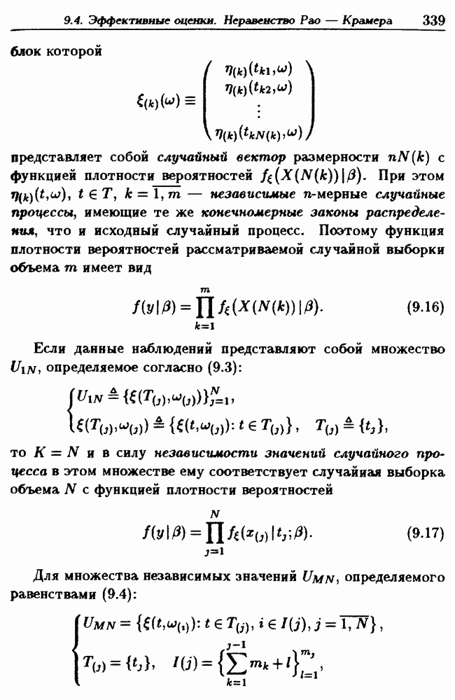 ВВЕДЕНИЕСодержание выпуска относится к одному из специальных курсов высшей математики, который является составной частью теории вероятностей. В процессе развития теории вероятностей как науки можно условно выделить три этапа, первый из которых связан с понятием случайного события, второй — с понятием случайной величины, а третий — с понятием случайной функции. При этом начало первого этапа относится к середине XVII в., второго — к середине XIX в., а третьего — к 20-30 гг. XX в., и начало каждого следующего этапа, в принципе, не связано с завершением предыдущего. Теория случайных процессов возникла вследствие практической необходимости математического моделирования реальных процессов различной природы, состояние каждого из которых в любой фиксированный момент времени представляет собой случайный вектор соответствующей размерности. Примером случайного процесса является процесс изменения во времени пространственных координат частицы, совершающей броуновское движение. Другими примерами случайных процессов являются: процесс стабилизации полета самолета в реальных условиях, когда он находится под постоянным воздействием случайных изменений вектора скорости ветра и других параметров турбулентной атмосферы; процесс развития неоднородной популяции с несколькими типами индивидуумов; процессы спроса и предложения на рынке товаров и т.д. Фактически теория случайных процессов занимается изучением различных семейств случайных величин, эволюционирующих во времени. При этом логически корректное определение основных понятий теории случайных процессов в рамках аксиоматики теории вероятностей создавало и создает много трудностей теоретико-множественного характера. Они связаны, например, с определениями непрерывности, дифференцируемости, интегрируемости и других свойств случайных процессов. Именно поэтому в монографиях по теории случайных процессов значительное место занимает анализ развития теоретикомножественных конструкций. Они написаны на высоком теоретическом уровне и, как правило, сложны для понимания специалистов, занимающихся прикладными проблемами в различных областях человеческой деятельности, решение которых предполагает широкое использование методов теории случайных процессов. А так как литература по прикладным аспектам теории случайных процессов, доступная для понимания широкому кругу студентов, аспирантов и научных работников, имеющих математическую подготовку в объеме стандартного курса высшей математики, весьма немногочисленна, то возникла необходимость в написании этой книги. Основной целью написания предлагаемого учебника явилось систематическое изложение элементов теории случайных процессов, усвоение которых должно способствовать активному овладению ее прикладными методами при решении практических задач. Различный уровень общей математической подготовки читателей и разнообразие их запросов авторы попытались учесть компоновкой материала по разделам с возрастающими уровнями сложности. Все основные понятия и методы иллюстрированы примерами, а в конце каждой главы приведены контрольные вопросы и упражнения. Отметим, что учебник не содержит библиографии по теории случайных процессов и ее приложениям. В списке рекомендуемой литературы указаны лишь те источники, обращение к ко