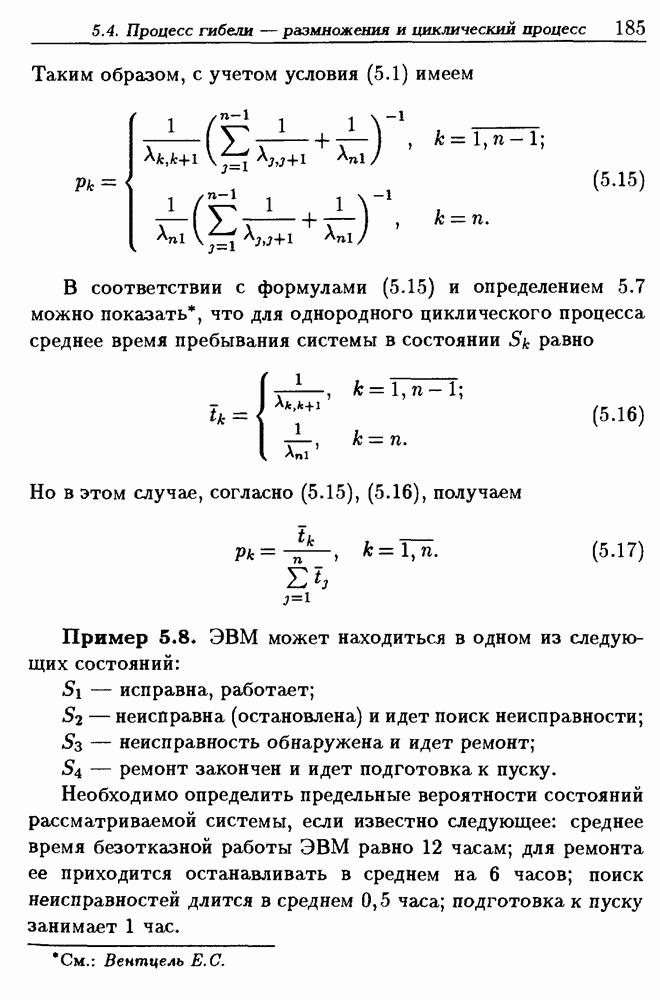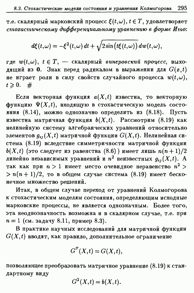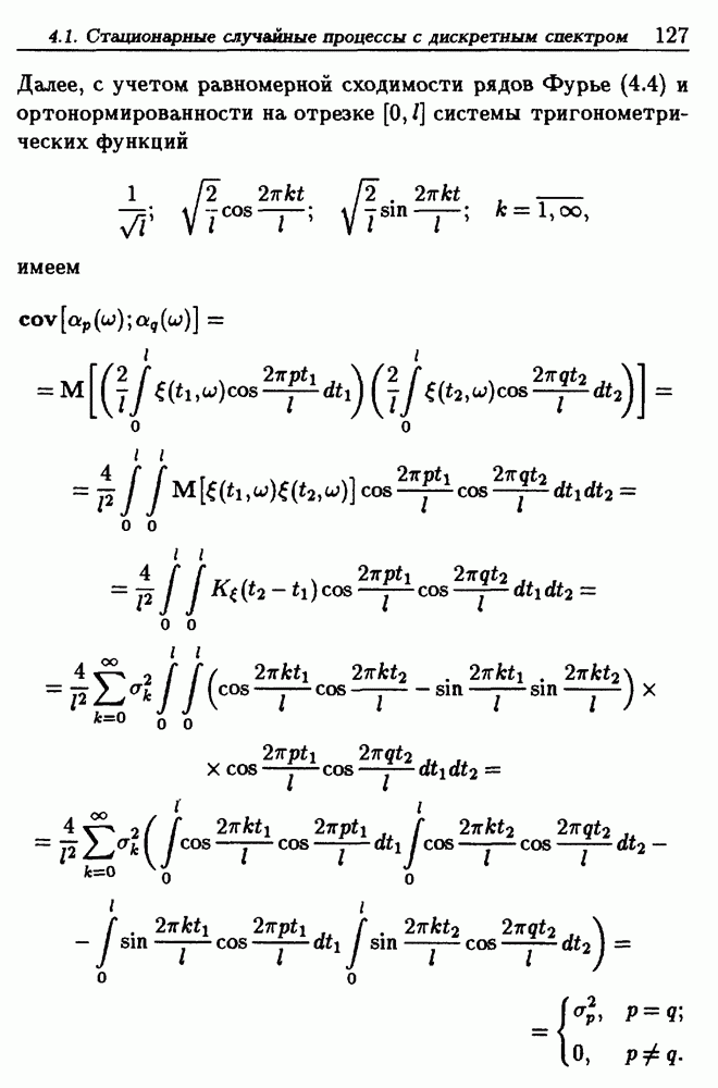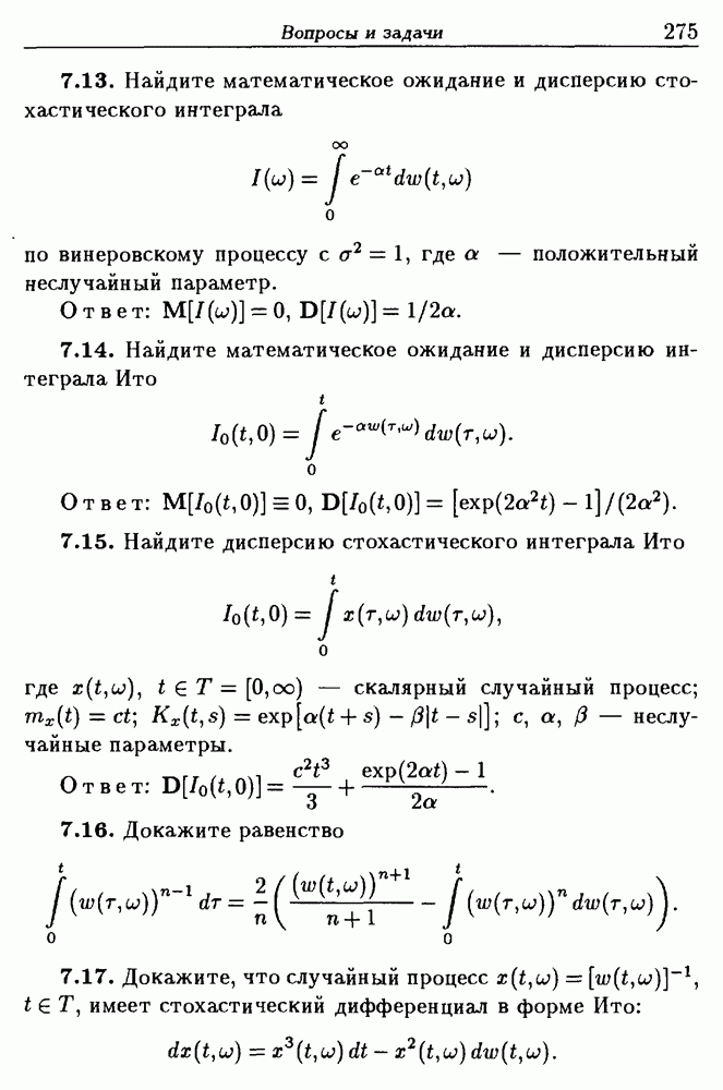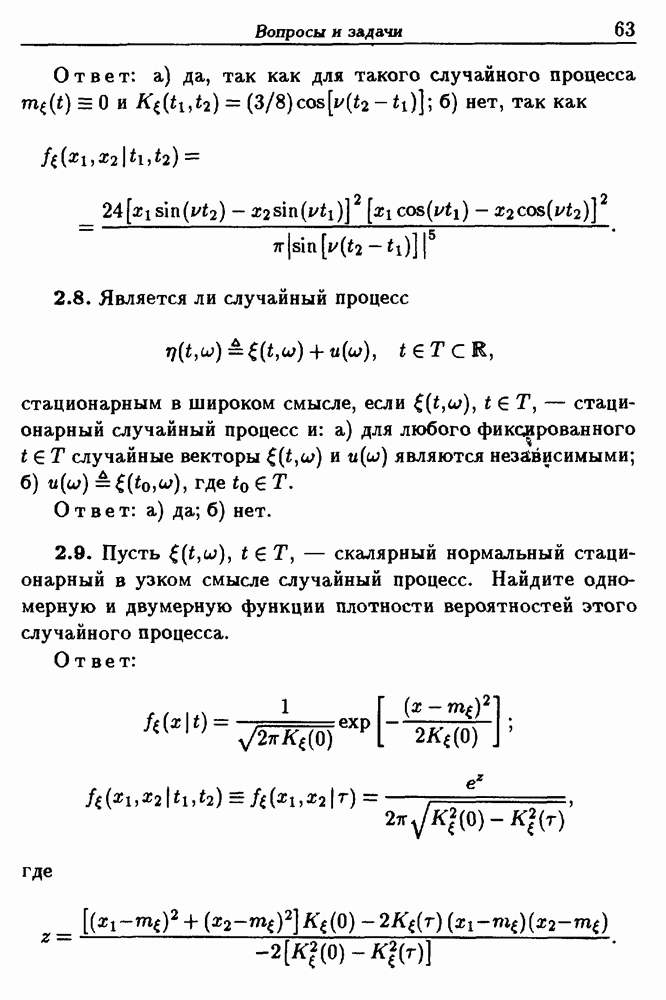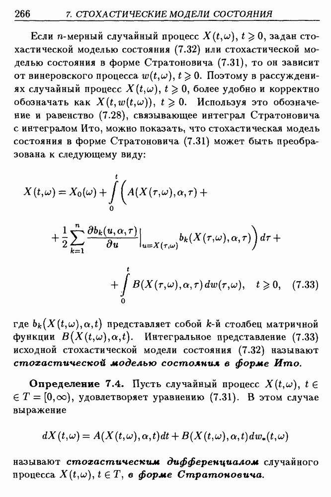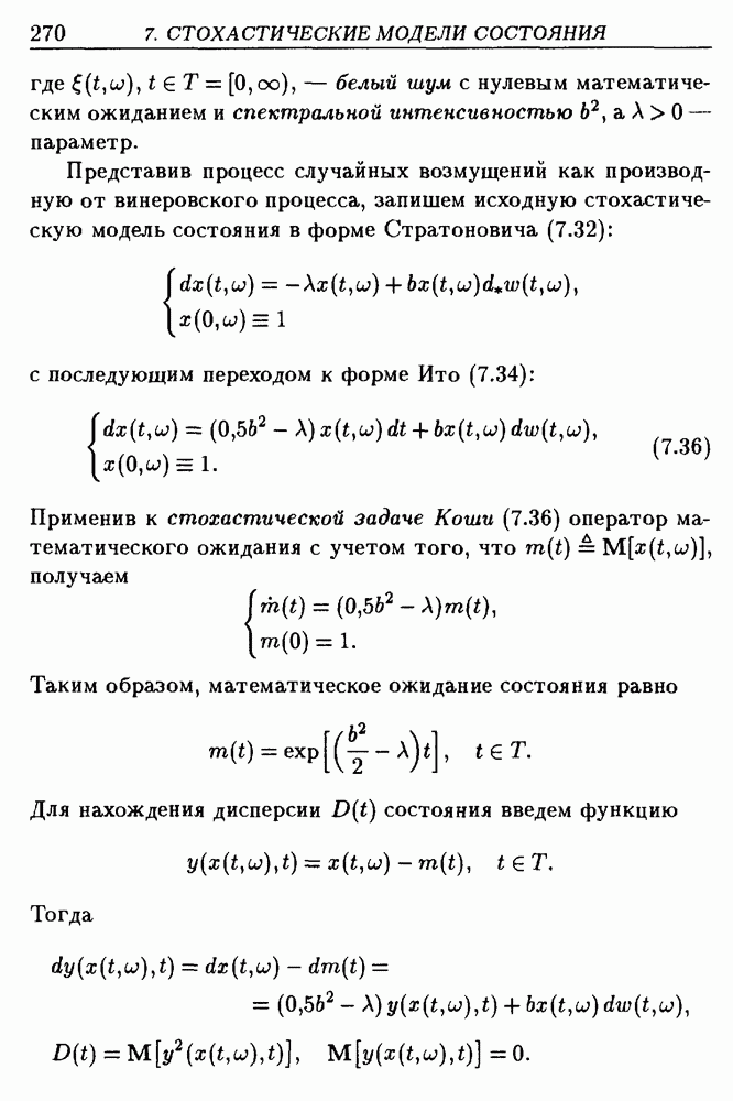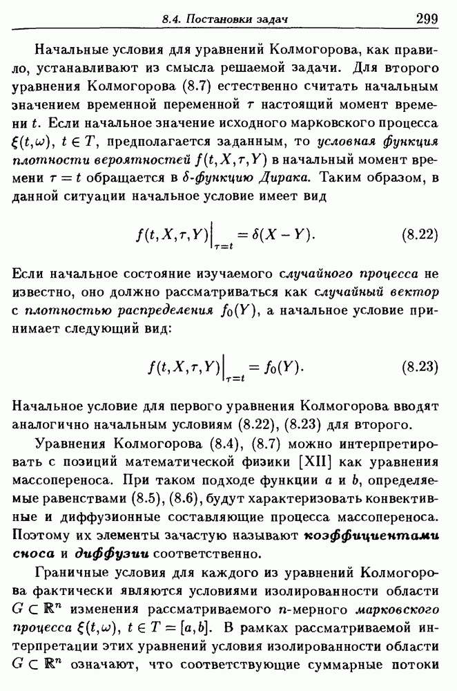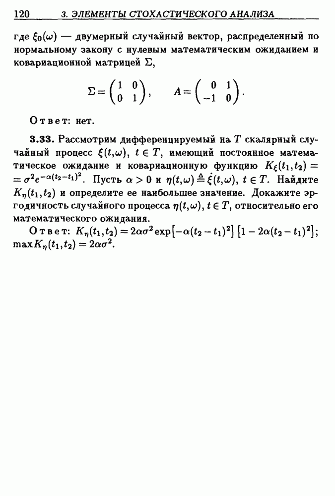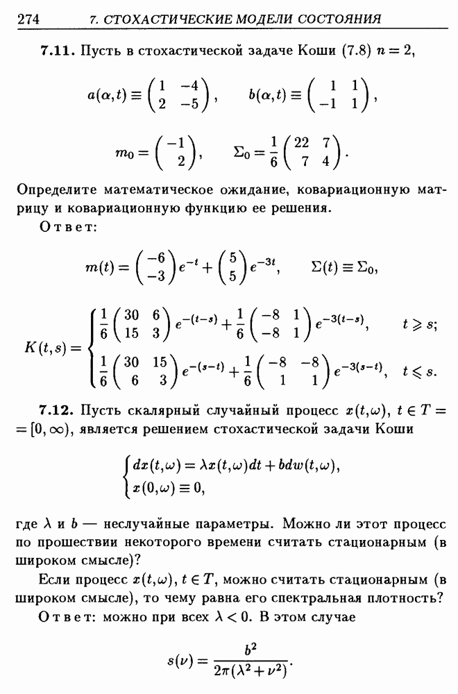 ВВЕДЕНИЕСодержание выпуска относится к одному из специальных курсов высшей математики, который является составной частью теории вероятностей. В процессе развития теории вероятностей как науки можно условно выделить три этапа, первый из которых связан с понятием случайного события, второй — с понятием случайной величины, а третий — с понятием случайной функции. При этом начало первого этапа относится к середине XVII в., второго — к середине XIX в., а третьего — к 20-30 гг. XX в., и начало каждого следующего этапа, в принципе, не связано с завершением предыдущего. Теория случайных процессов возникла вследствие практической необходимости математического моделирования реальных процессов различной природы, состояние каждого из которых в любой фиксированный момент времени представляет собой случайный вектор соответствующей размерности. Примером случайного процесса является процесс изменения во времени пространственных координат частицы, совершающей броуновское движение. Другими примерами случайных процессов являются: процесс стабилизации полета самолета в реальных условиях, когда он находится под постоянным воздействием случайных изменений вектора скорости ветра и других параметров турбулентной атмосферы; процесс развития неоднородной популяции с несколькими типами индивидуумов; процессы спроса и предложения на рынке товаров и т.д. Фактически теория случайных процессов занимается изучением различных семейств случайных величин, эволюционирующих во времени. При этом логически корректное определение основных понятий теории случайных процессов в рамках аксиоматики теории вероятностей создавало и создает много трудностей теоретико-множественного характера. Они связаны, например, с определениями непрерывности, дифференцируемости, интегрируемости и других свойств случайных процессов. Именно поэтому в монографиях по теории случайных процессов значительное место занимает анализ развития теоретикомножественных конструкций. Они написаны на высоком теоретическом уровне и, как правило, сложны для понимания специалистов, занимающихся прикладными проблемами в различных областях человеческой деятельности, решение которых предполагает широкое использование методов теории случайных процессов. А так как литература по прикладным аспектам теории случайных процессов, доступная для понимания широкому кругу студентов, аспирантов и научных работников, имеющих математическую подготовку в объеме стандартного курса высшей математики, весьма немногочисленна, то возникла необходимость в написании этой книги. Основной целью написания предлагаемого учебника явилось систематическое изложение элементов теории случайных процессов, усвоение которых должно способствовать активному овладению ее прикладными методами при решении практических задач. Различный уровень общей математической подготовки читателей и разнообразие их запросов авторы попытались учесть компоновкой материала по разделам с возрастающими уровнями сложности. Все основные понятия и методы иллюстрированы примерами, а в конце каждой главы приведены контрольные вопросы и упражнения. Отметим, что учебник не содержит библиографии по теории случайных процессов и ее приложениям. В списке рекомендуемой литературы указаны лишь те источники, обращение к ко