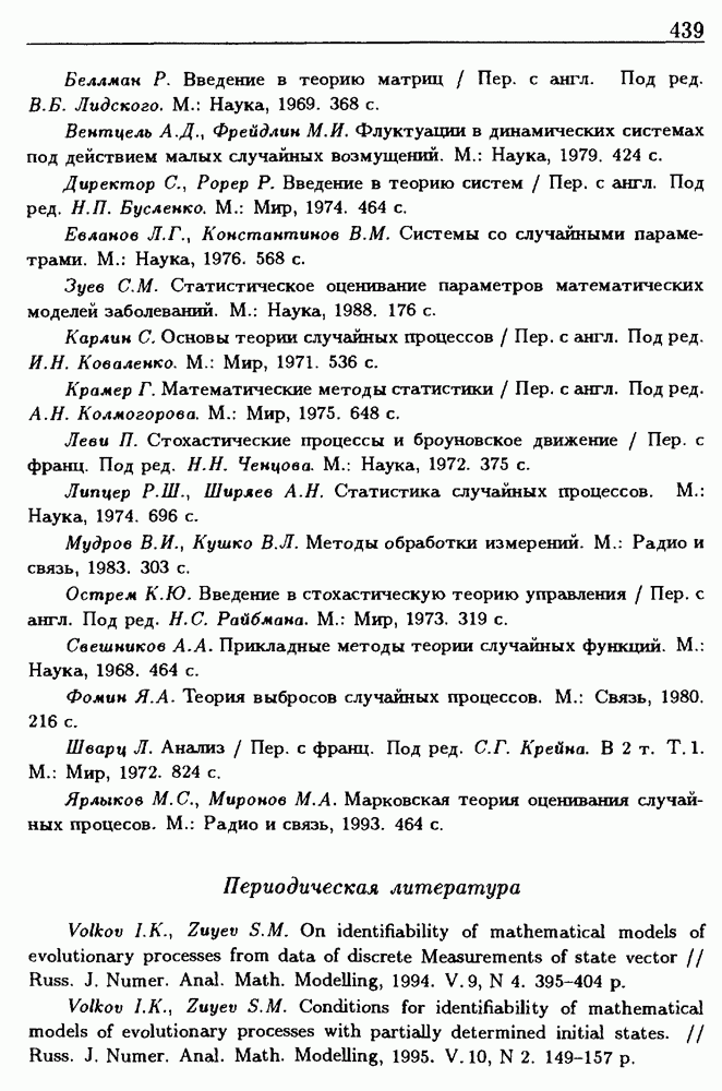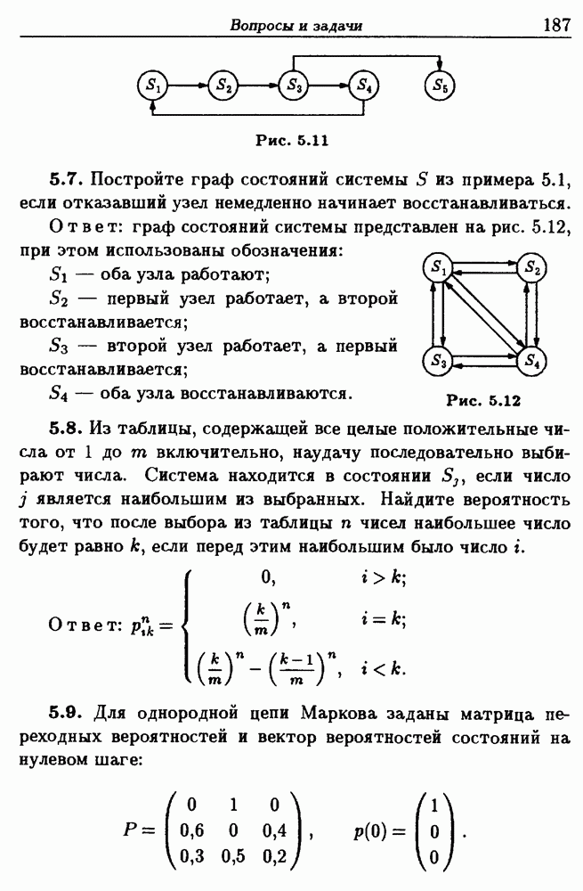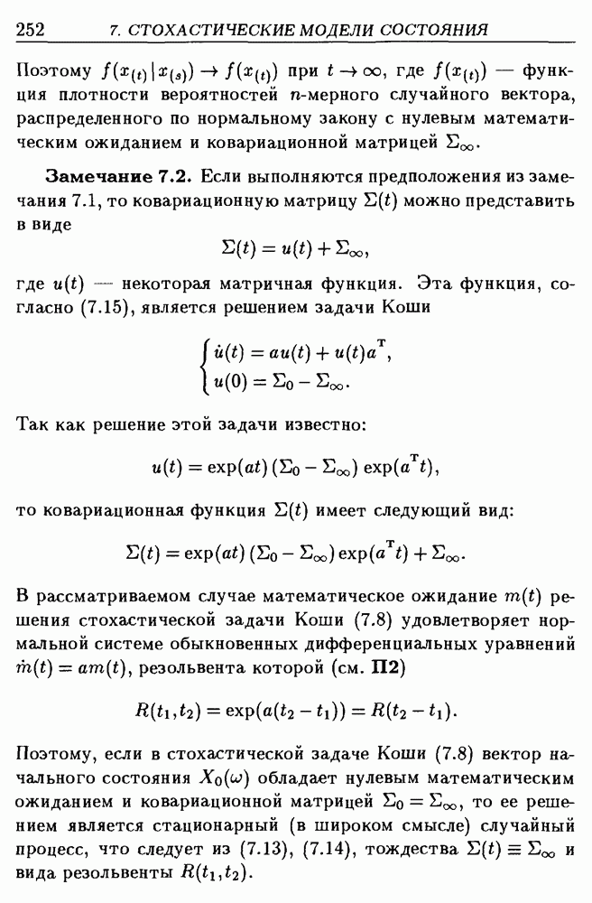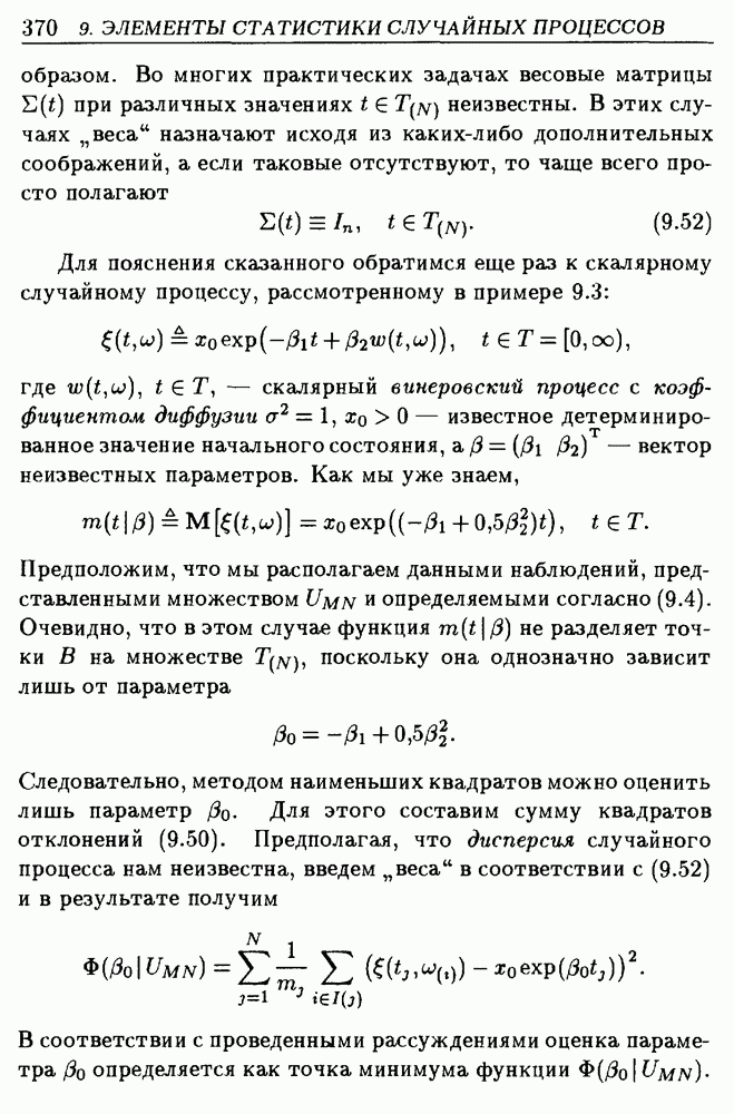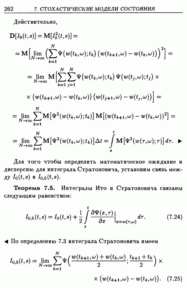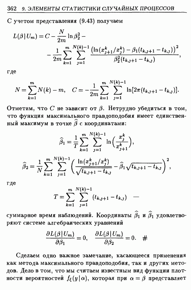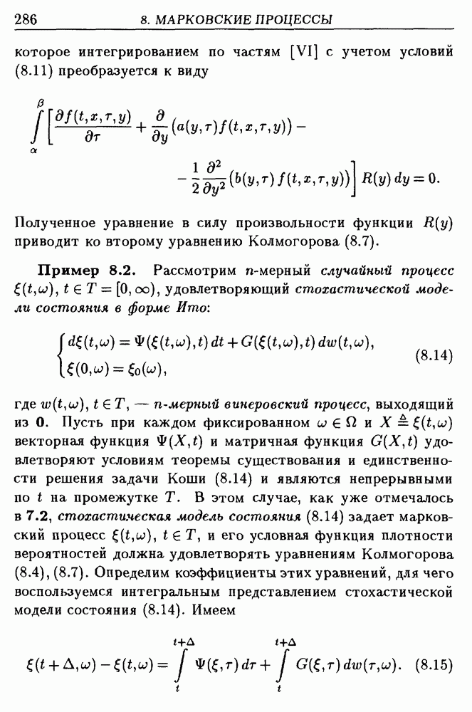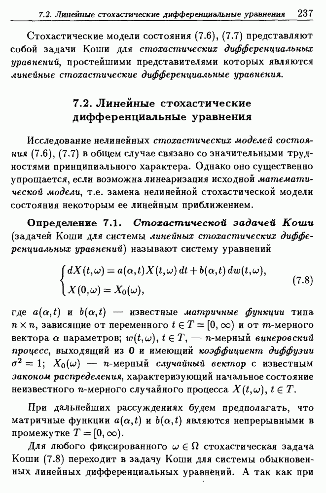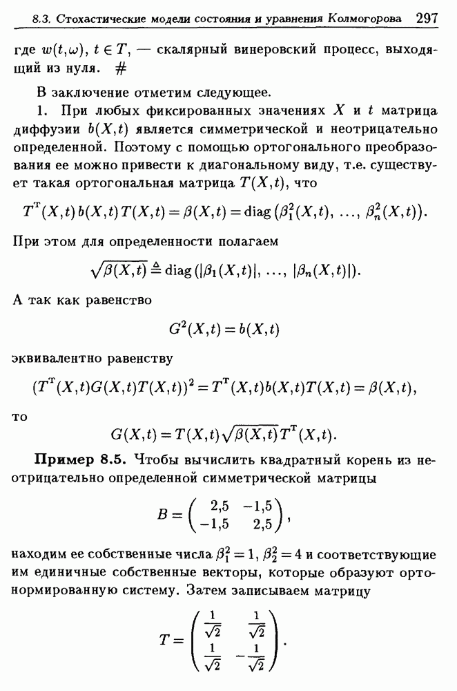 ВВЕДЕНИЕСодержание выпуска относится к одному из специальных курсов высшей математики, который является составной частью теории вероятностей. В процессе развития теории вероятностей как науки можно условно выделить три этапа, первый из которых связан с понятием случайного события, второй — с понятием случайной величины, а третий — с понятием случайной функции. При этом начало первого этапа относится к середине XVII в., второго — к середине XIX в., а третьего — к 20-30 гг. XX в., и начало каждого следующего этапа, в принципе, не связано с завершением предыдущего. Теория случайных процессов возникла вследствие практической необходимости математического моделирования реальных процессов различной природы, состояние каждого из которых в любой фиксированный момент времени представляет собой случайный вектор соответствующей размерности. Примером случайного процесса является процесс изменения во времени пространственных координат частицы, совершающей броуновское движение. Другими примерами случайных процессов являются: процесс стабилизации полета самолета в реальных условиях, когда он находится под постоянным воздействием случайных изменений вектора скорости ветра и других параметров турбулентной атмосферы; процесс развития неоднородной популяции с несколькими типами индивидуумов; процессы спроса и предложения на рынке товаров и т.д. Фактически теория случайных процессов занимается изучением различных семейств случайных величин, эволюционирующих во времени. При этом логически корректное определение основных понятий теории случайных процессов в рамках аксиоматики теории вероятностей создавало и создает много трудностей теоретико-множественного характера. Они связаны, например, с определениями непрерывности, дифференцируемости, интегрируемости и других свойств случайных процессов. Именно поэтому в монографиях по теории случайных процессов значительное место занимает анализ развития теоретикомножественных конструкций. Они написаны на высоком теоретическом уровне и, как правило, сложны для понимания специалистов, занимающихся прикладными проблемами в различных областях человеческой деятельности, решение которых предполагает широкое использование методов теории случайных процессов. А так как литература по прикладным аспектам теории случайных процессов, доступная для понимания широкому кругу студентов, аспирантов и научных работников, имеющих математическую подготовку в объеме стандартного курса высшей математики, весьма немногочисленна, то возникла необходимость в написании этой книги. Основной целью написания предлагаемого учебника явилось систематическое изложение элементов теории случайных процессов, усвоение которых должно способствовать активному овладению ее прикладными методами при решении практических задач. Различный уровень общей математической подготовки читателей и разнообразие их запросов авторы попытались учесть компоновкой материала по разделам с возрастающими уровнями сложности. Все основные понятия и методы иллюстрированы примерами, а в конце каждой главы приведены контрольные вопросы и упражнения. Отметим, что учебник не содержит библиографии по теории случайных процессов и ее приложениям. В списке рекомендуемой литературы указаны лишь те источники, обращение к ко