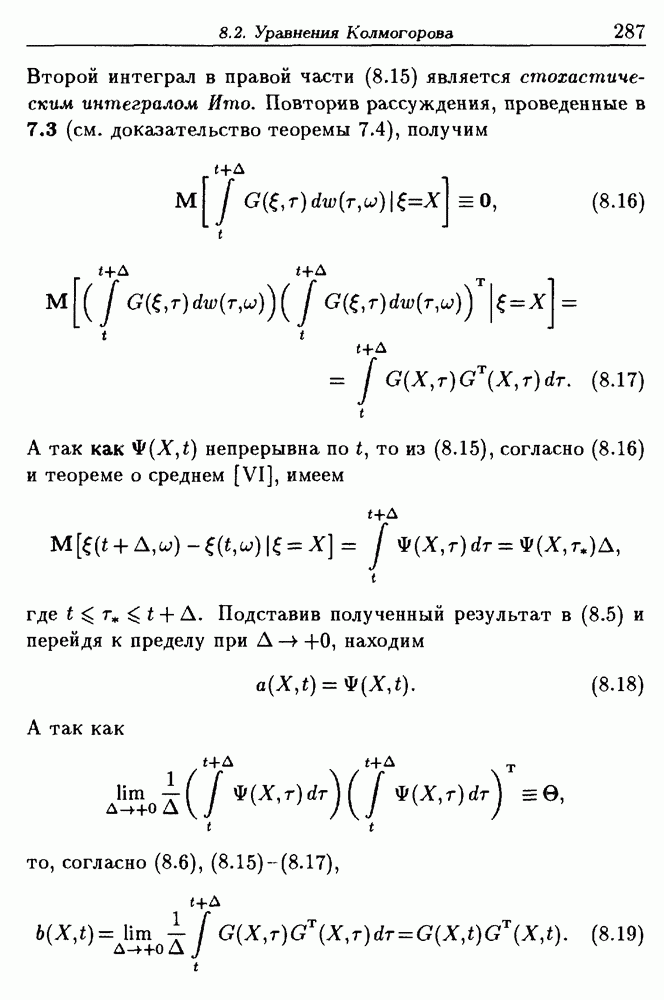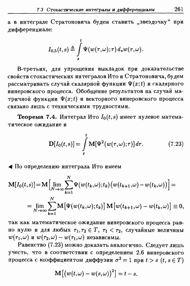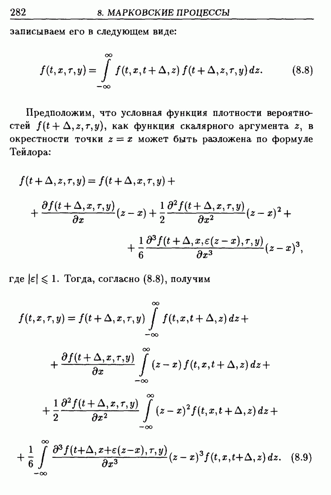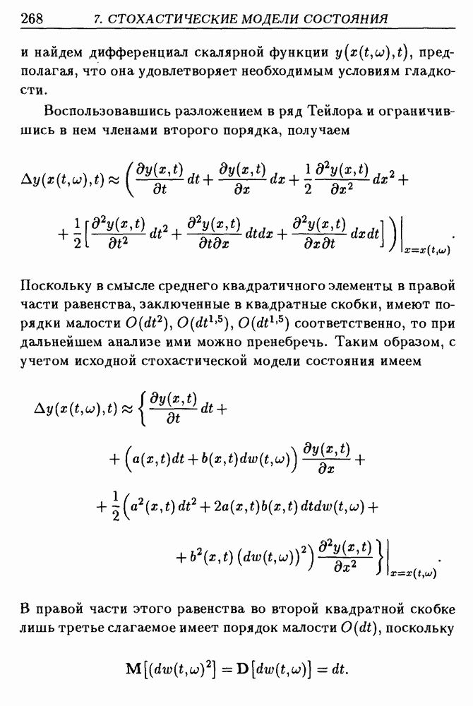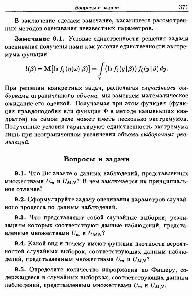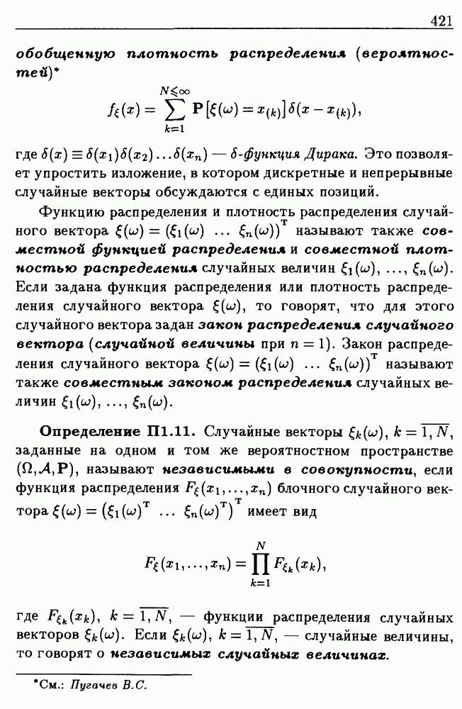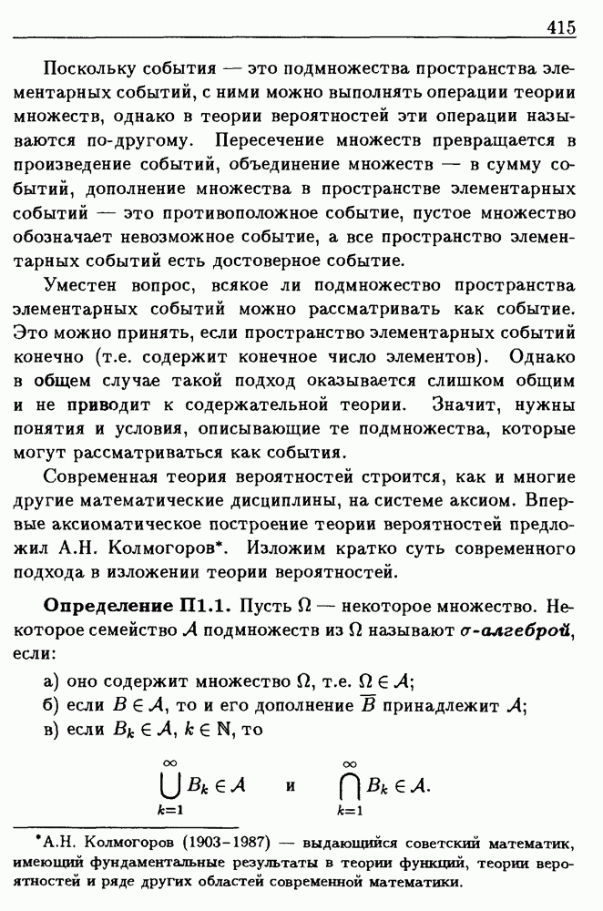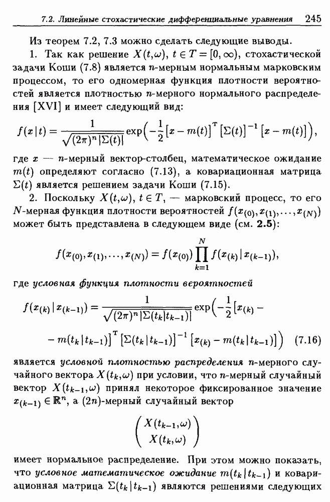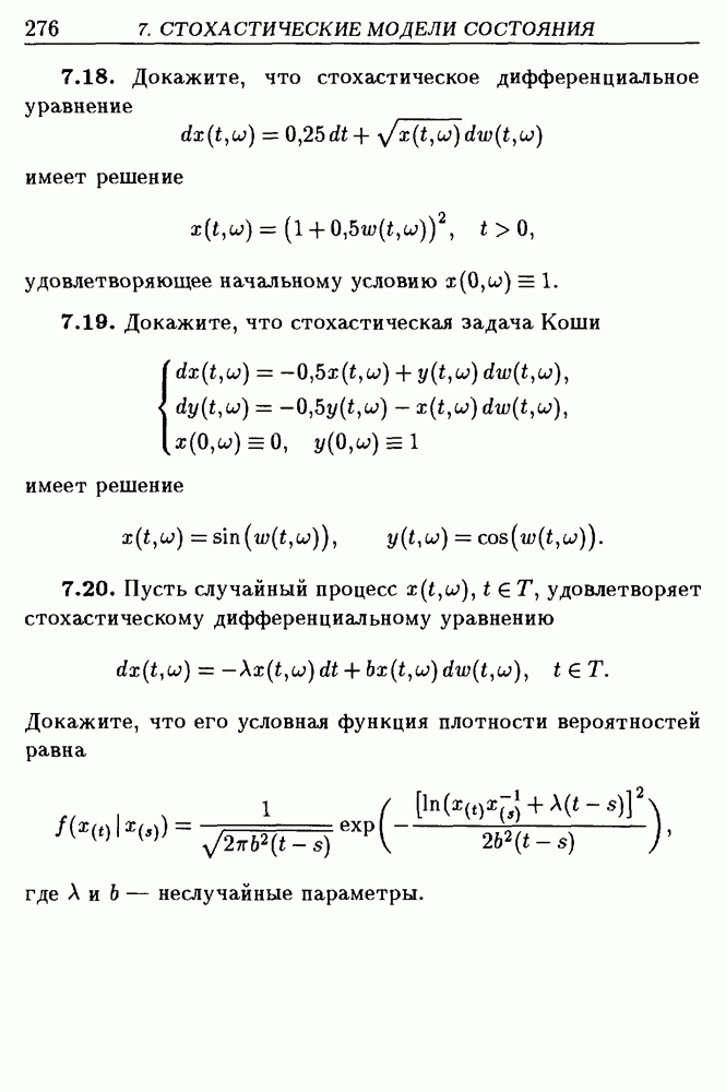 ВВЕДЕНИЕСодержание выпуска относится к одному из специальных курсов высшей математики, который является составной частью теории вероятностей. В процессе развития теории вероятностей как науки можно условно выделить три этапа, первый из которых связан с понятием случайного события, второй — с понятием случайной величины, а третий — с понятием случайной функции. При этом начало первого этапа относится к середине XVII в., второго — к середине XIX в., а третьего — к 20-30 гг. XX в., и начало каждого следующего этапа, в принципе, не связано с завершением предыдущего. Теория случайных процессов возникла вследствие практической необходимости математического моделирования реальных процессов различной природы, состояние каждого из которых в любой фиксированный момент времени представляет собой случайный вектор соответствующей размерности. Примером случайного процесса является процесс изменения во времени пространственных координат частицы, совершающей броуновское движение. Другими примерами случайных процессов являются: процесс стабилизации полета самолета в реальных условиях, когда он находится под постоянным воздействием случайных изменений вектора скорости ветра и других параметров турбулентной атмосферы; процесс развития неоднородной популяции с несколькими типами индивидуумов; процессы спроса и предложения на рынке товаров и т.д. Фактически теория случайных процессов занимается изучением различных семейств случайных величин, эволюционирующих во времени. При этом логически корректное определение основных понятий теории случайных процессов в рамках аксиоматики теории вероятностей создавало и создает много трудностей теоретико-множественного характера. Они связаны, например, с определениями непрерывности, дифференцируемости, интегрируемости и других свойств случайных процессов. Именно поэтому в монографиях по теории случайных процессов значительное место занимает анализ развития теоретикомножественных конструкций. Они написаны на высоком теоретическом уровне и, как правило, сложны для понимания специалистов, занимающихся прикладными проблемами в различных областях человеческой деятельности, решение которых предполагает широкое использование методов теории случайных процессов. А так как литература по прикладным аспектам теории случайных процессов, доступная для понимания широкому кругу студентов, аспирантов и научных работников, имеющих математическую подготовку в объеме стандартного курса высшей математики, весьма немногочисленна, то возникла необходимость в написании этой книги. Основной целью написания предлагаемого учебника явилось систематическое изложение элементов теории случайных процессов, усвоение которых должно способствовать активному овладению ее прикладными методами при решении практических задач. Различный уровень общей математической подготовки читателей и разнообразие их запросов авторы попытались учесть компоновкой материала по разделам с возрастающими уровнями сложности. Все основные понятия и методы иллюстрированы примерами, а в конце каждой главы приведены контрольные вопросы и упражнения. Отметим, что учебник не содержит библиографии по теории случайных процессов и ее приложениям. В списке рекомендуемой литературы указаны лишь те источники, обращение к ко
