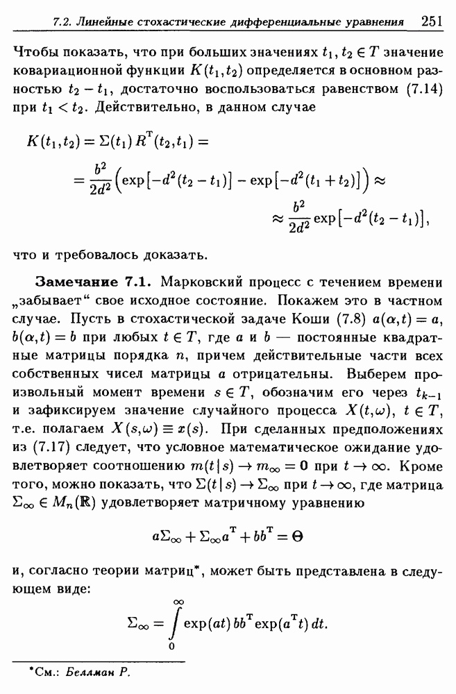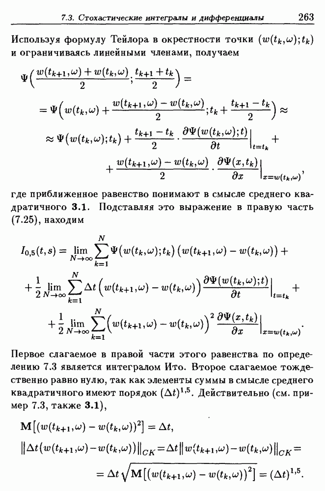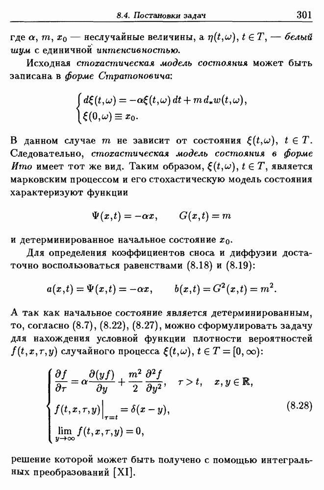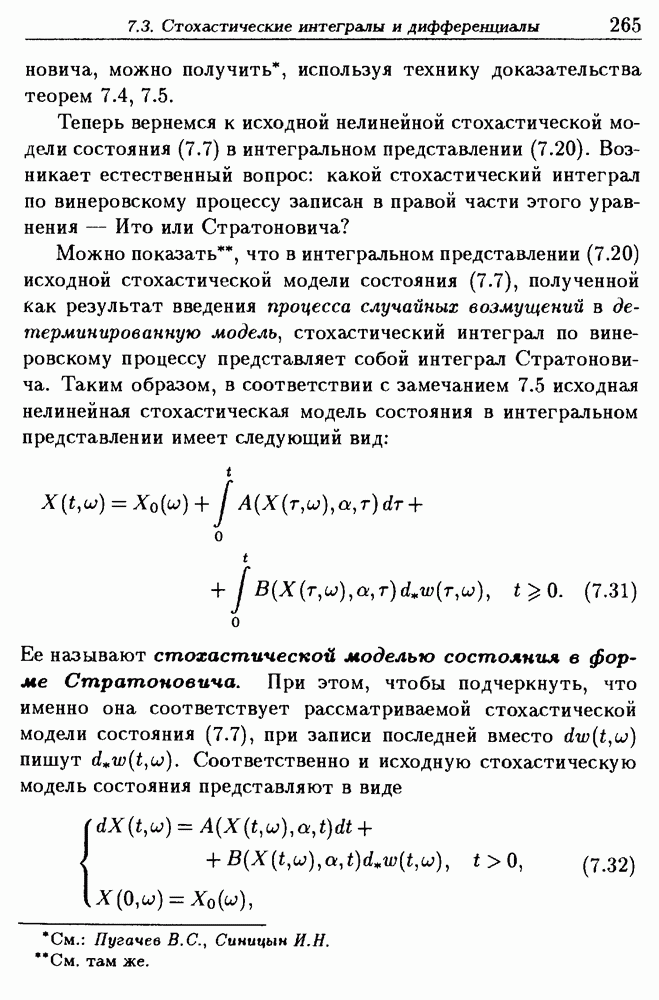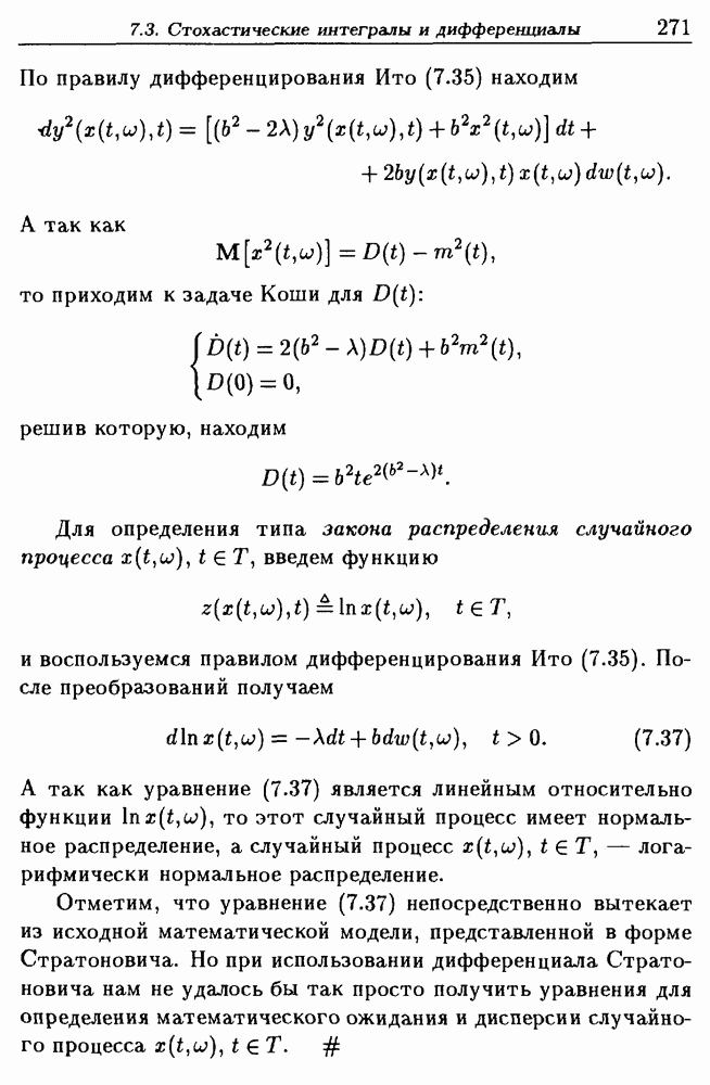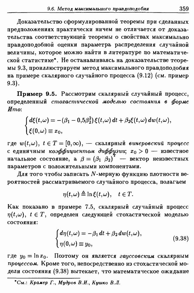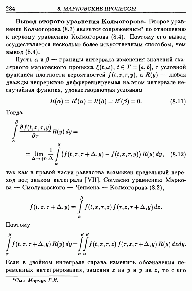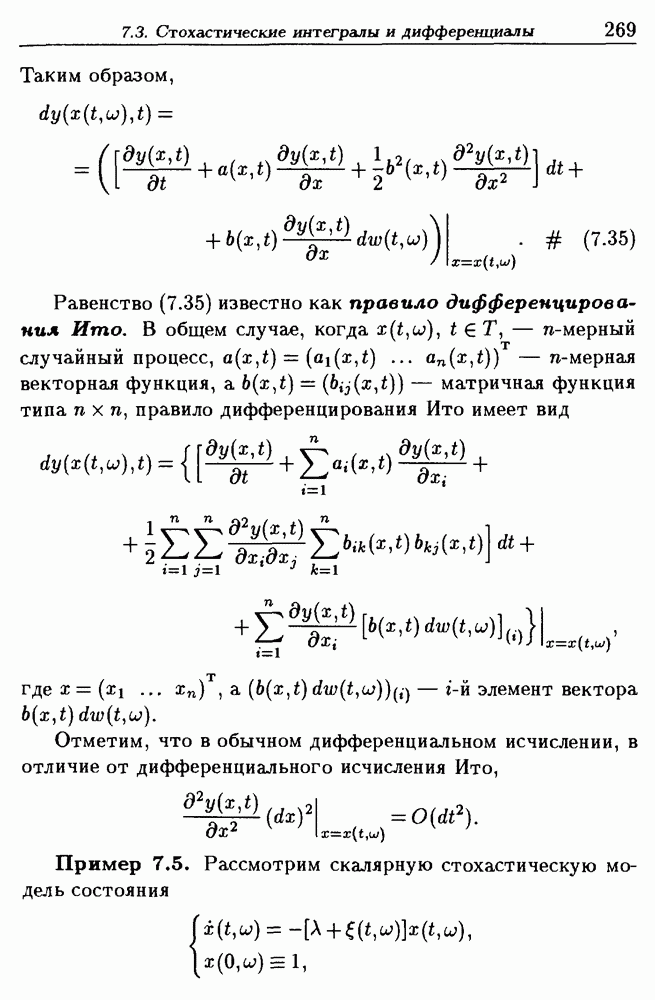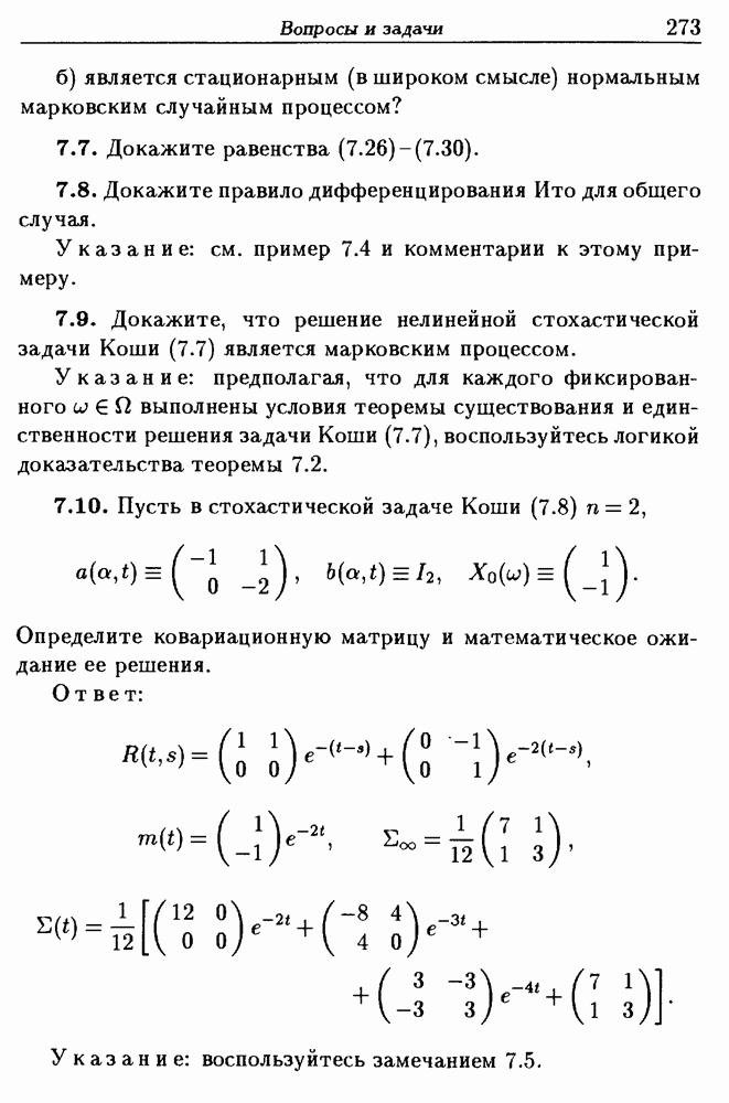 ВВЕДЕНИЕСодержание выпуска относится к одному из специальных курсов высшей математики, который является составной частью теории вероятностей. В процессе развития теории вероятностей как науки можно условно выделить три этапа, первый из которых связан с понятием случайного события, второй — с понятием случайной величины, а третий — с понятием случайной функции. При этом начало первого этапа относится к середине XVII в., второго — к середине XIX в., а третьего — к 20-30 гг. XX в., и начало каждого следующего этапа, в принципе, не связано с завершением предыдущего. Теория случайных процессов возникла вследствие практической необходимости математического моделирования реальных процессов различной природы, состояние каждого из которых в любой фиксированный момент времени представляет собой случайный вектор соответствующей размерности. Примером случайного процесса является процесс изменения во времени пространственных координат частицы, совершающей броуновское движение. Другими примерами случайных процессов являются: процесс стабилизации полета самолета в реальных условиях, когда он находится под постоянным воздействием случайных изменений вектора скорости ветра и других параметров турбулентной атмосферы; процесс развития неоднородной популяции с несколькими типами индивидуумов; процессы спроса и предложения на рынке товаров и т.д. Фактически теория случайных процессов занимается изучением различных семейств случайных величин, эволюционирующих во времени. При этом логически корректное определение основных понятий теории случайных процессов в рамках аксиоматики теории вероятностей создавало и создает много трудностей теоретико-множественного характера. Они связаны, например, с определениями непрерывности, дифференцируемости, интегрируемости и других свойств случайных процессов. Именно поэтому в монографиях по теории случайных процессов значительное место занимает анализ развития теоретикомножественных конструкций. Они написаны на высоком теоретическом уровне и, как правило, сложны для понимания специалистов, занимающихся прикладными проблемами в различных областях человеческой деятельности, решение которых предполагает широкое использование методов теории случайных процессов. А так как литература по прикладным аспектам теории случайных процессов, доступная для понимания широкому кругу студентов, аспирантов и научных работников, имеющих математическую подготовку в объеме стандартного курса высшей математики, весьма немногочисленна, то возникла необходимость в написании этой книги. Основной целью написания предлагаемого учебника явилось систематическое изложение элементов теории случайных процессов, усвоение которых должно способствовать активному овладению ее прикладными методами при решении практических задач. Различный уровень общей математической подготовки читателей и разнообразие их запросов авторы попытались учесть компоновкой материала по разделам с возрастающими уровнями сложности. Все основные понятия и методы иллюстрированы примерами, а в конце каждой главы приведены контрольные вопросы и упражнения. Отметим, что учебник не содержит библиографии по теории случайных процессов и ее приложениям. В списке рекомендуемой литературы указаны лишь те источники, обращение к ко