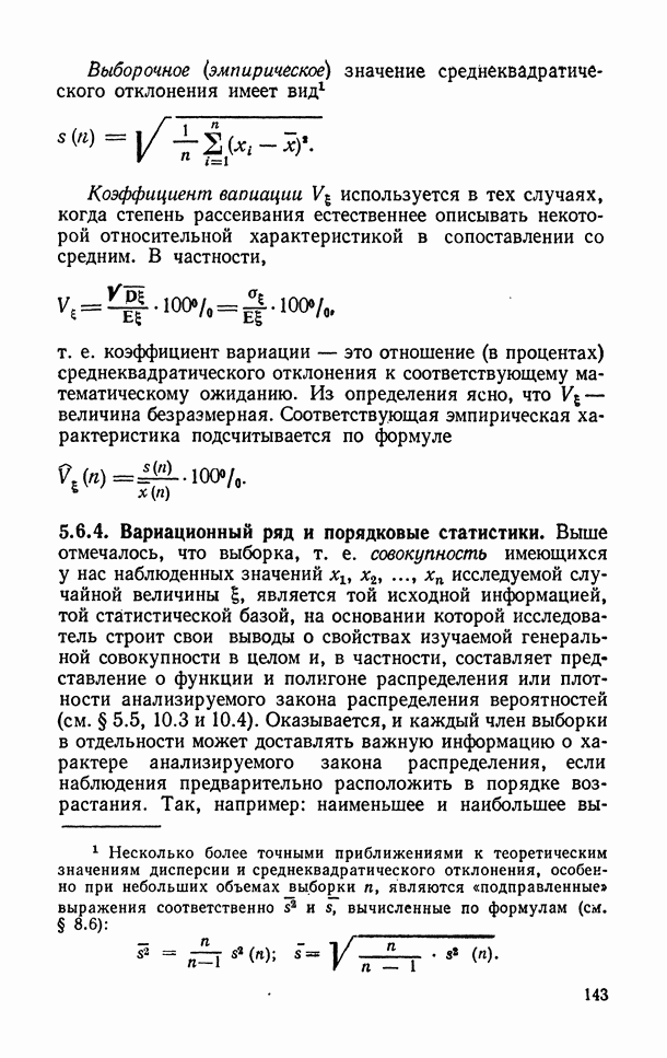 используемый, в частности, наряду с рассмотренными в п. 5.6.3 выборочной дисперсией, среднеквадратическим отклонением и коэффициентом вариации в качестве эмпирической характеристики степени случайного рассеивания исследуемого признака. Формула (5.29") позволяет получить функцию распределения размаха