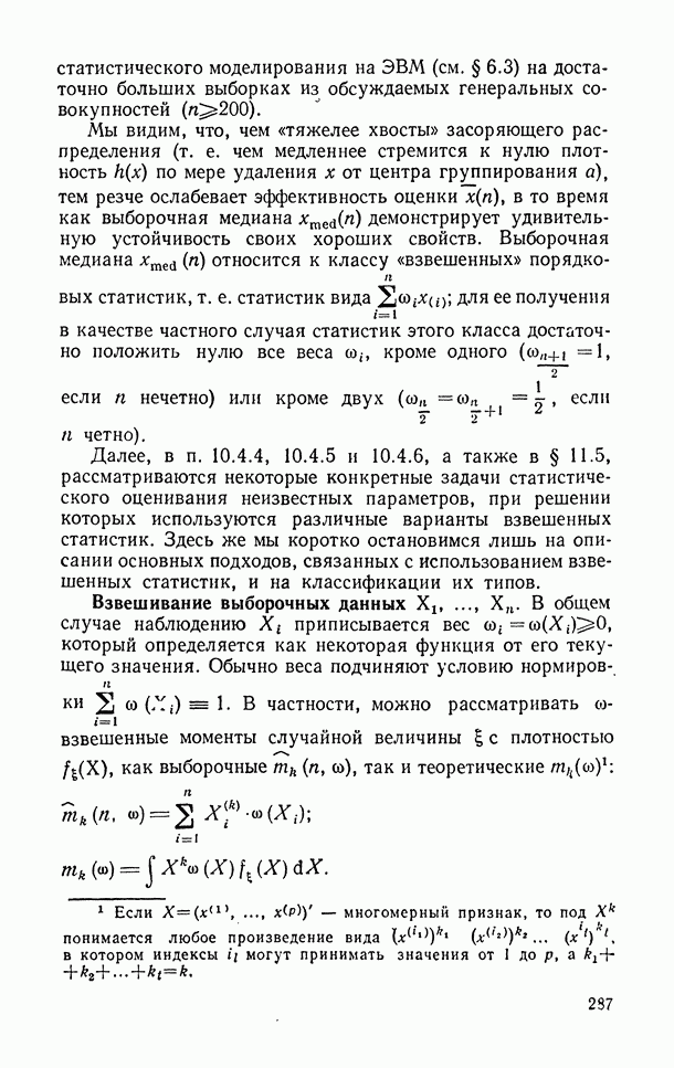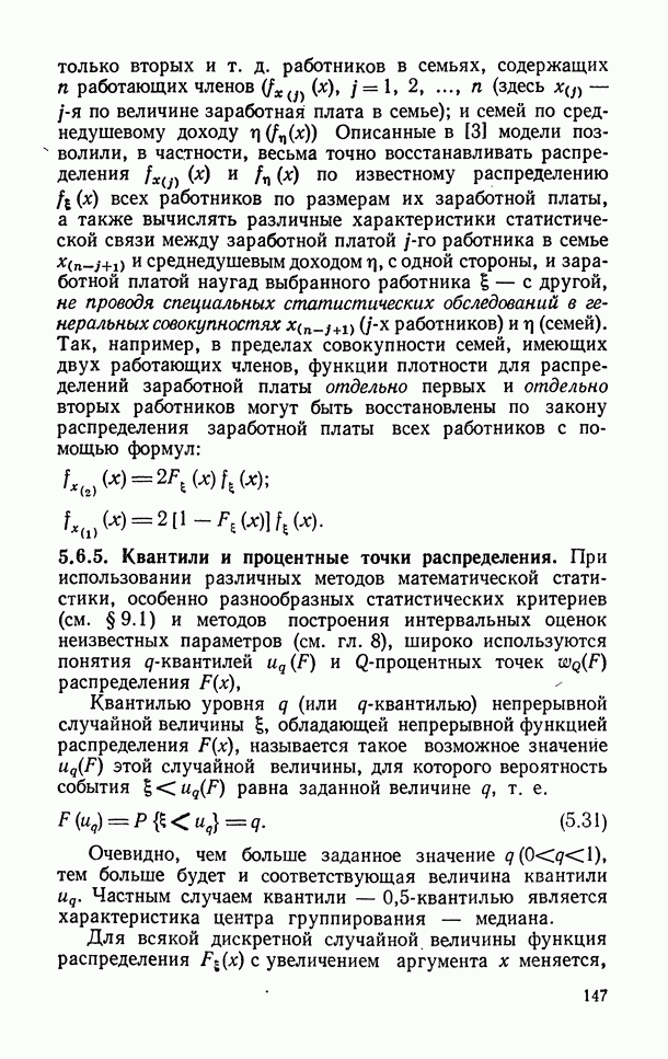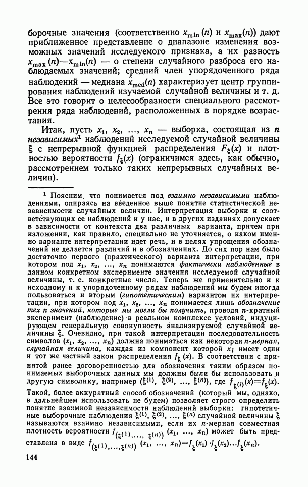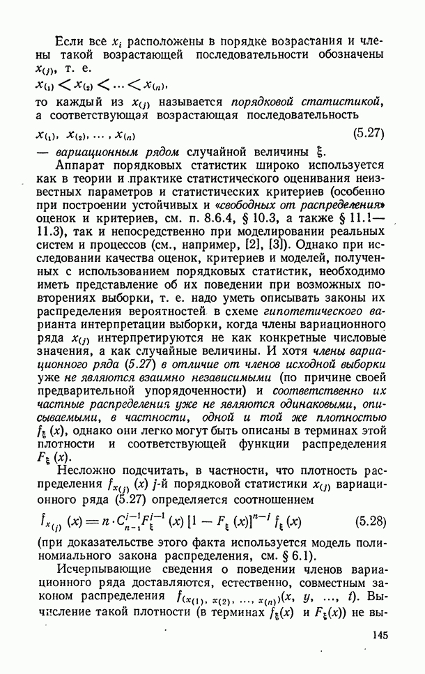 интерпретируются не как конкретные числовые значения, а как случайные величины. И хотя члены вариационного ряда (5.27) в отличие от членов исходной выборки уже не являются взаимно независимыми (по причине своей предварительной упорядоченности) и соответственно их частные распределения уже не являются одинаковыми, описываемыми, в частности у одной и той же плотностью