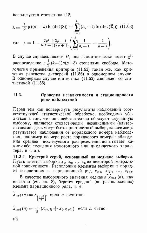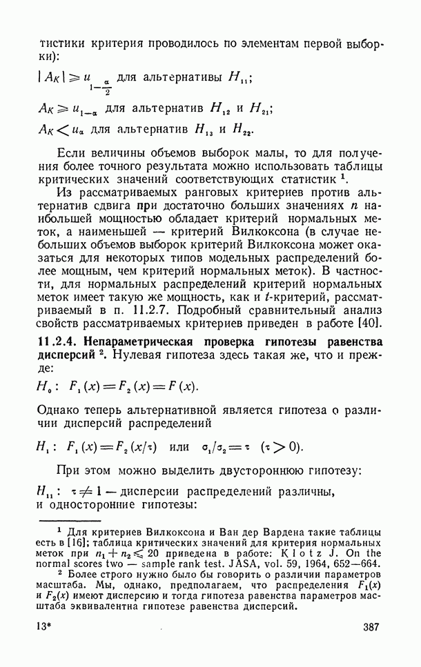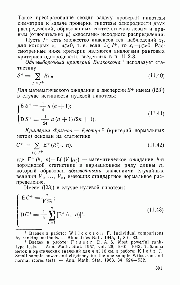 Аппарат порядковых статистик широко используется как в теории и практике статистического оценивания неизвестных параметров и статистических критериев (особенно при построении устойчивых и «свободных от распределения» оценок и критериев, см. п. 8.6.4, § 10.3, а также § 11.1- 11.3), так и непосредственно при моделировании реальных систем и процессов (см., например, [2], [3]). Однако при исследовании качества оценок, критериев и моделей, полученных с использованием порядковых статистик, необходимо иметь представление об их поведении при возможных повторениях выборки, т. е. надо уметь описывать законы их распределения вероятностей в схеме гипотетического варианта интерпретации выборки, когда члены вариационного ряда