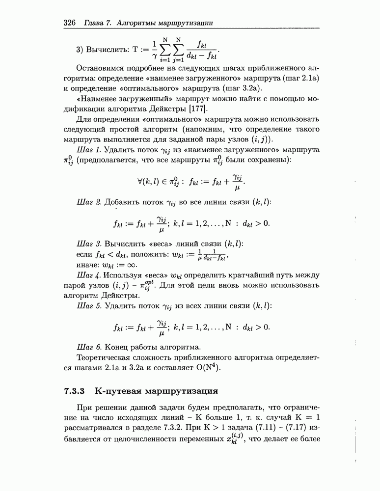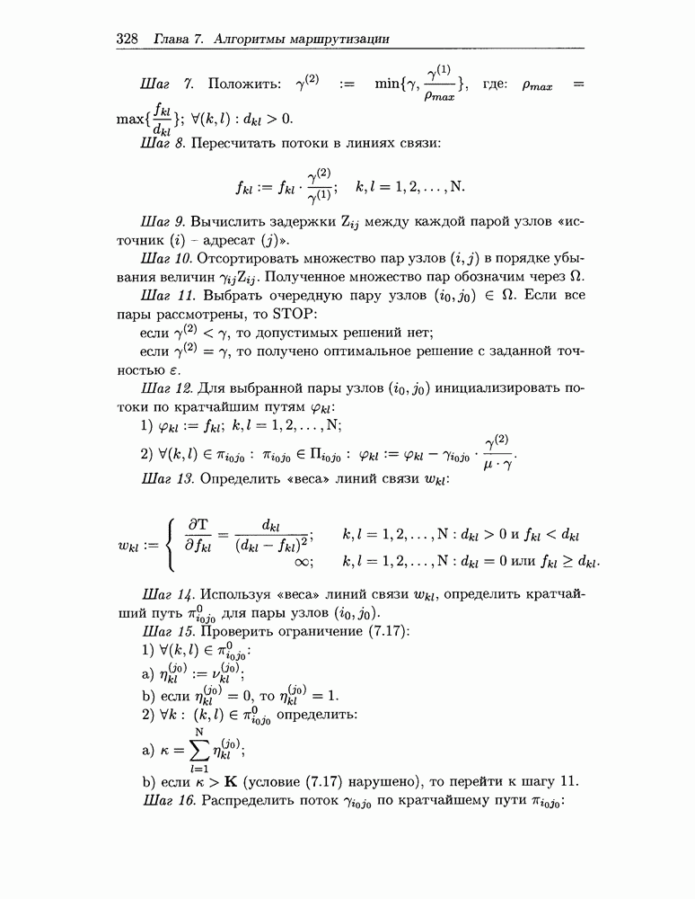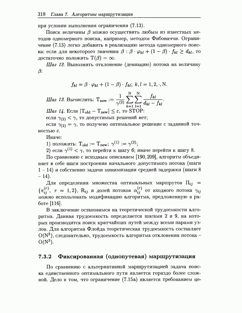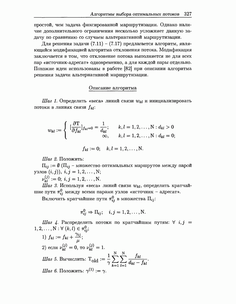 Для решения задачи (7.11) - (7.17) предлагается алгоритм, являющийся модификацией алгоритма отклонения потока. Модификация заключается в том, что отклонение потока выполняется не для всех пар «источник-адресат» одновременно, а для каждой пары отдельно. Похожие идеи использованы в работе [82] при описании алгоритма решения задачи альтернативной маршрутизации.