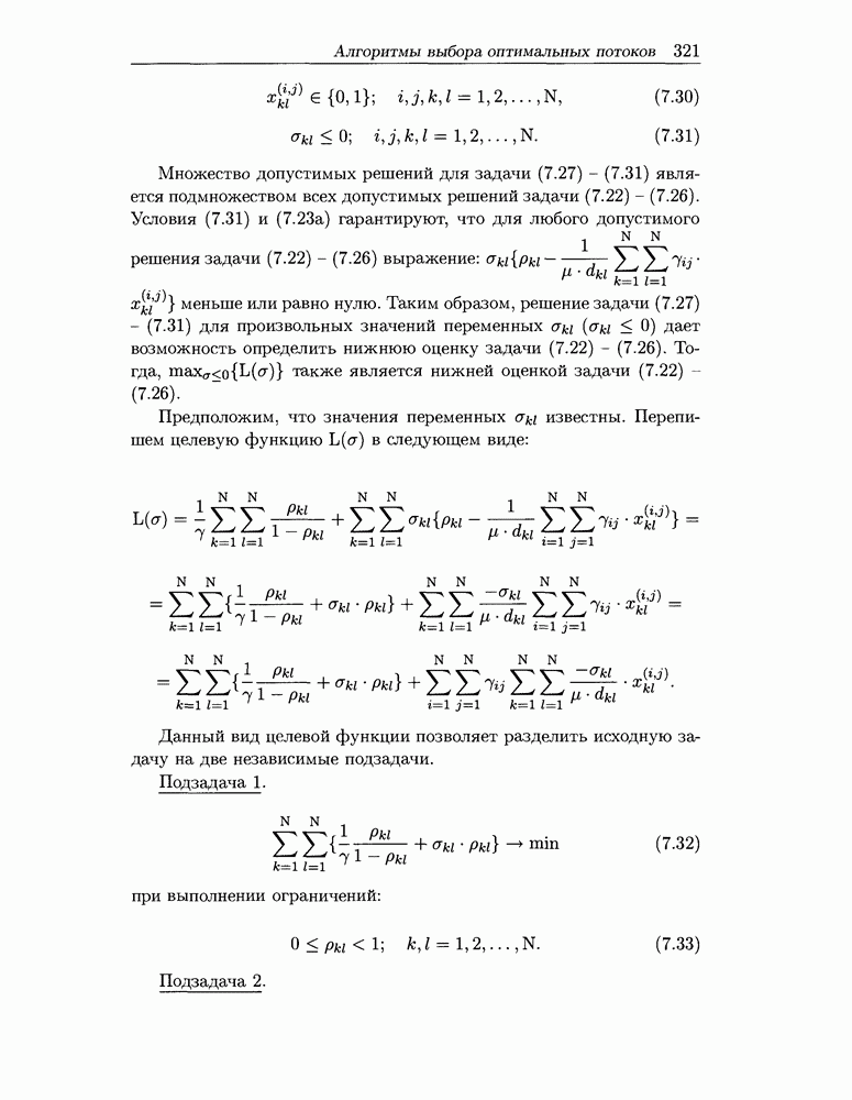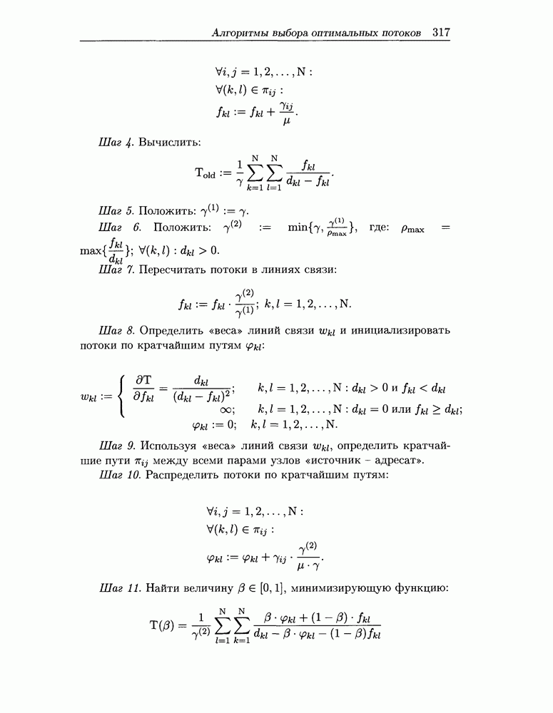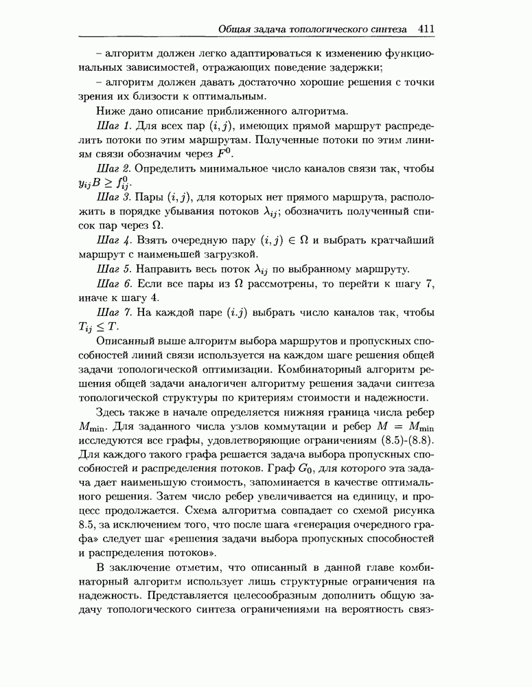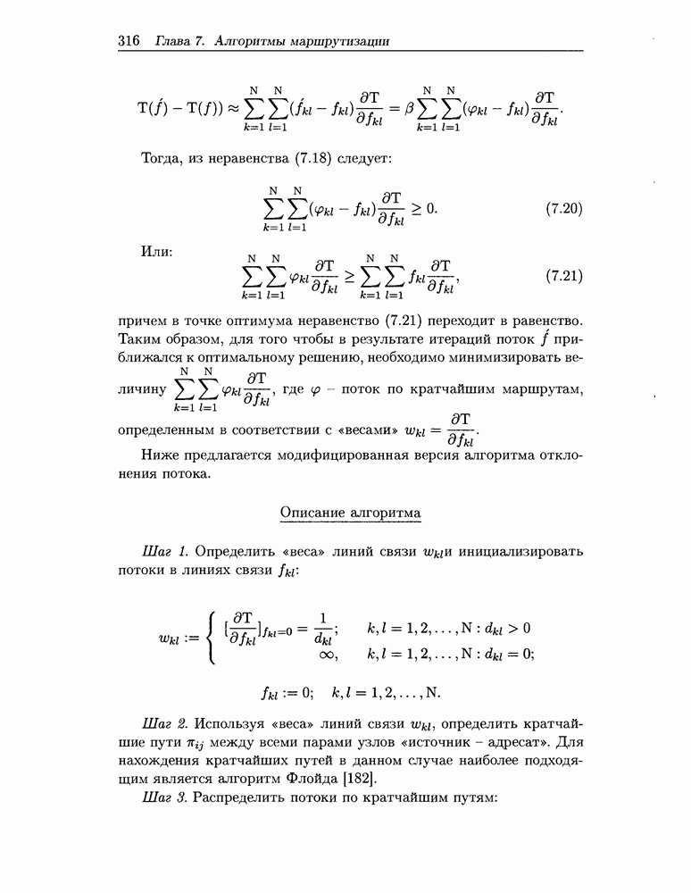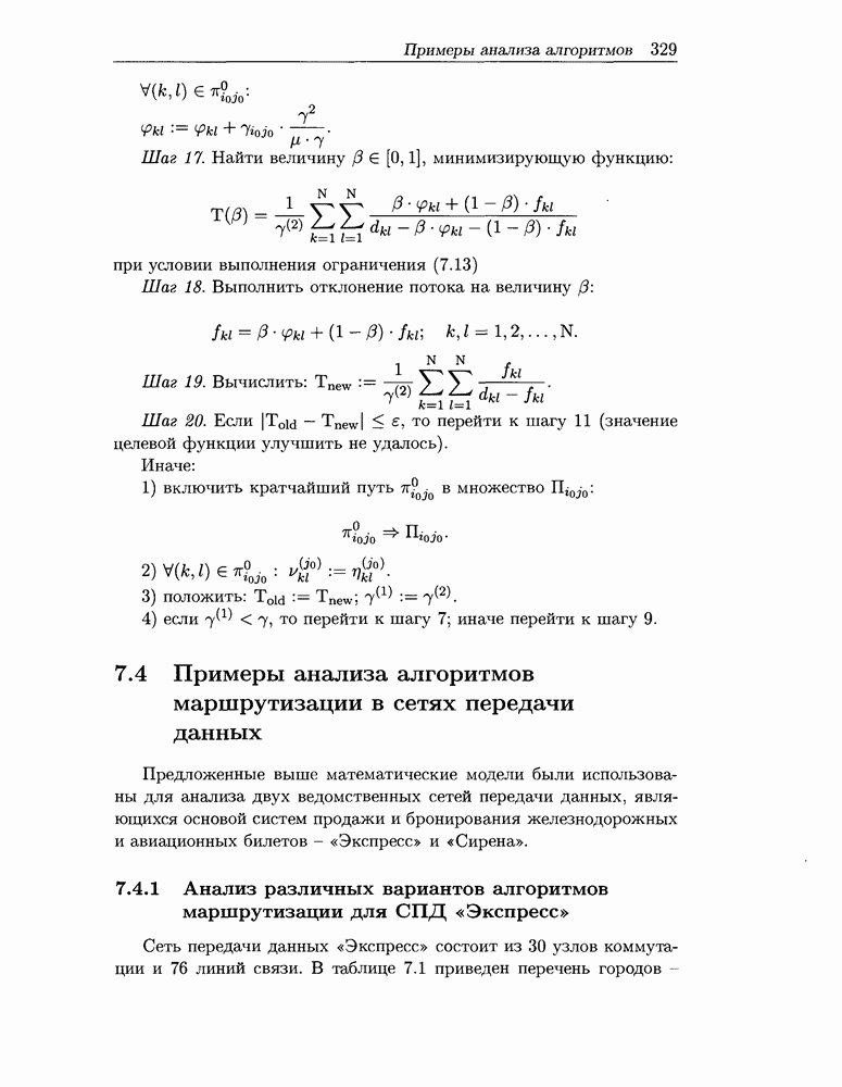 Для решения задачи (7.11) - (7.17) предлагается алгоритм, являющийся модификацией алгоритма отклонения потока. Модификация заключается в том, что отклонение потока выполняется не для всех пар «источник-адресат» одновременно, а для каждой пары отдельно. Похожие идеи использованы в работе [82] при описании алгоритма решения задачи альтернативной маршрутизации.