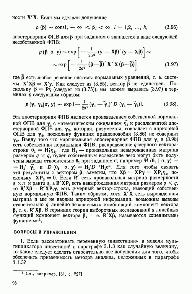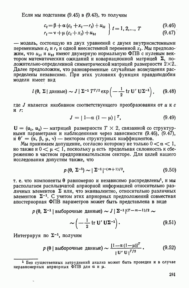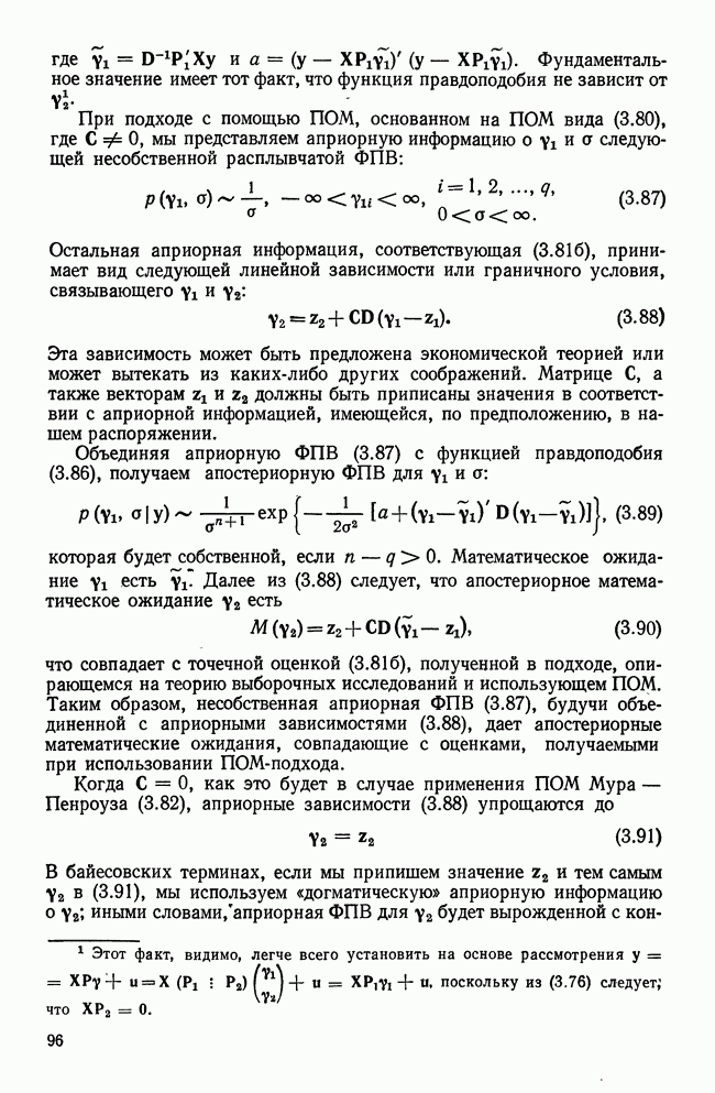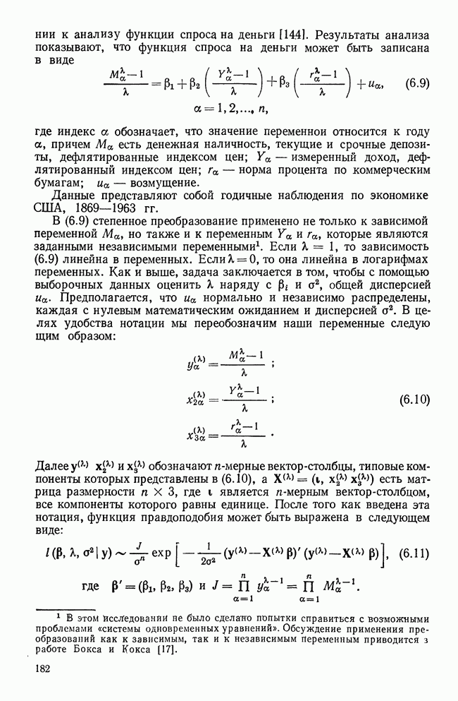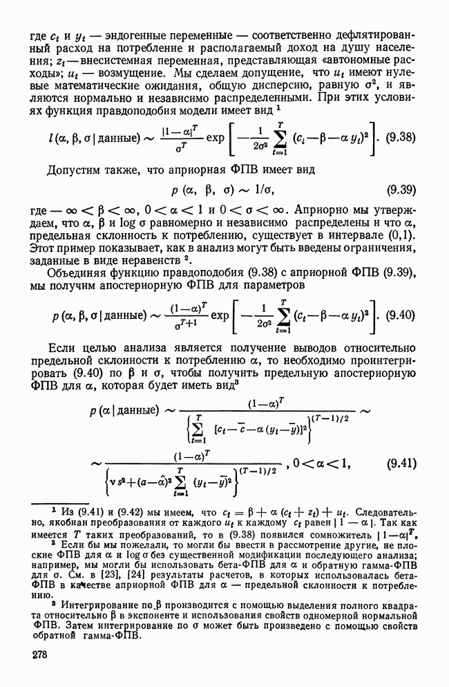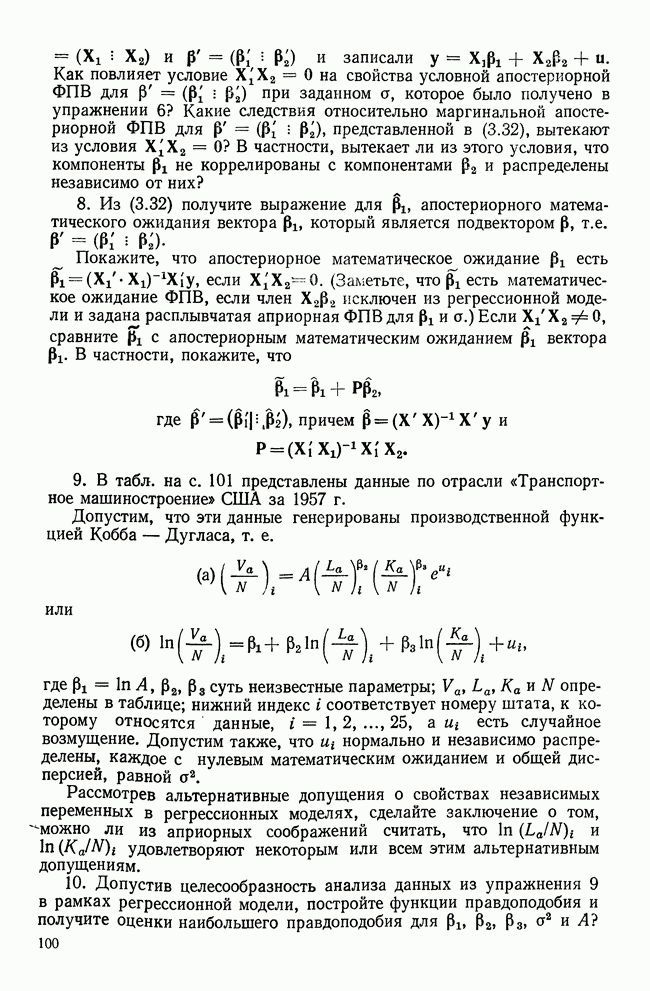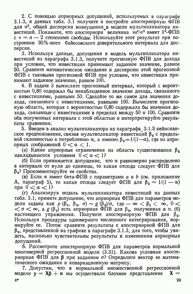 Для иллюстрации приложений представленных выше результатов мы интерпретируем (3.1) так, что эта зависимость связывает доходы (зависимая переменная) с автономными инвестициями (независимая переменная). Тогда параметр (32 определяется как мультипликатор инвестиций. Если наша априорная информация