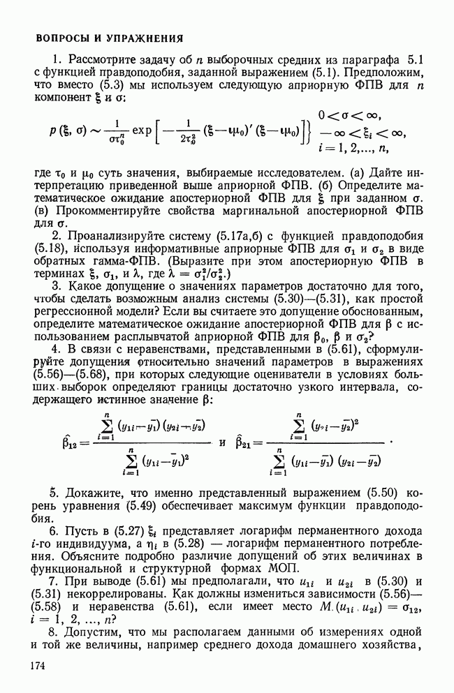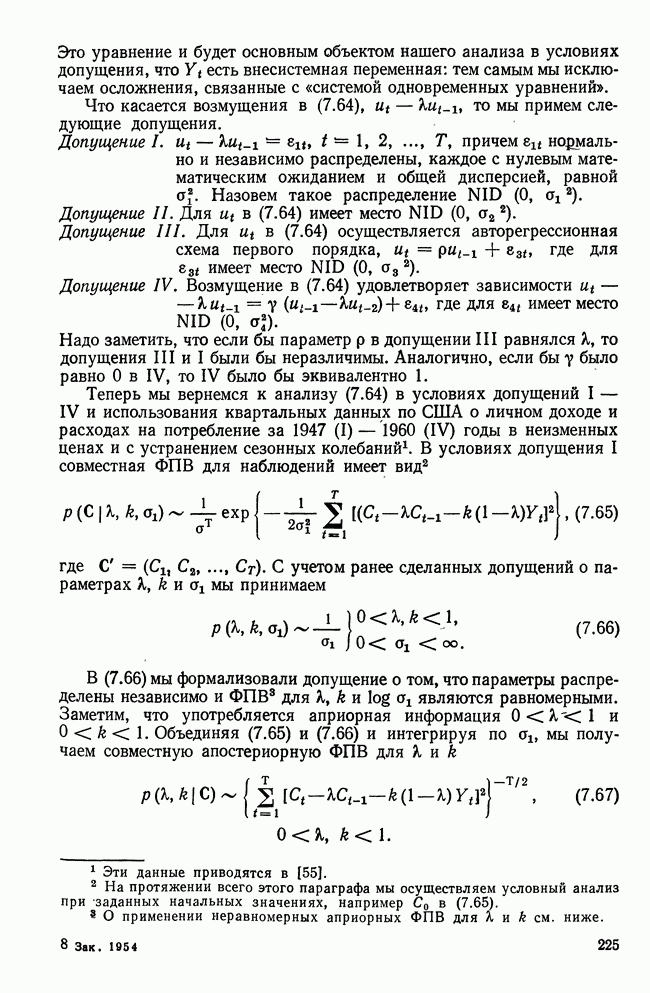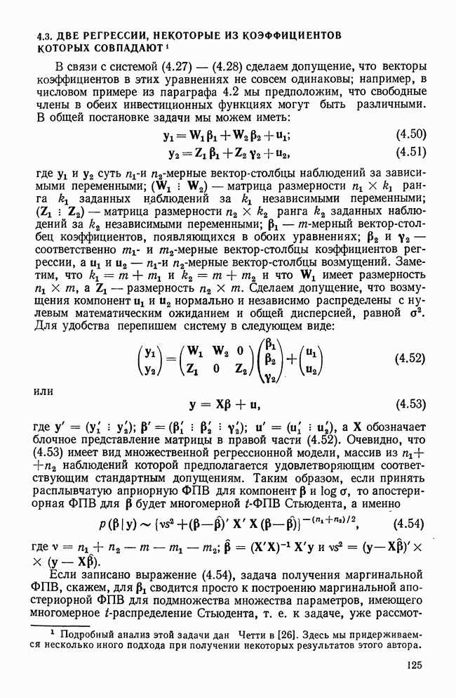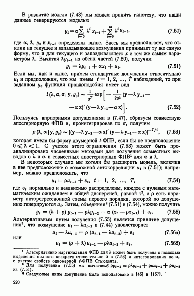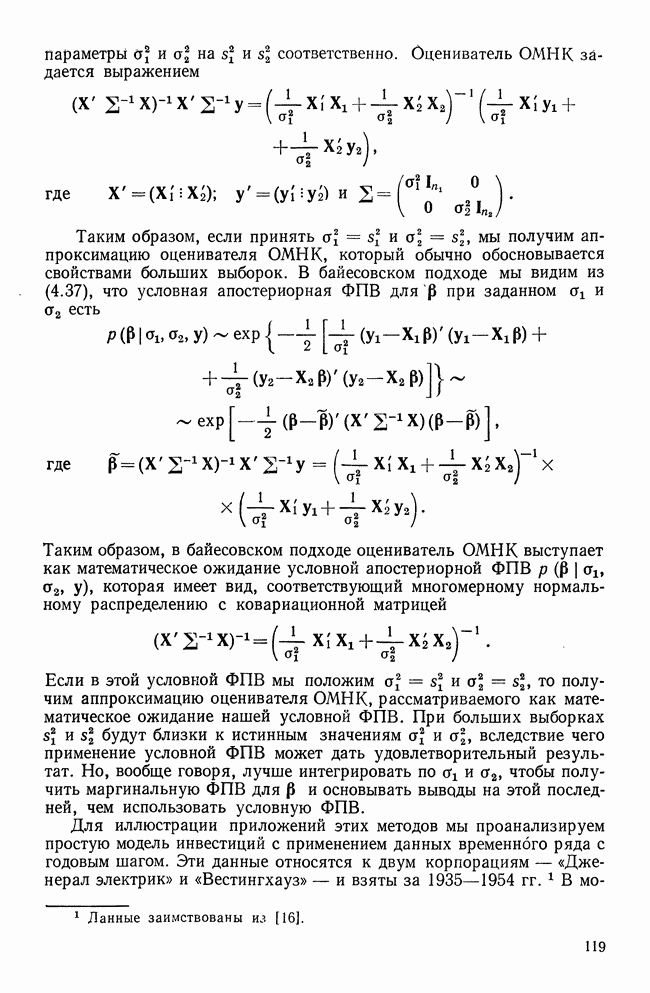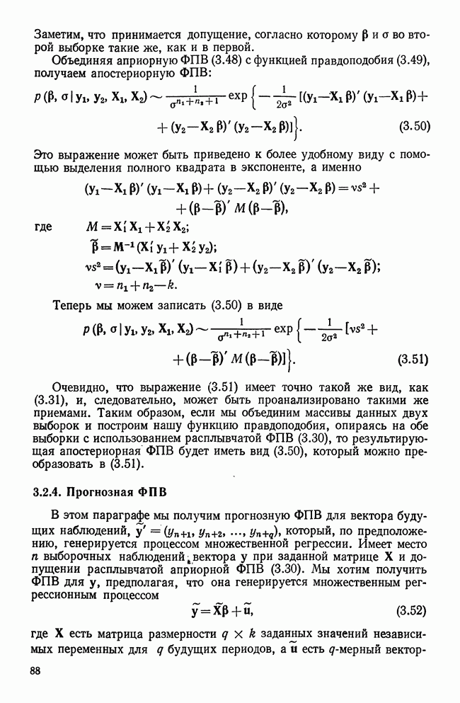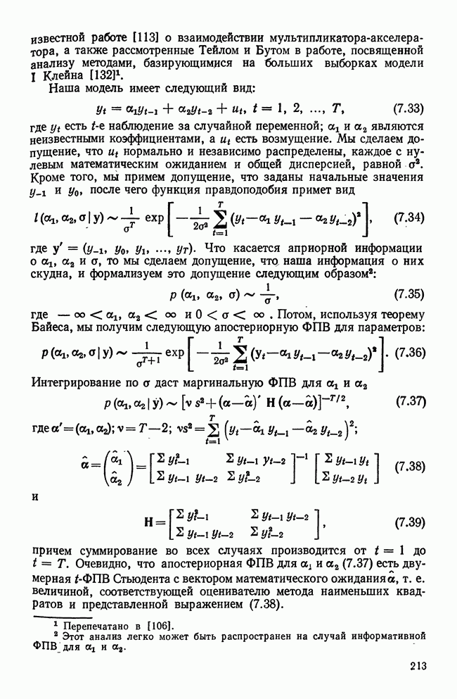 Для иллюстрации приложений представленных выше результатов мы интерпретируем (3.1) так, что эта зависимость связывает доходы (зависимая переменная) с автономными инвестициями (независимая переменная). Тогда параметр (32 определяется как мультипликатор инвестиций. Если наша априорная информация