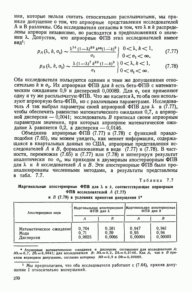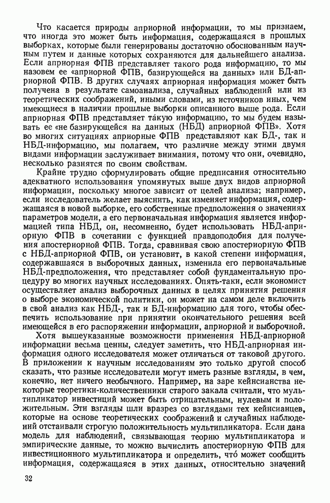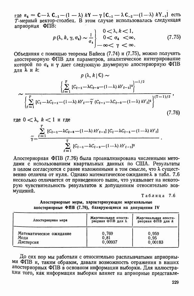 Таким образом, несмотря на то, что наши априорные представления не исключали отрицательных значений мультипликатора, на основе выборочных данных была получена апостериорная ФПВ, которая указывает на то, что отрицательные значения мультипликатора маловероятны.