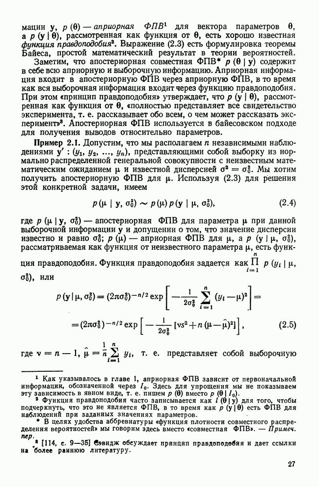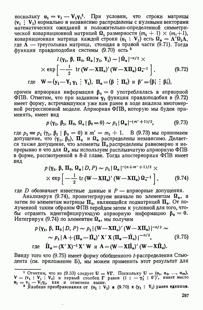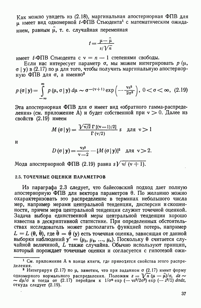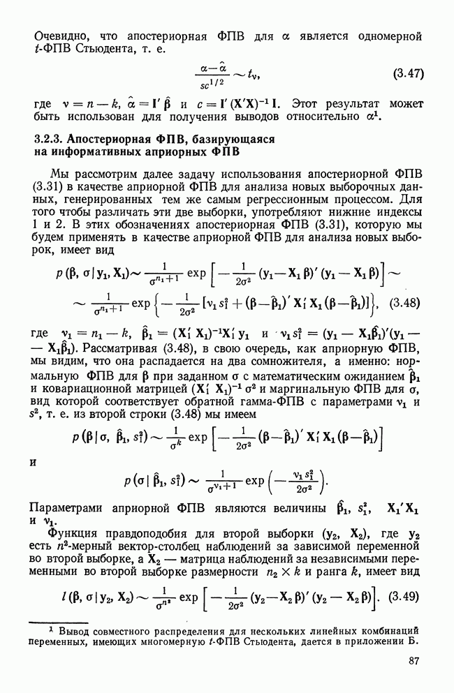 -ФПВ Стьюдента, мы получаем апостериорные ФПВ для