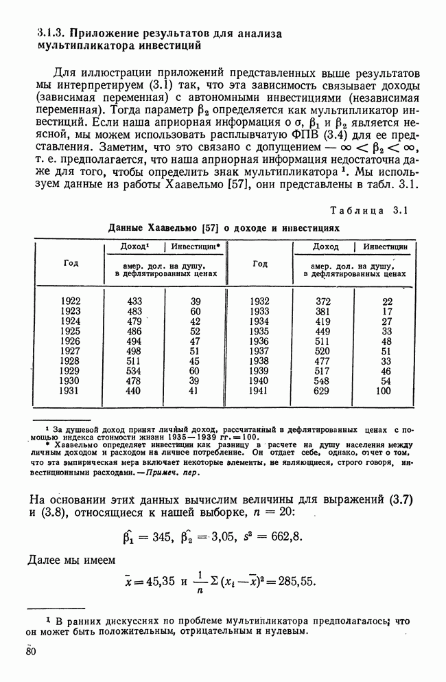 Таблица 3.1. Данные Хаавельмо [57] о доходе и инвестициях