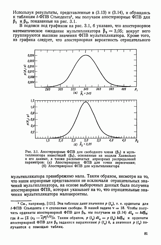В подписи под графиком на рис. 3.1, б указано, что апостериорное математическое ожидание мультипликатора