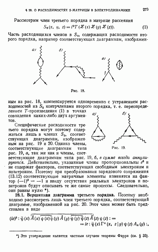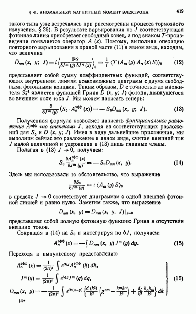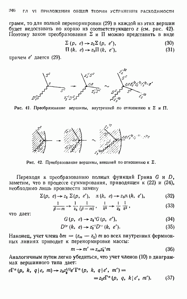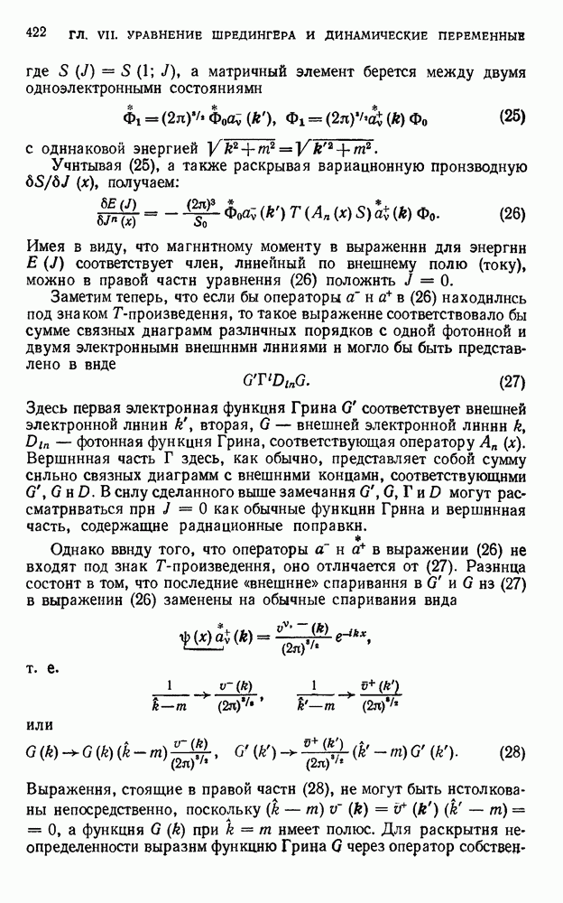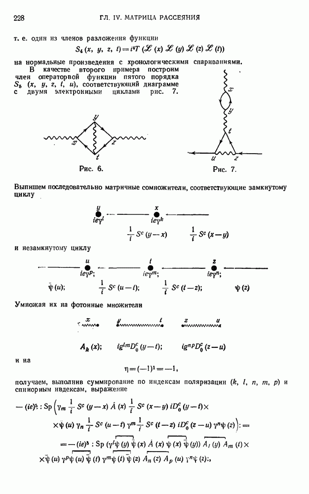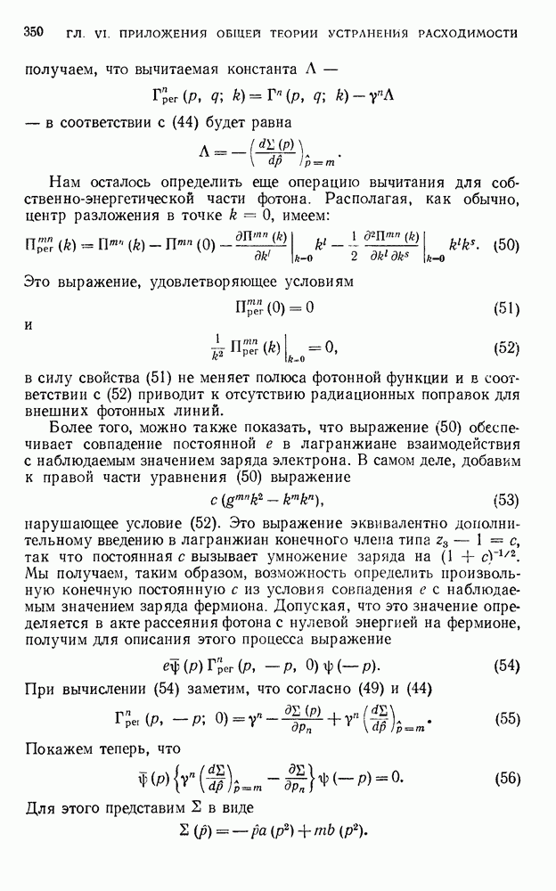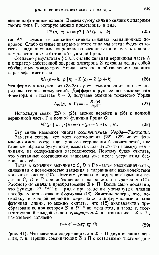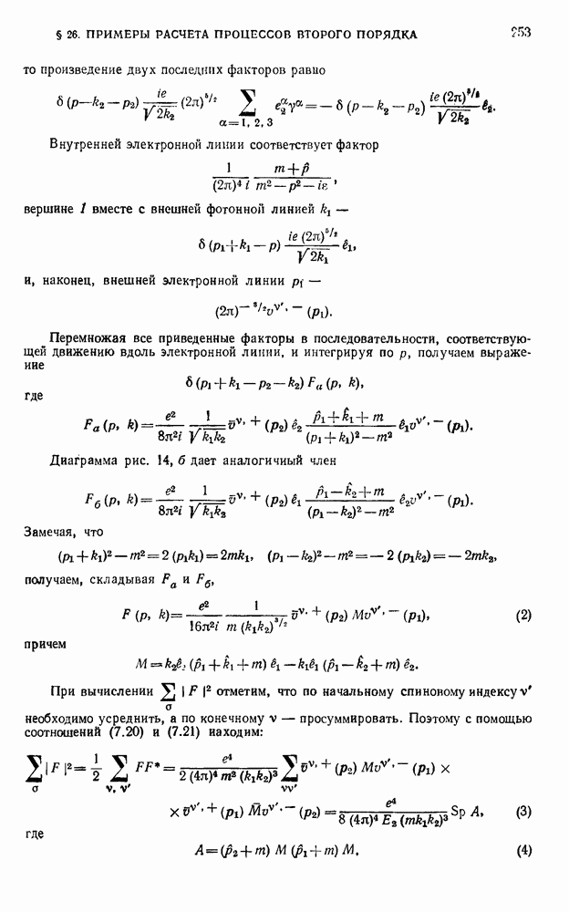 расходится. Эта расходимость есть проявление инфракрасной катастрофы и связана с незаконностью разложения по числу испущенных фотонов при рассмотрении процессов, в которых играют роль фотоны с малыми импульсами. Природа инфракрасных расходимостей была в свое время исследована Блохом и Нордсиком (1937). Отсылая читателя за более детальным анализом указанной трудности к разделу 4 настоящего параграфа (см. также гл. IX, § 50.3), мы ограничимся здесь лишь указанием, что полные вероятности переходов в каждом порядке по а свободны от инфракрасных расходимостей, а фактическая регуляризация промежуточных выражений осуществляется обычно введением фиктивной малой массы фотонов