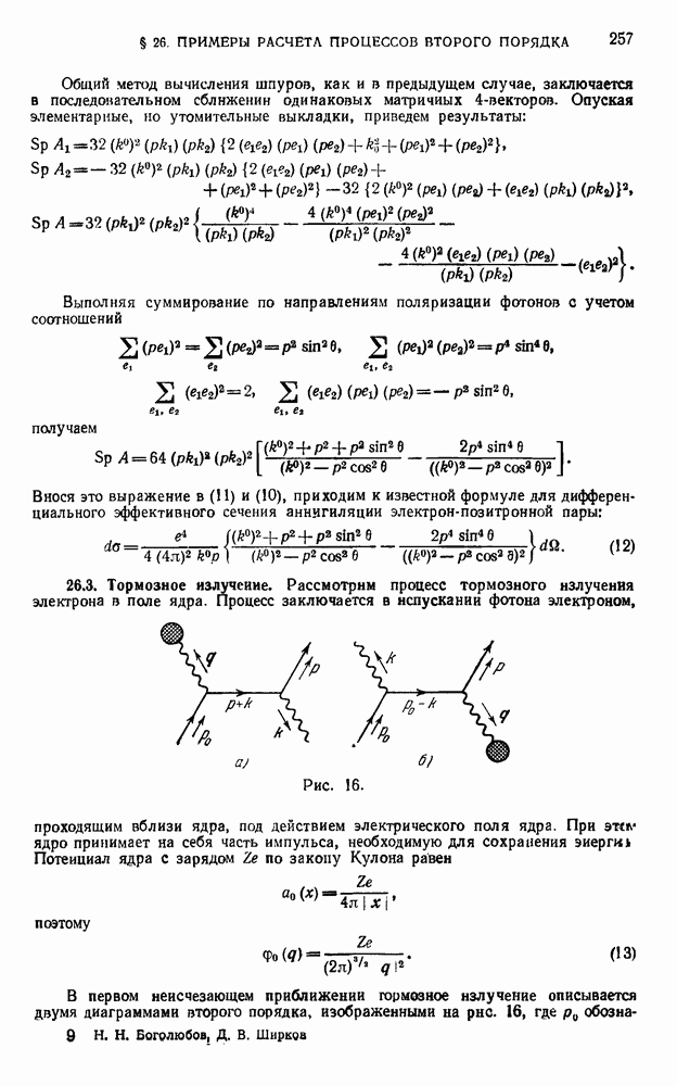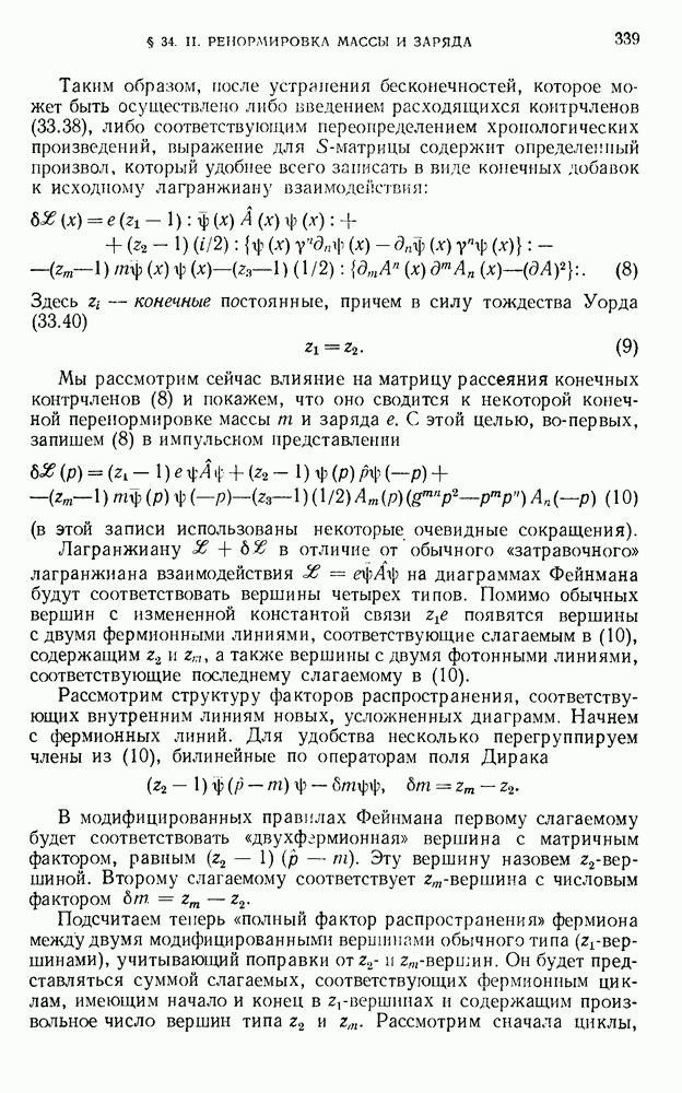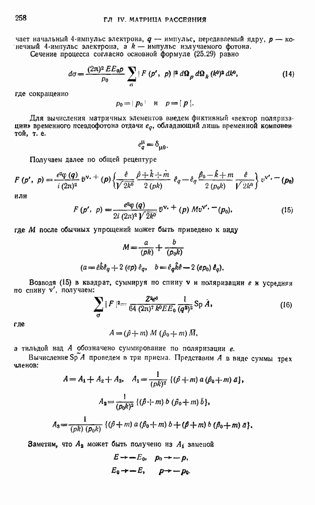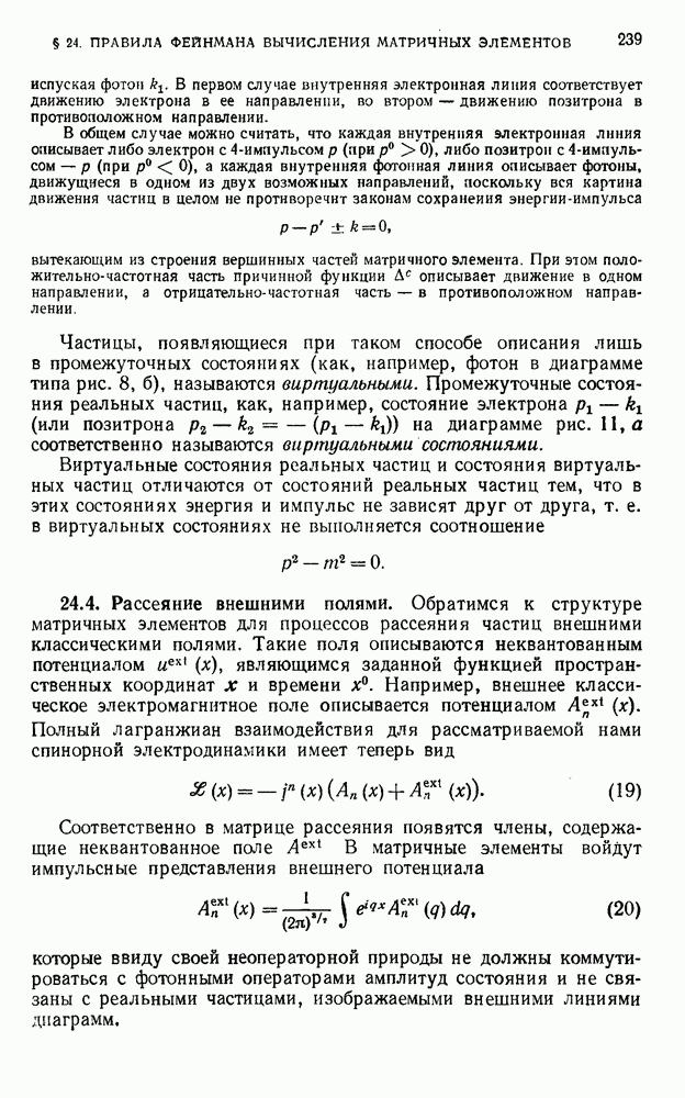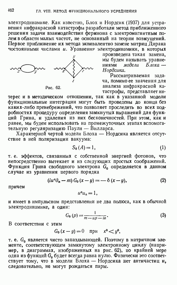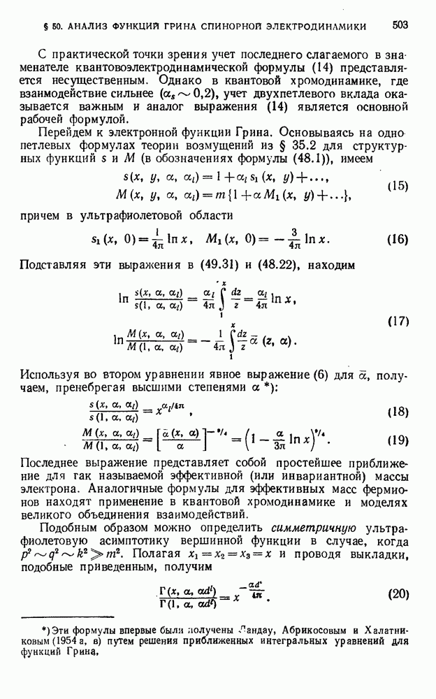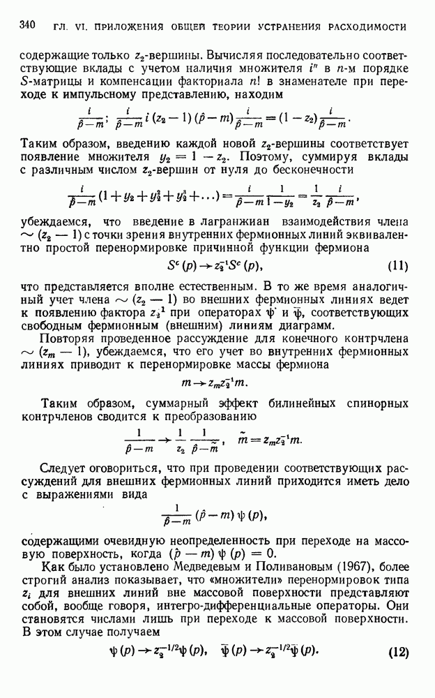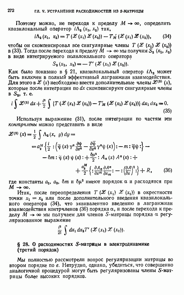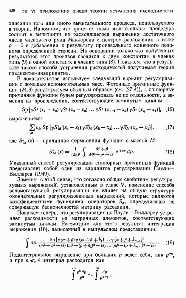 расходится. Эта расходимость есть проявление инфракрасной катастрофы и связана с незаконностью разложения по числу испущенных фотонов при рассмотрении процессов, в которых играют роль фотоны с малыми импульсами. Природа инфракрасных расходимостей была в свое время исследована Блохом и Нордсиком (1937). Отсылая читателя за более детальным анализом указанной трудности к разделу 4 настоящего параграфа (см. также гл. IX, § 50.3), мы ограничимся здесь лишь указанием, что полные вероятности переходов в каждом порядке по а свободны от инфракрасных расходимостей, а фактическая регуляризация промежуточных выражений осуществляется обычно введением фиктивной малой массы фотонов