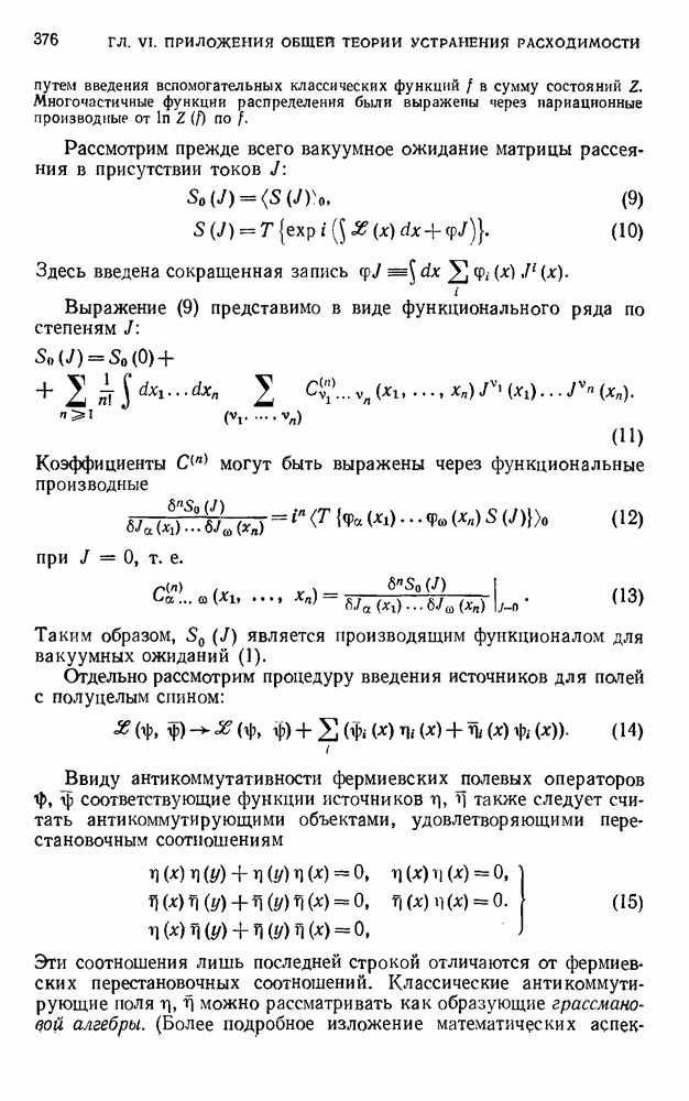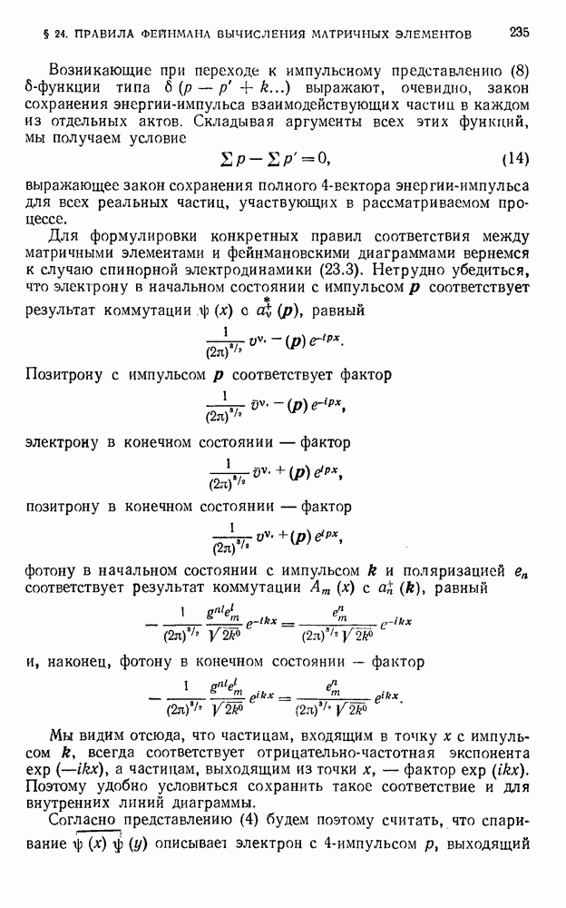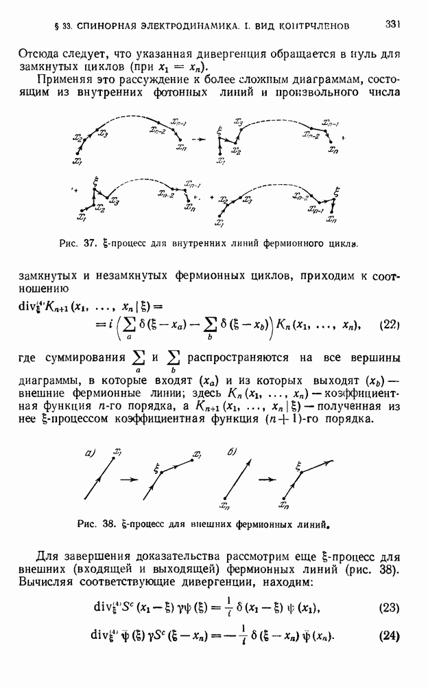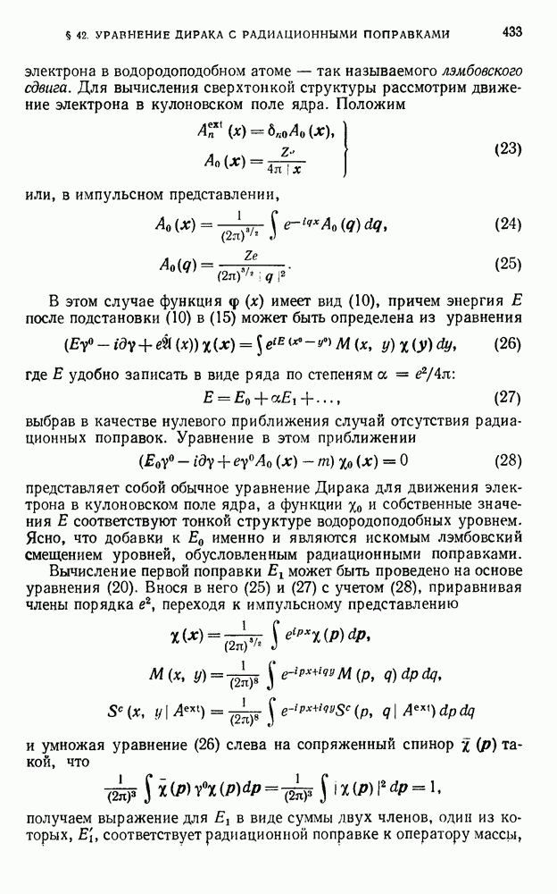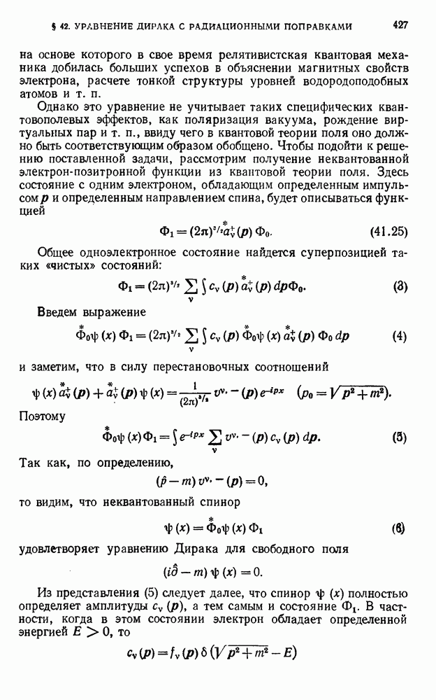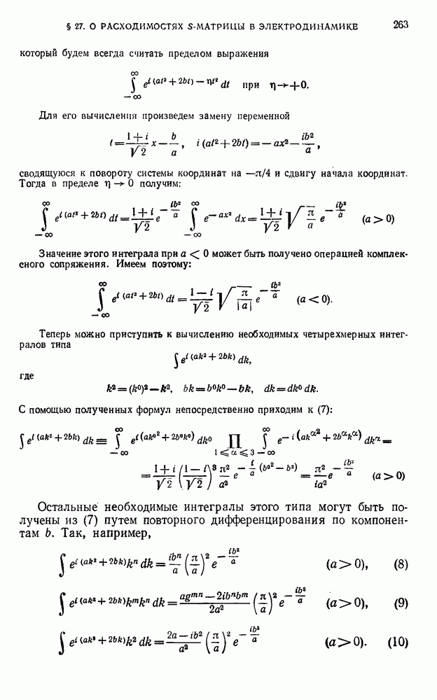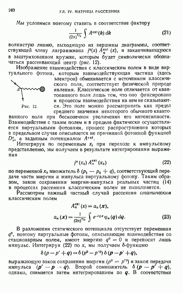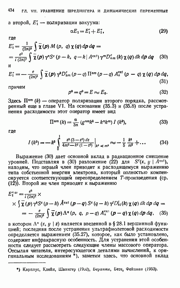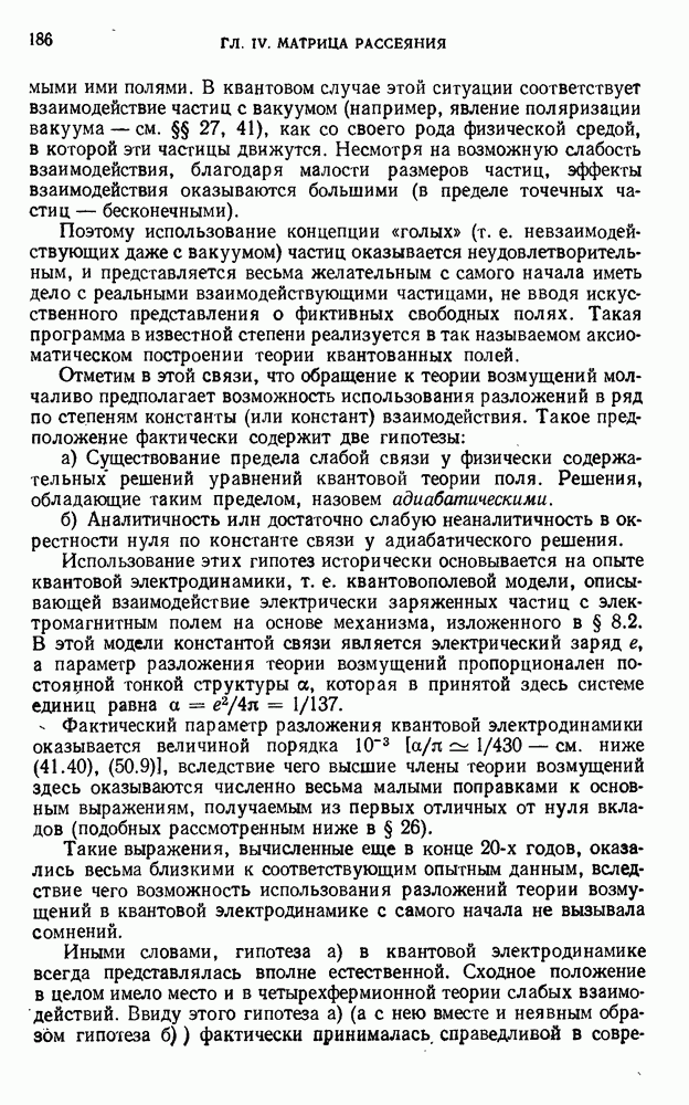 расходится. Эта расходимость есть проявление инфракрасной катастрофы и связана с незаконностью разложения по числу испущенных фотонов при рассмотрении процессов, в которых играют роль фотоны с малыми импульсами. Природа инфракрасных расходимостей была в свое время исследована Блохом и Нордсиком (1937). Отсылая читателя за более детальным анализом указанной трудности к разделу 4 настоящего параграфа (см. также гл. IX, § 50.3), мы ограничимся здесь лишь указанием, что полные вероятности переходов в каждом порядке по а свободны от инфракрасных расходимостей, а фактическая регуляризация промежуточных выражений осуществляется обычно введением фиктивной малой массы фотонов