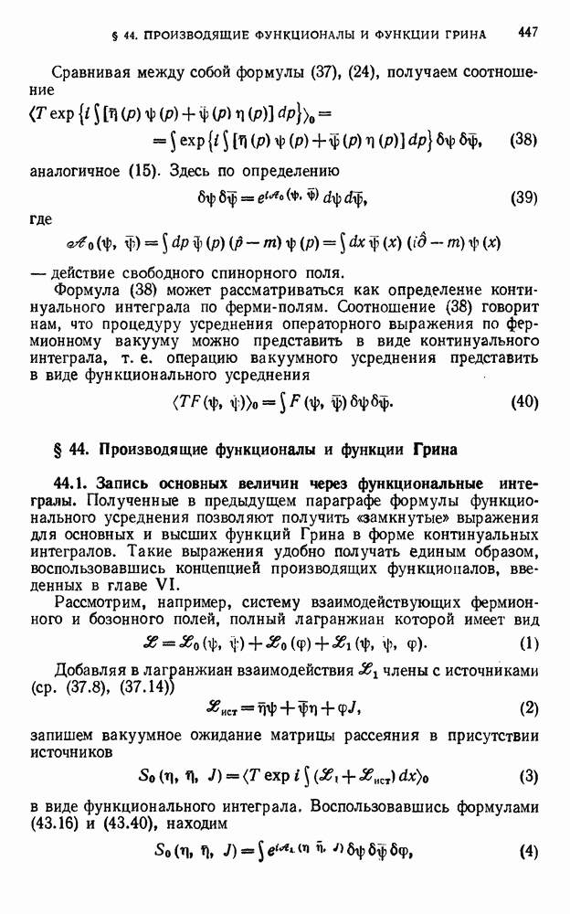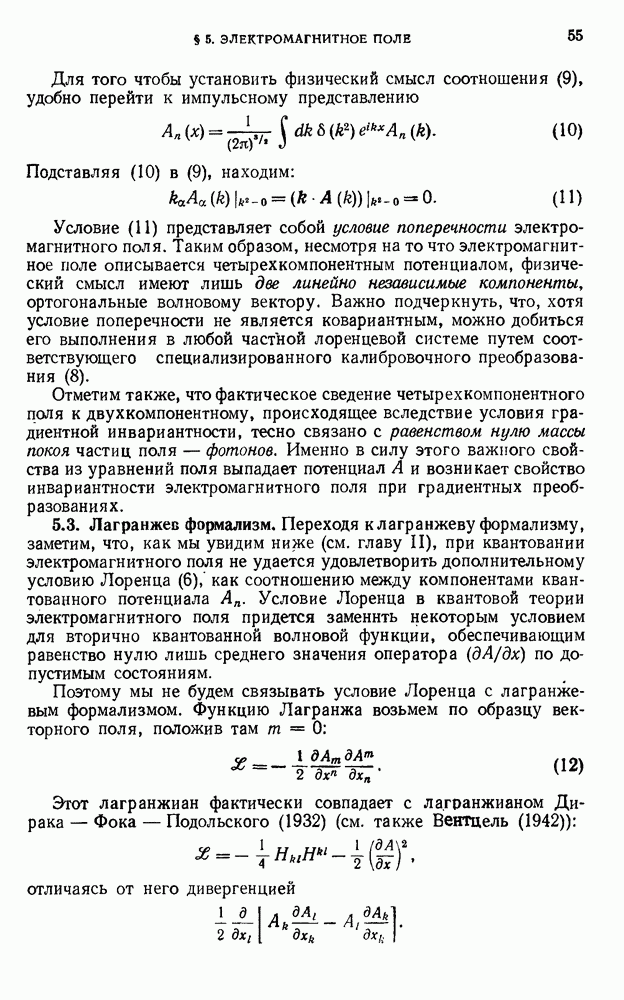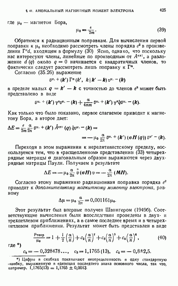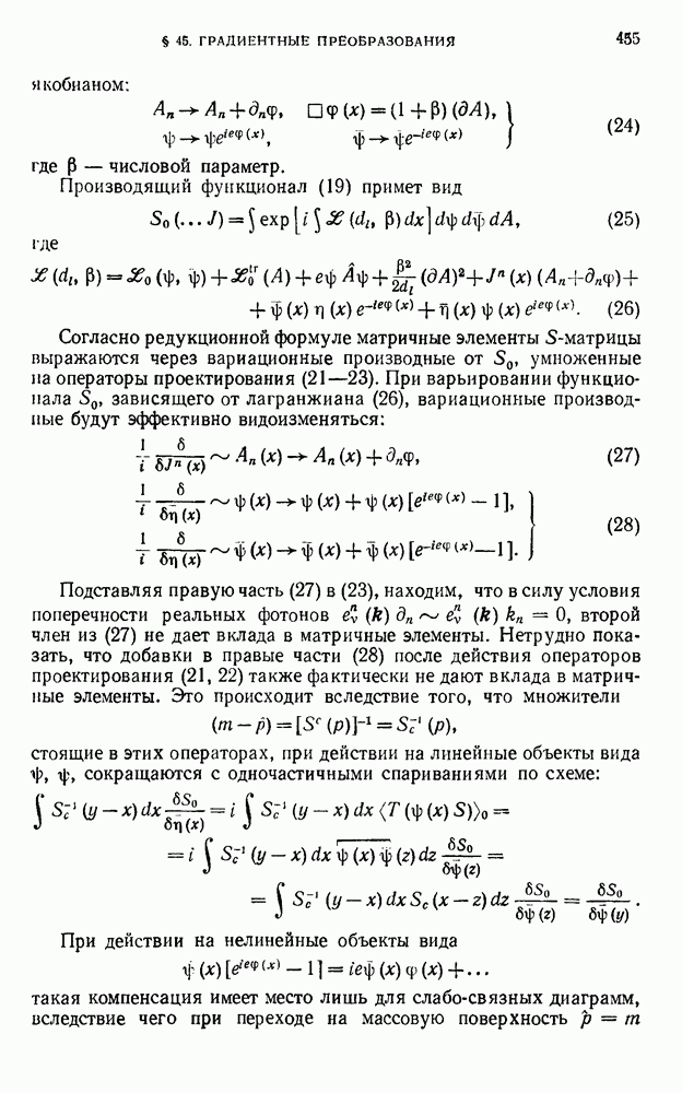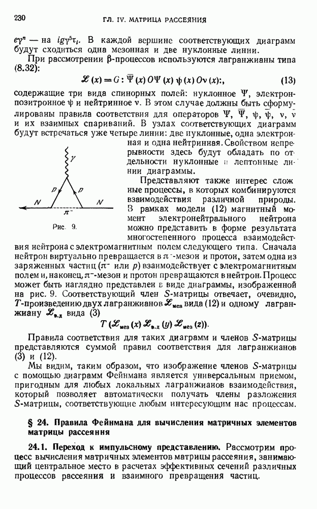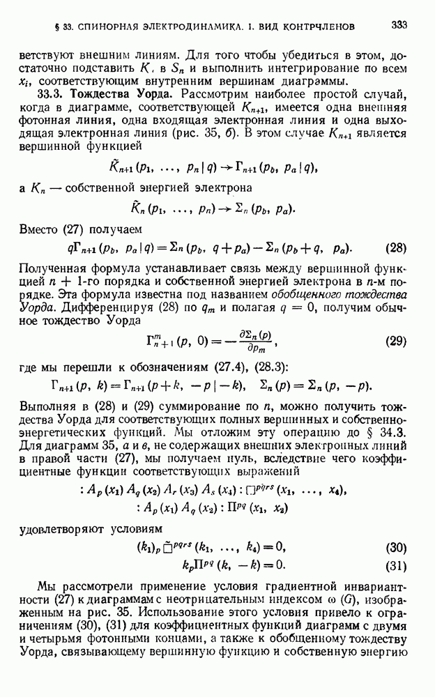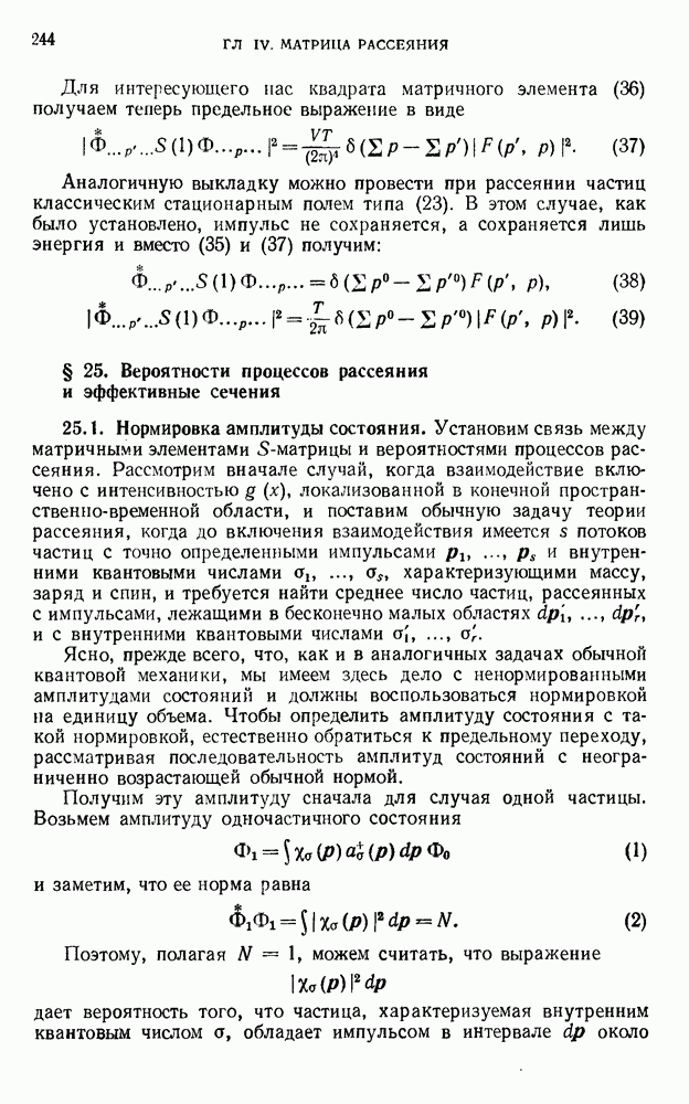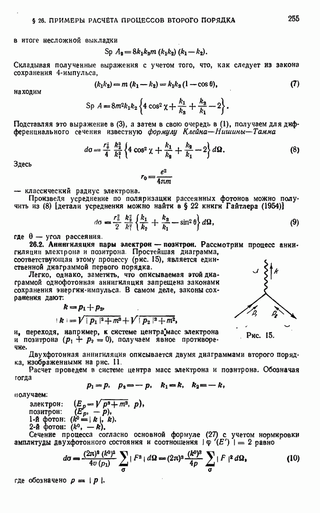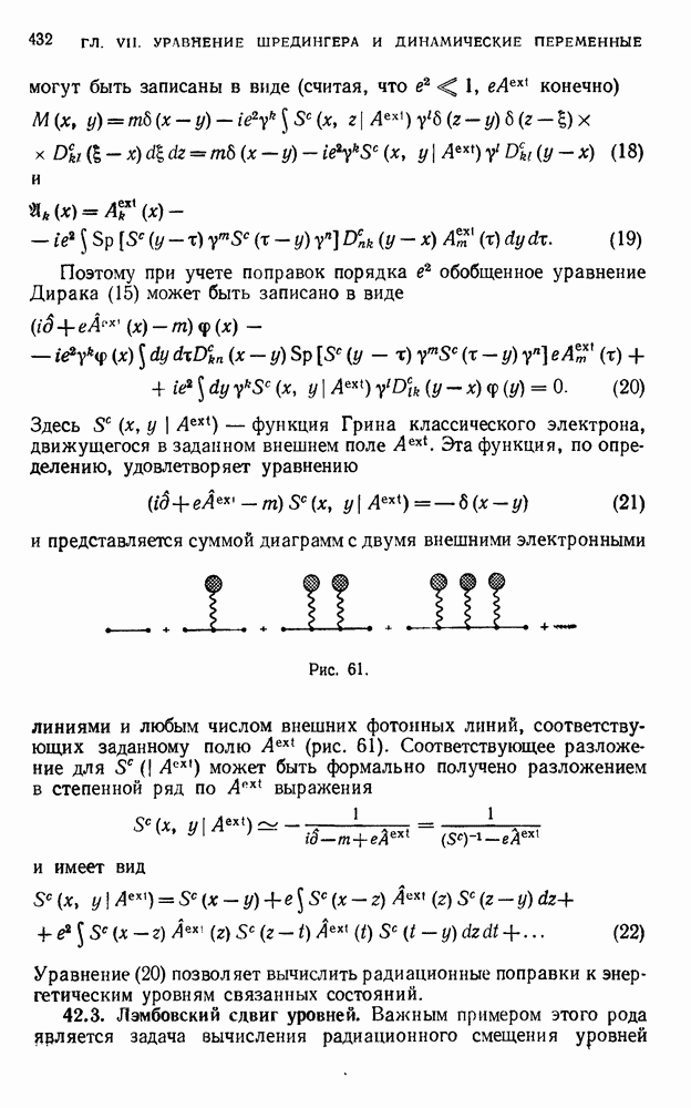 расходится. Эта расходимость есть проявление инфракрасной катастрофы и связана с незаконностью разложения по числу испущенных фотонов при рассмотрении процессов, в которых играют роль фотоны с малыми импульсами. Природа инфракрасных расходимостей была в свое время исследована Блохом и Нордсиком (1937). Отсылая читателя за более детальным анализом указанной трудности к разделу 4 настоящего параграфа (см. также гл. IX, § 50.3), мы ограничимся здесь лишь указанием, что полные вероятности переходов в каждом порядке по а свободны от инфракрасных расходимостей, а фактическая регуляризация промежуточных выражений осуществляется обычно введением фиктивной малой массы фотонов