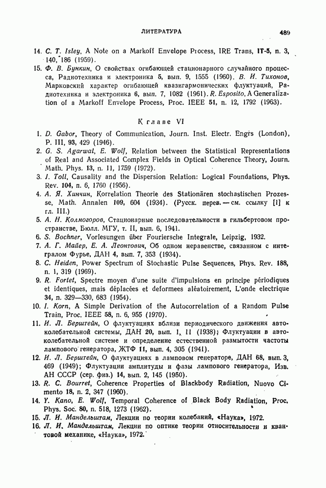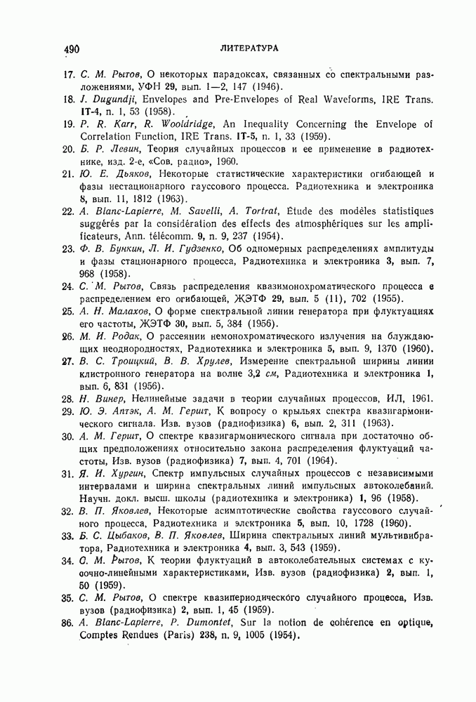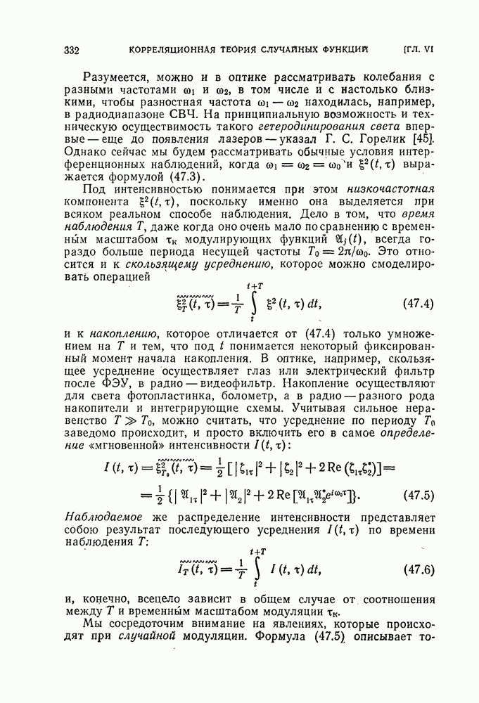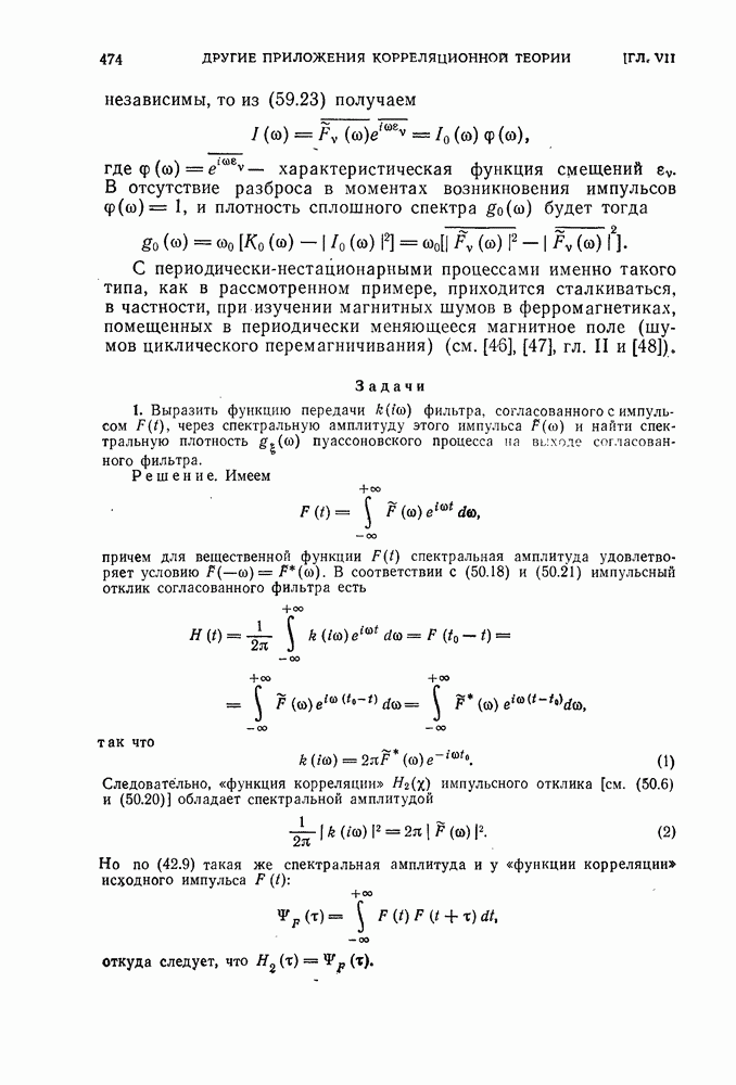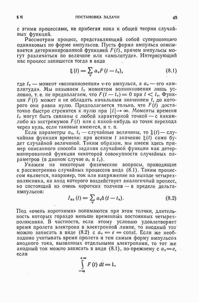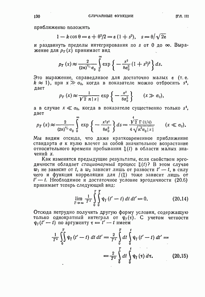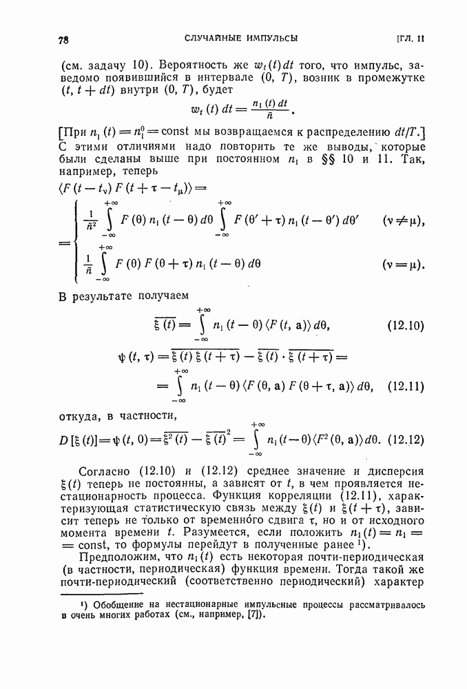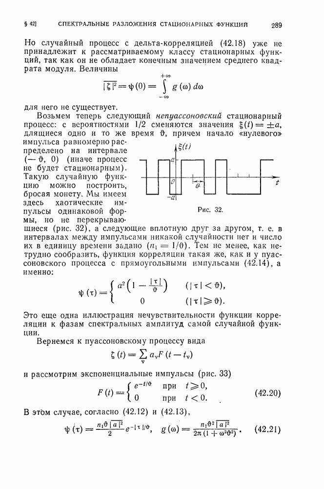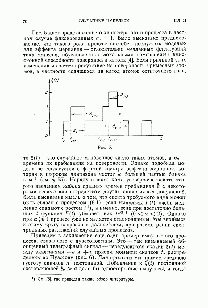 значений самой функции), получить статистику «по оси t». Задачи такого типа принадлежат к числу наиболее интересных в теории случайных процессов. К ним относятся и вопросы, касающиеся статистики пересечений заданного уровня или «выбросов» случайных процессов [23].
