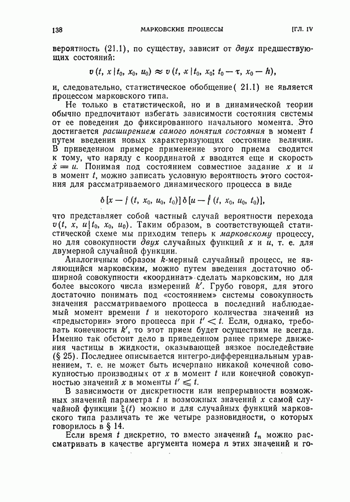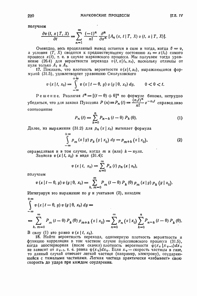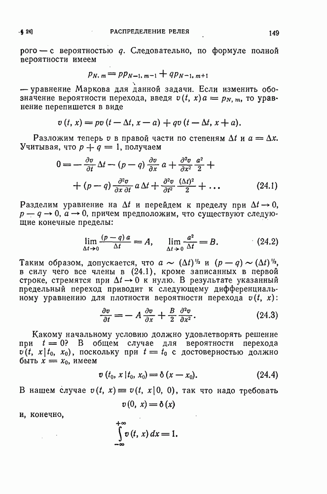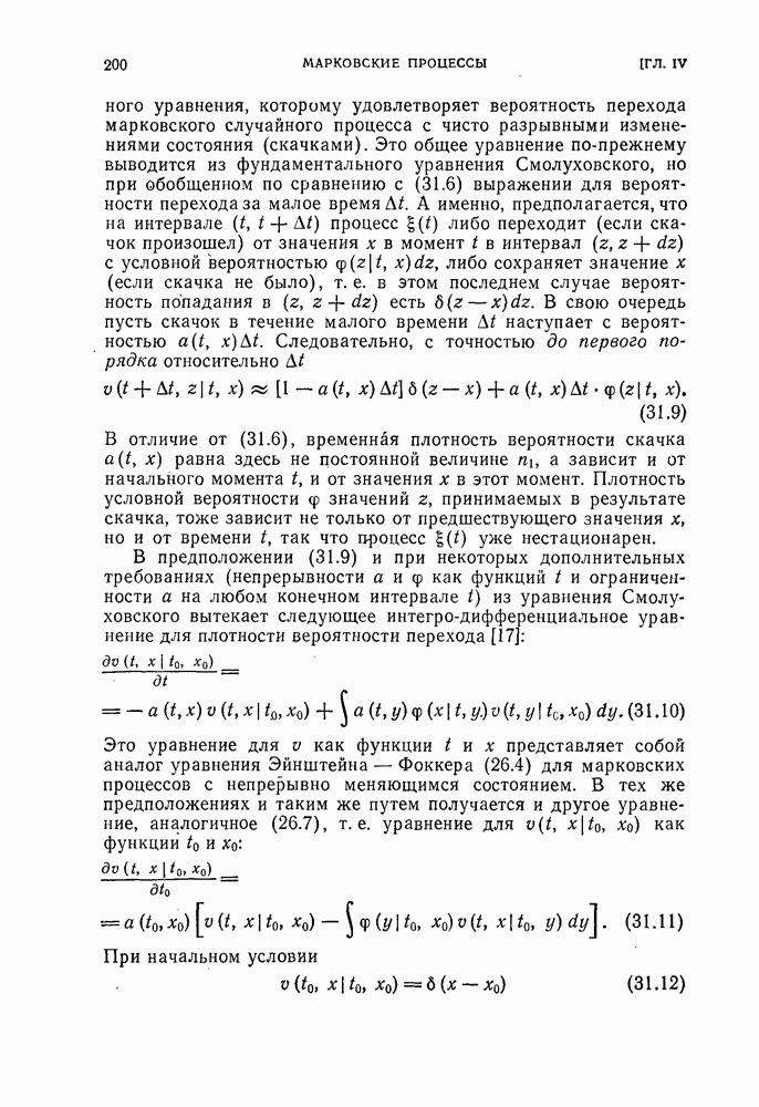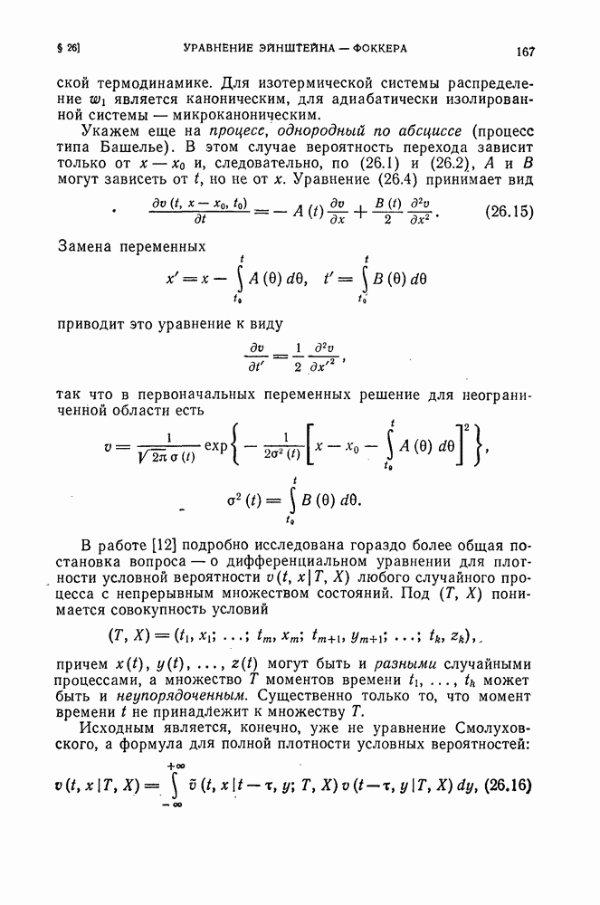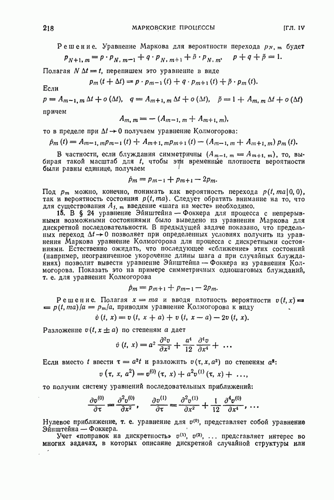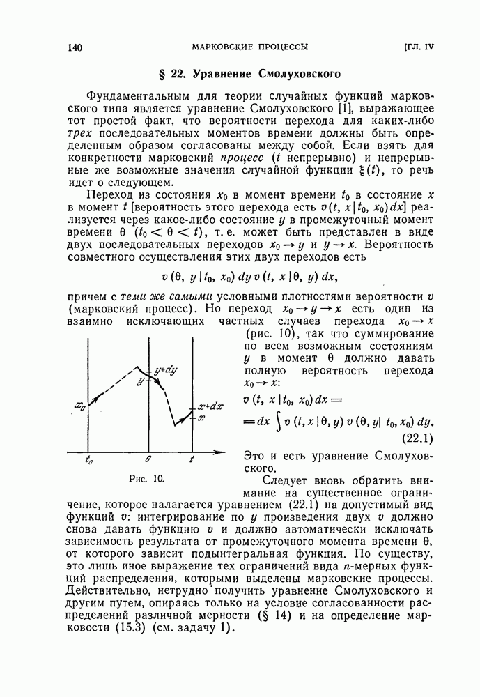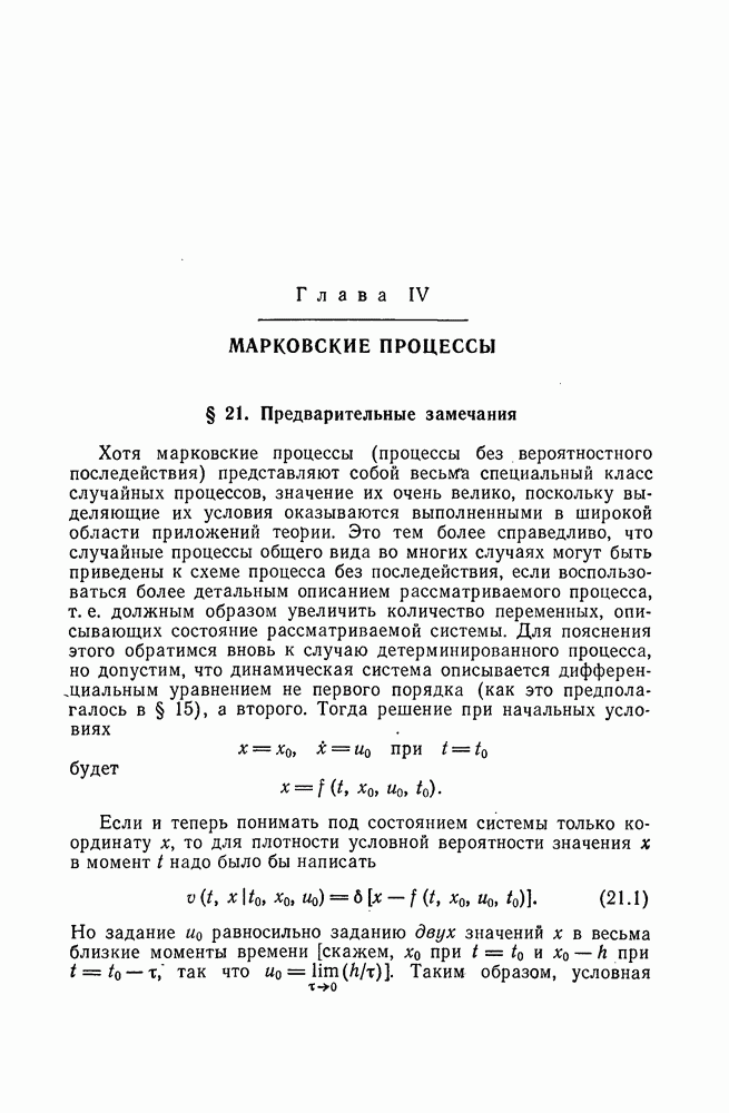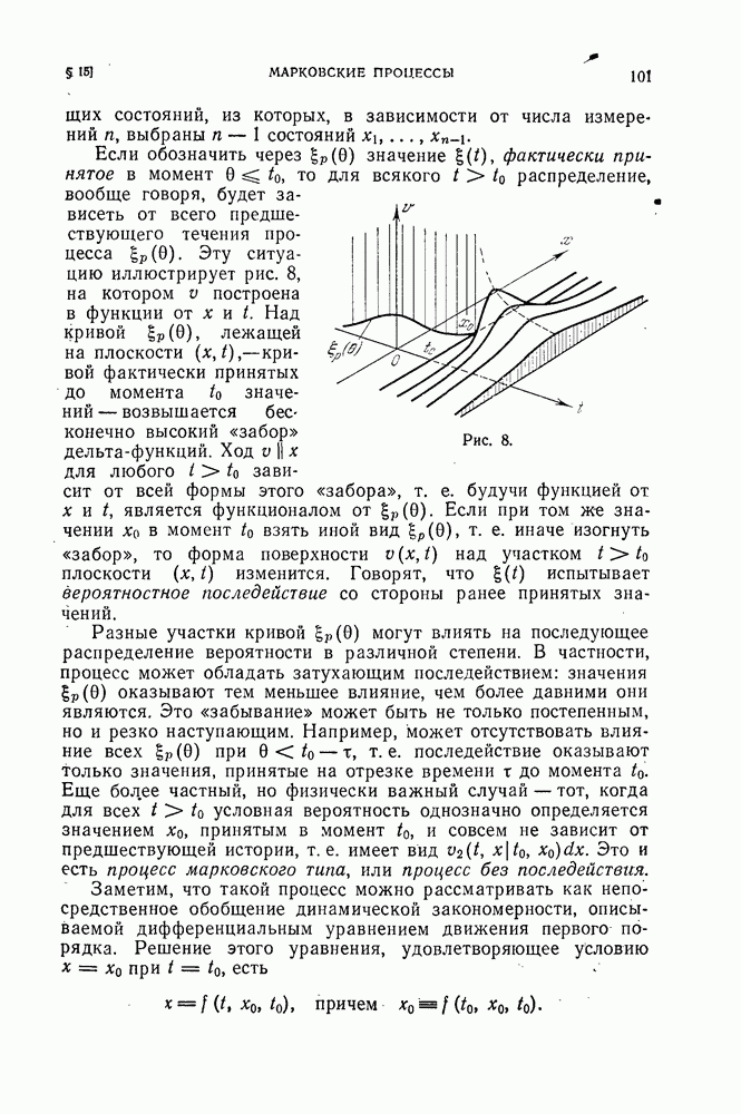 Следуя [24], мы рассмотрим одномерный марковский процесс, причем однородный по времени, т. е. с плотностью вероятности перехода