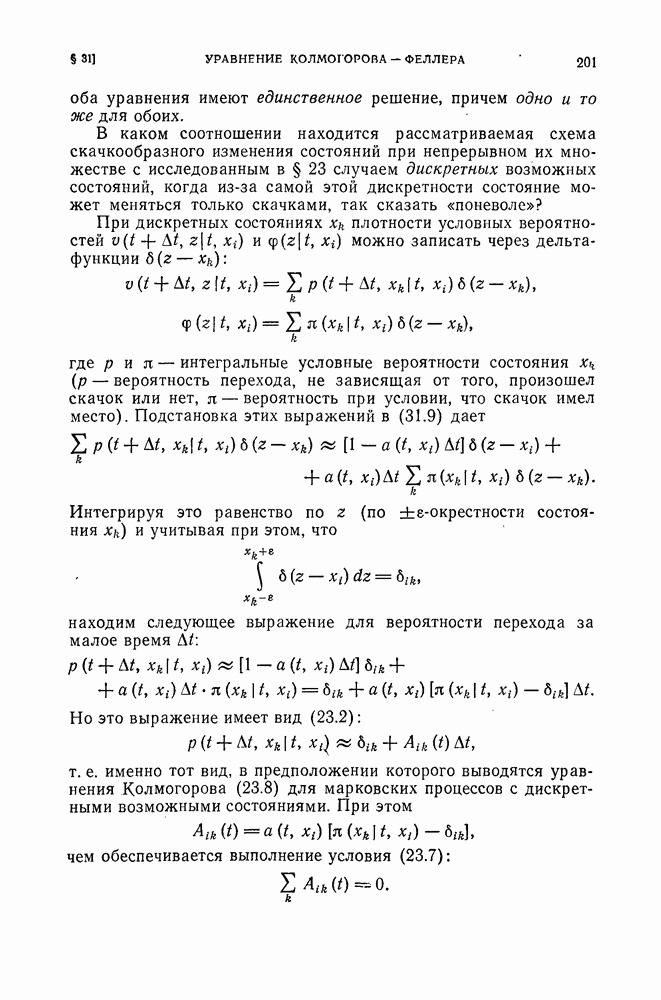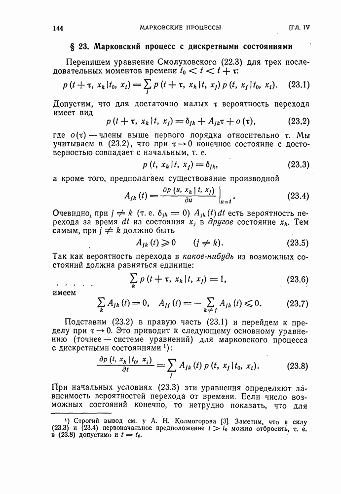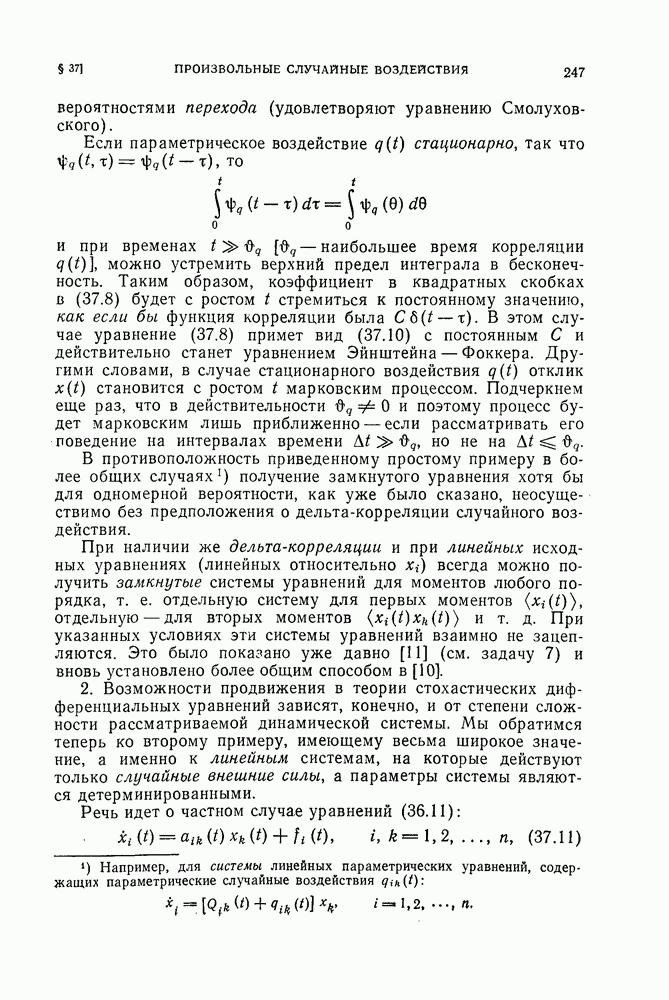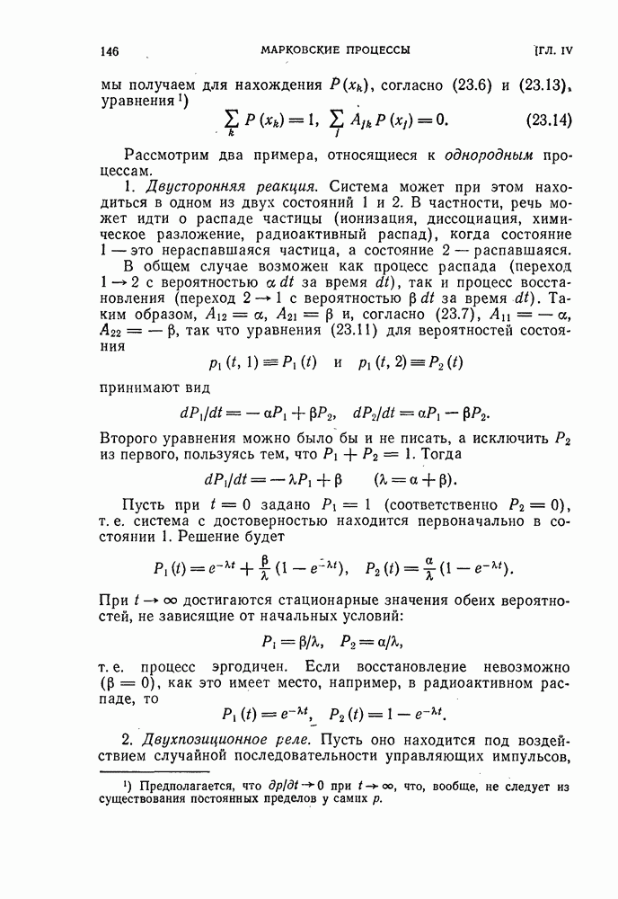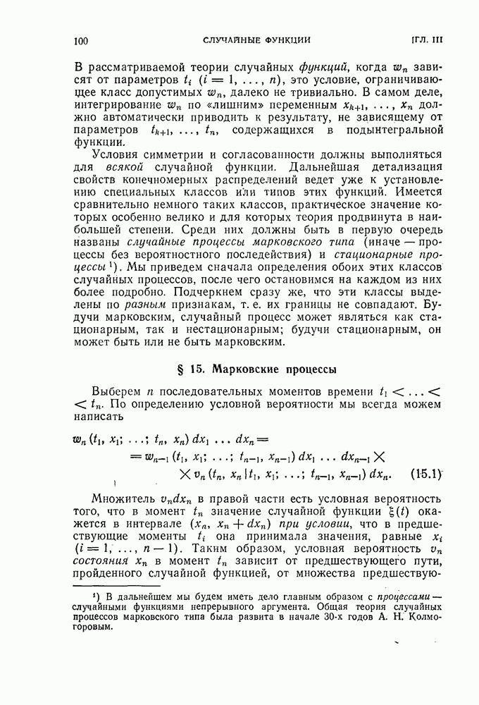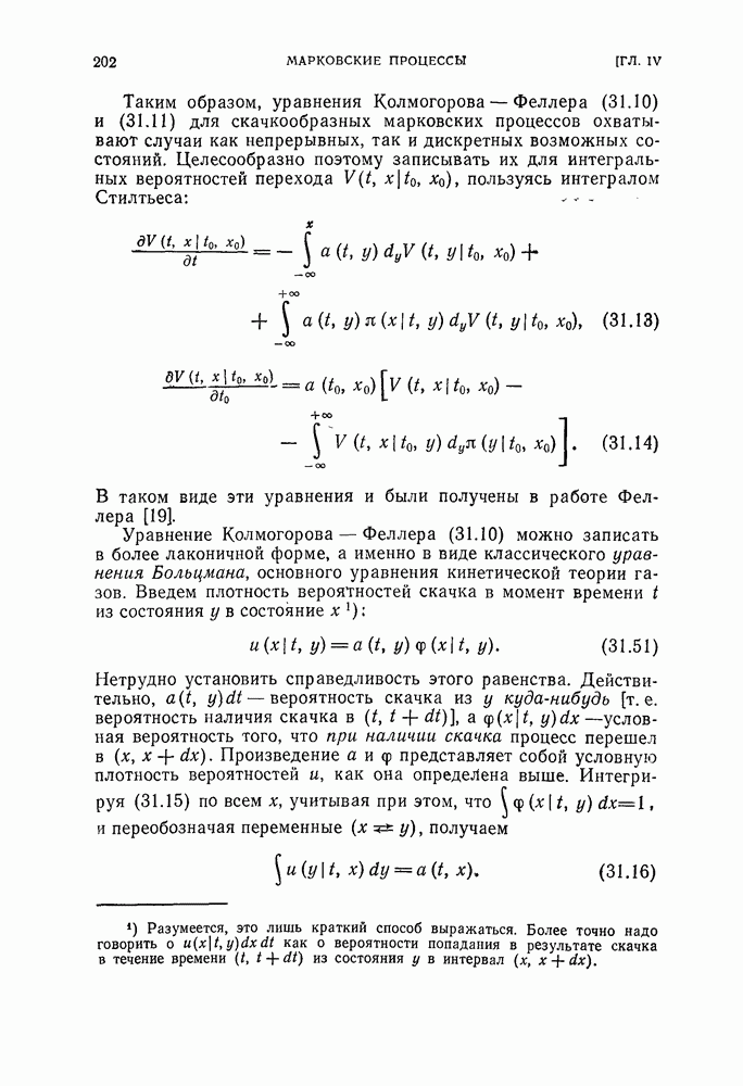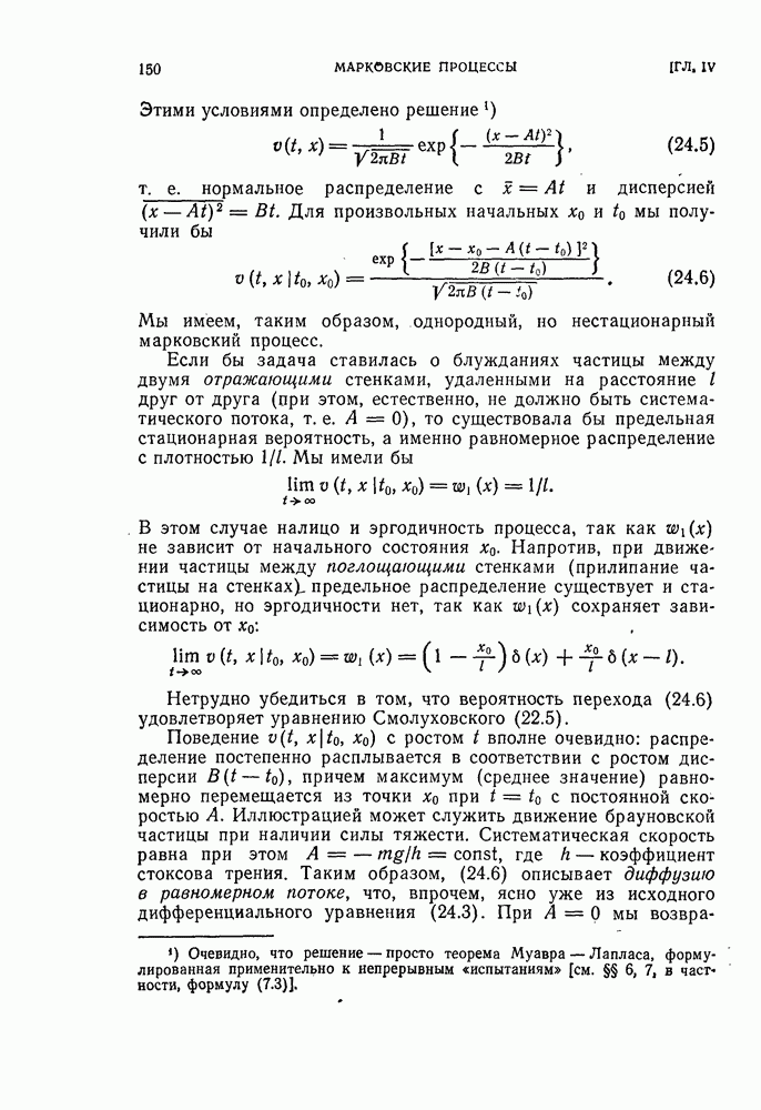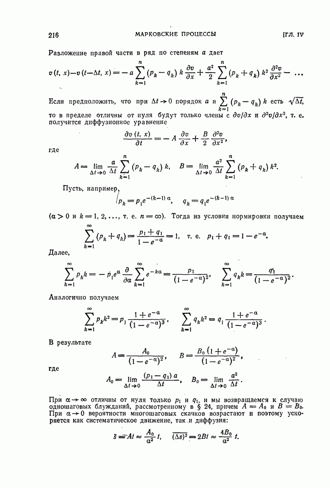 Следуя [24], мы рассмотрим одномерный марковский процесс, причем однородный по времени, т. е. с плотностью вероятности перехода