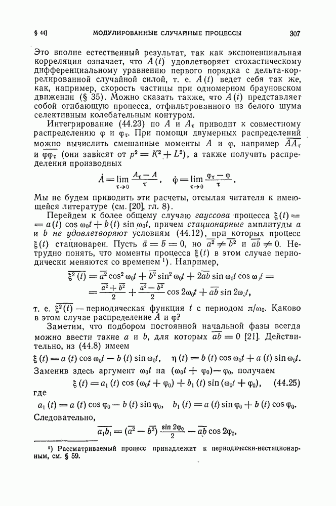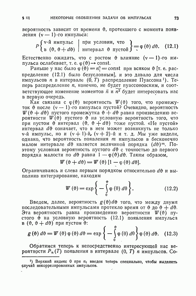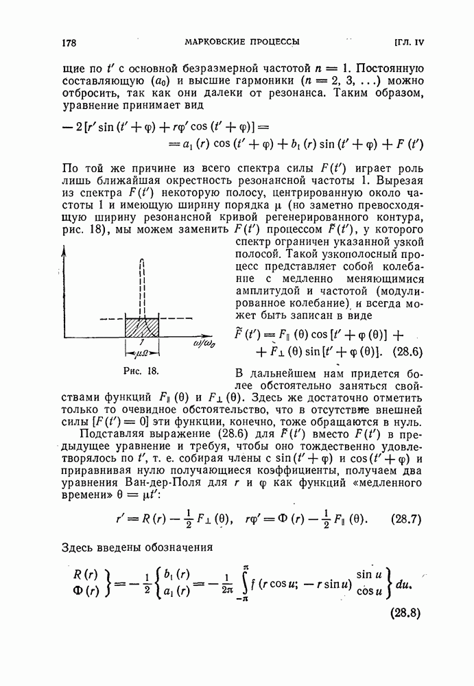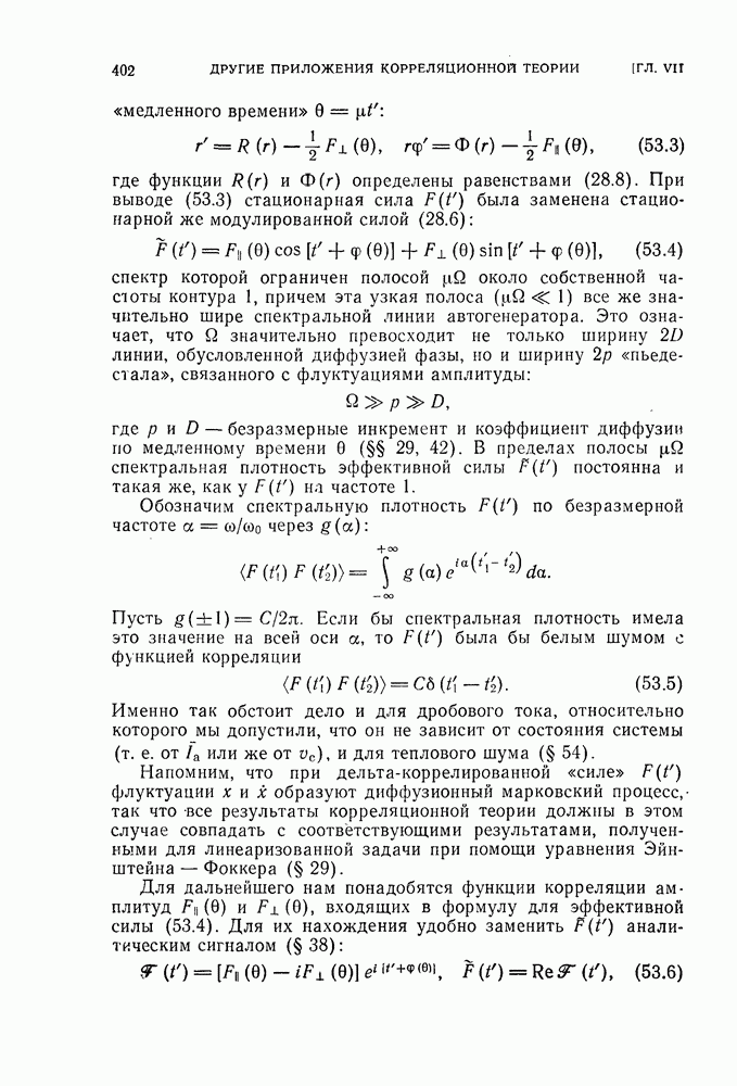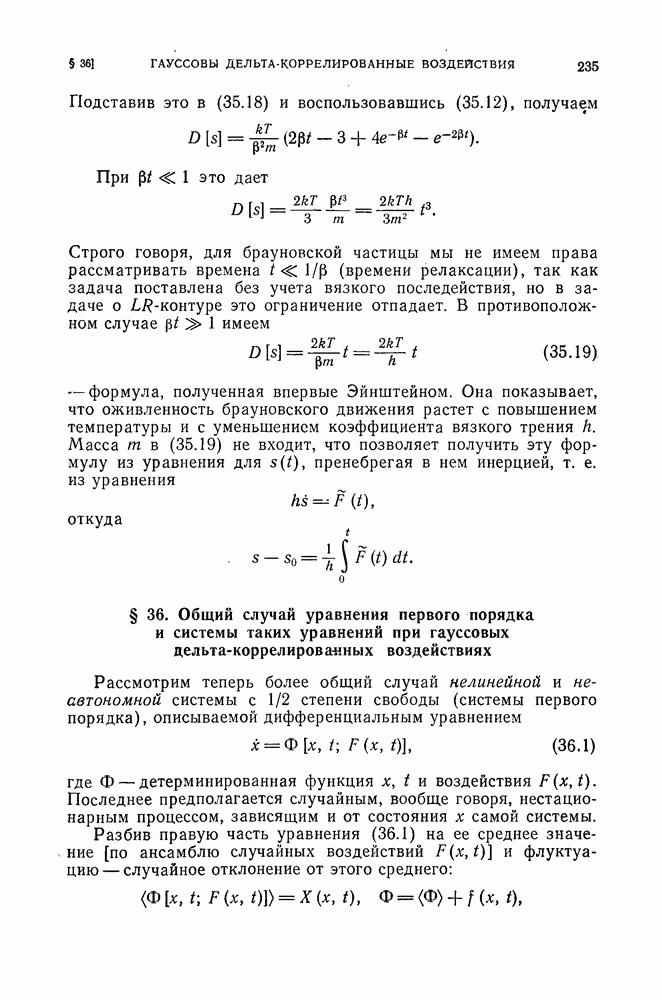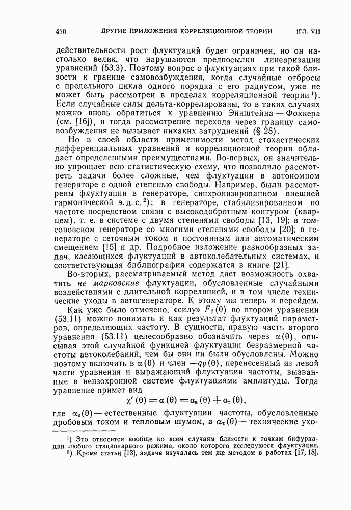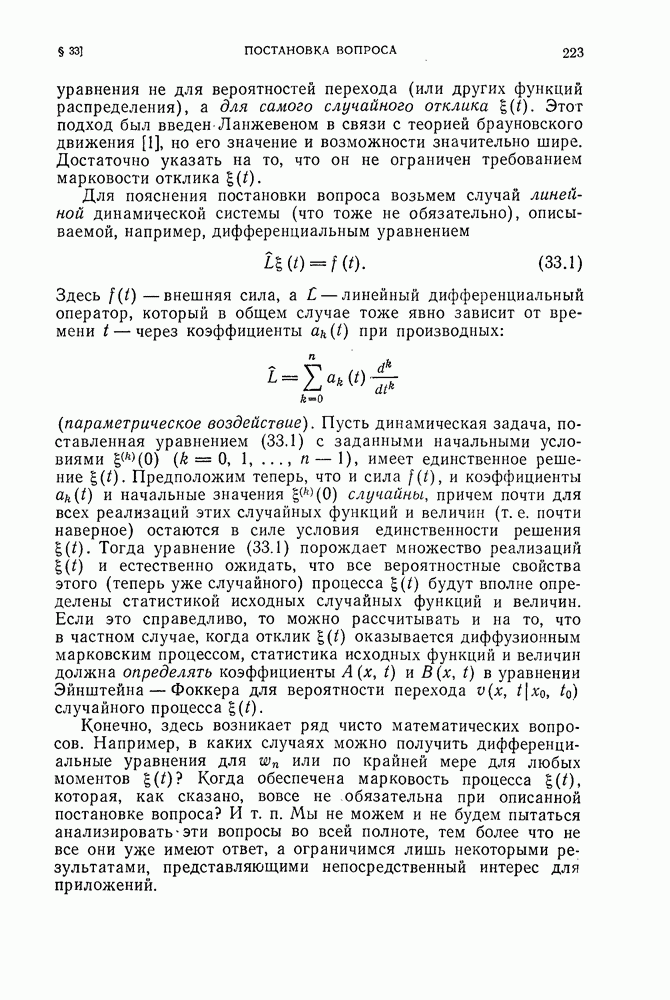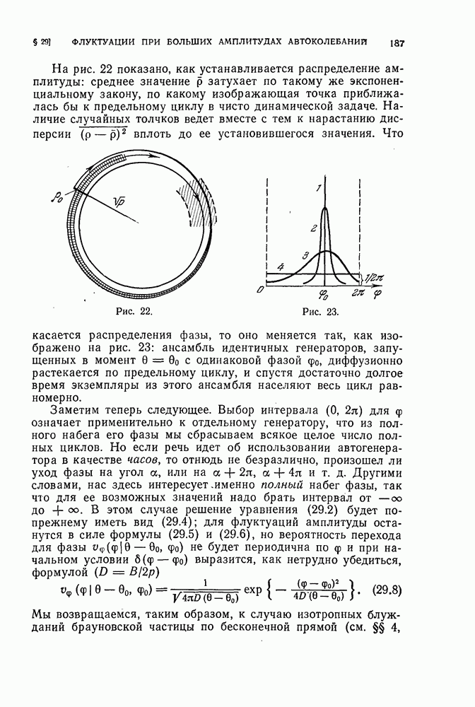 А. А. Виттом [24]. Решение этой задачи находит разнообразные применения. В случае брауновского движения примером может служить опыт Бриллюэна, в котором брауновская частица прилипает к стенке сосуда, т. е. речь идет именно о первом достижении частицей поглощающей границы [7]. Из радиофизических задач можно указать на вопрос о времени достижения сепаратрисы при флуктуациях в нелинейных динамических системах, в частности о времени перехода через потенциальный барьер в консервативных системах и о времени самопроизвольной смены автоколебательных режимов или срыва автоколебаний в автогенераторах. Сюда же относится задача о срыве слежения в авторегулируемых следящих системах и др.