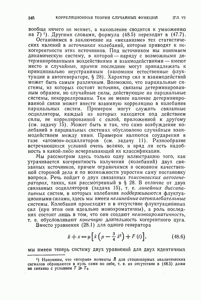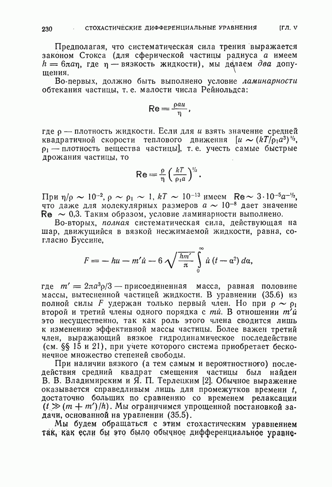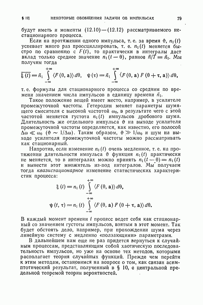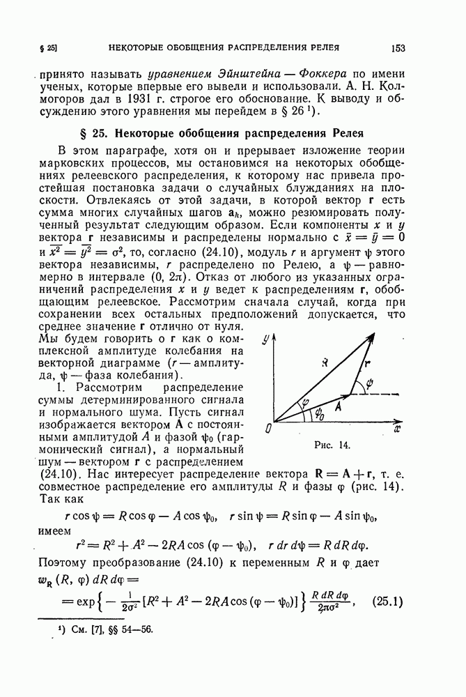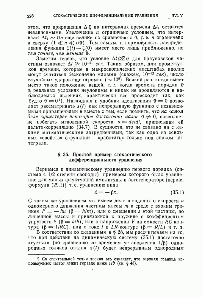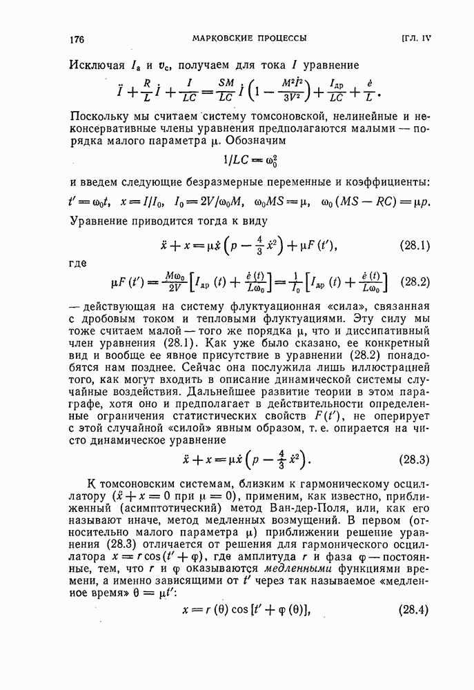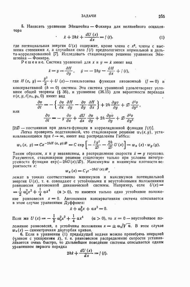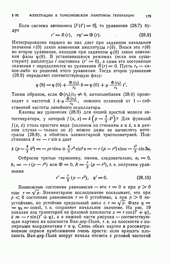 А. А. Виттом [24]. Решение этой задачи находит разнообразные применения. В случае брауновского движения примером может служить опыт Бриллюэна, в котором брауновская частица прилипает к стенке сосуда, т. е. речь идет именно о первом достижении частицей поглощающей границы [7]. Из радиофизических задач можно указать на вопрос о времени достижения сепаратрисы при флуктуациях в нелинейных динамических системах, в частности о времени перехода через потенциальный барьер в консервативных системах и о времени самопроизвольной смены автоколебательных режимов или срыва автоколебаний в автогенераторах. Сюда же относится задача о срыве слежения в авторегулируемых следящих системах и др.