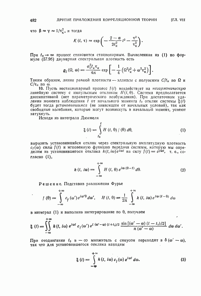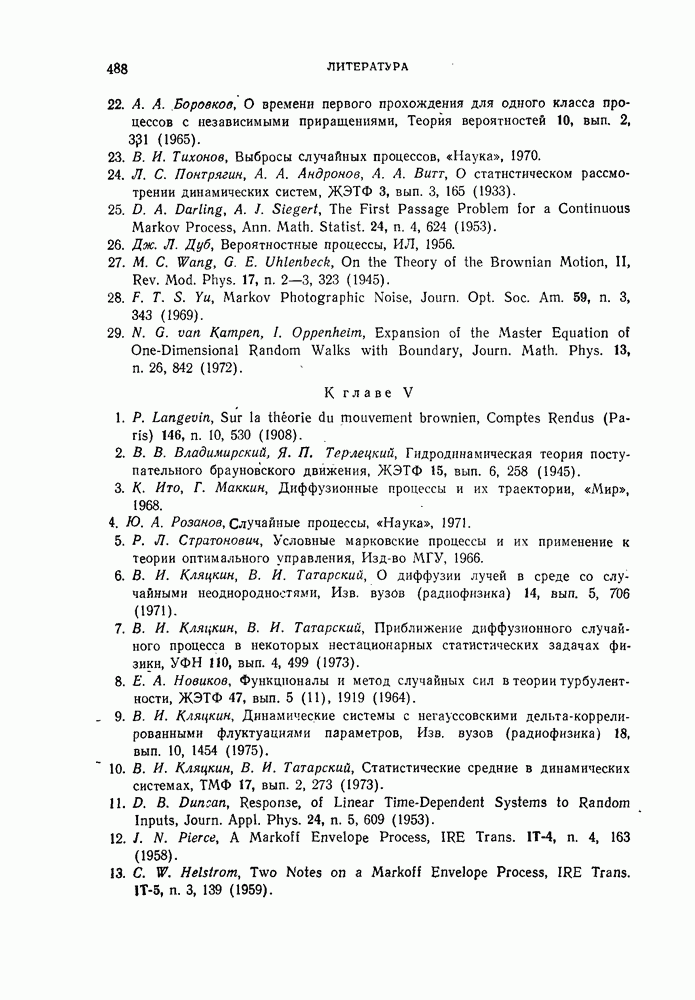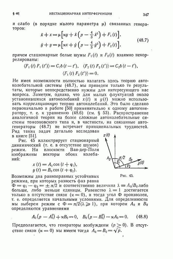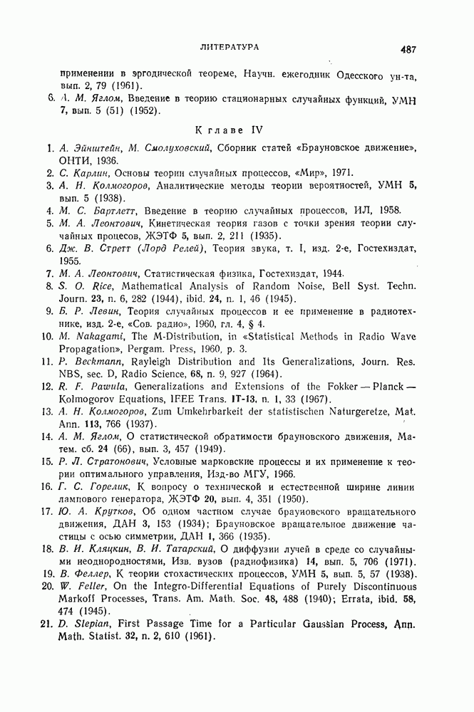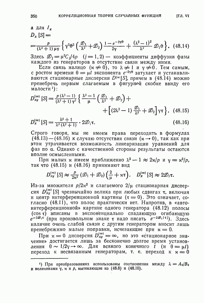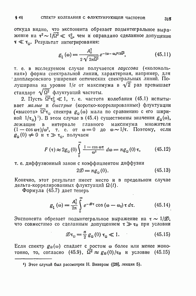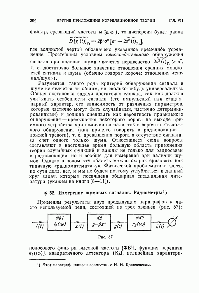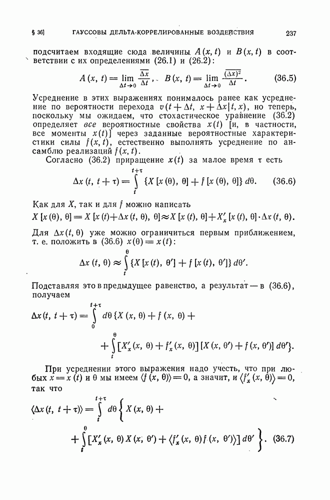 А. А. Виттом [24]. Решение этой задачи находит разнообразные применения. В случае брауновского движения примером может служить опыт Бриллюэна, в котором брауновская частица прилипает к стенке сосуда, т. е. речь идет именно о первом достижении частицей поглощающей границы [7]. Из радиофизических задач можно указать на вопрос о времени достижения сепаратрисы при флуктуациях в нелинейных динамических системах, в частности о времени перехода через потенциальный барьер в консервативных системах и о времени самопроизвольной смены автоколебательных режимов или срыва автоколебаний в автогенераторах. Сюда же относится задача о срыве слежения в авторегулируемых следящих системах и др.