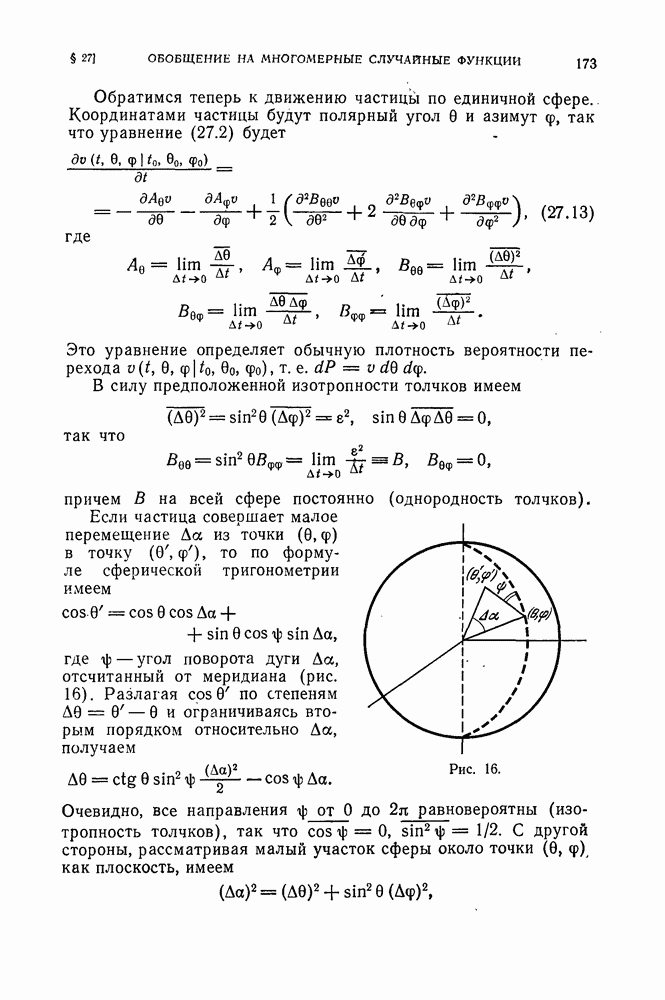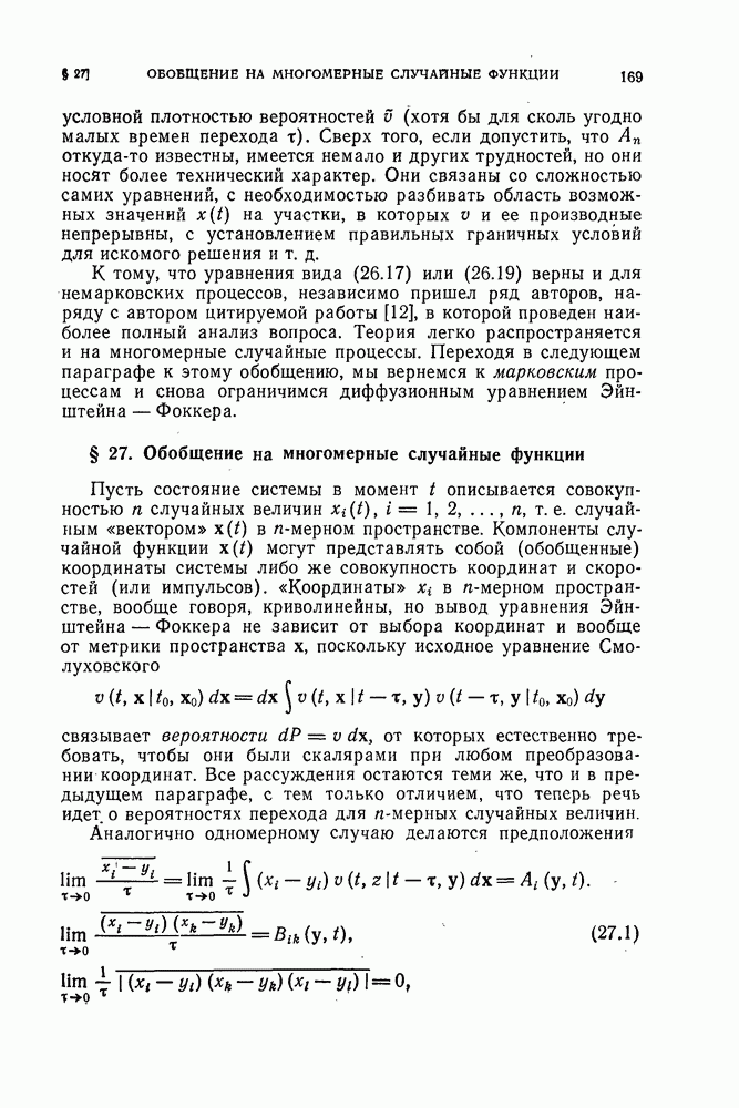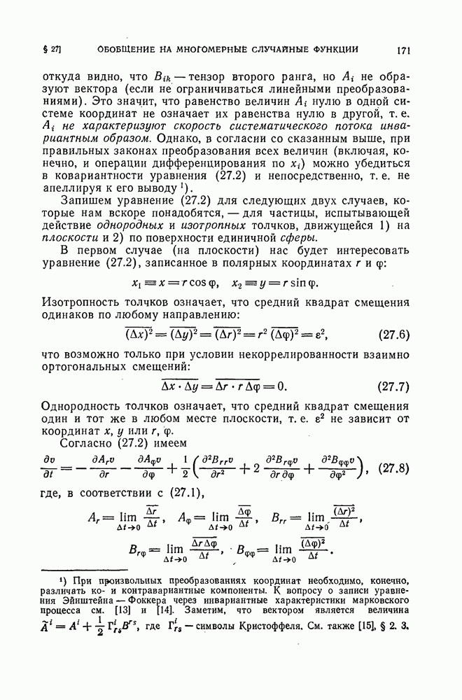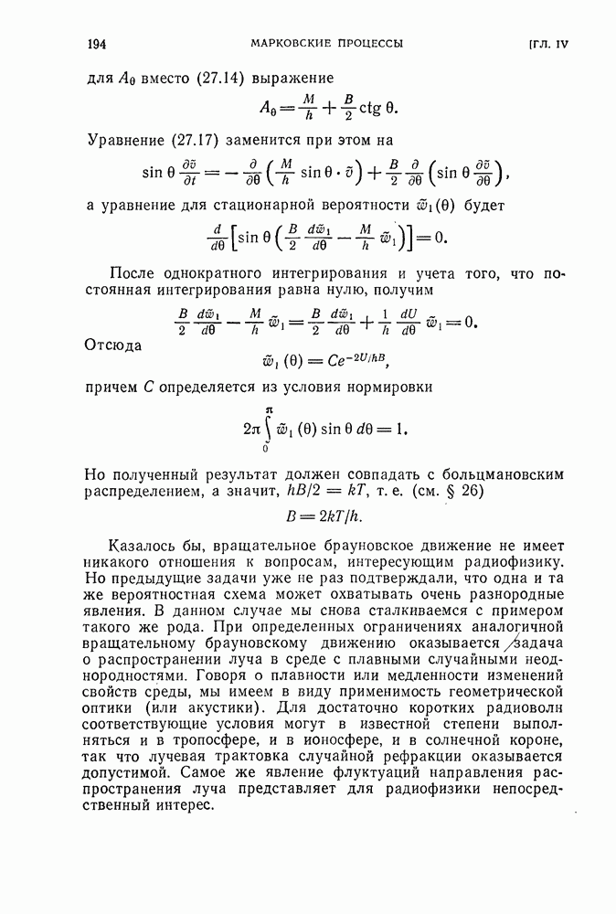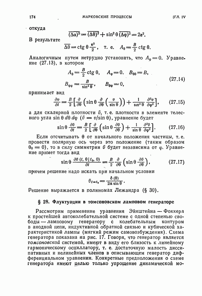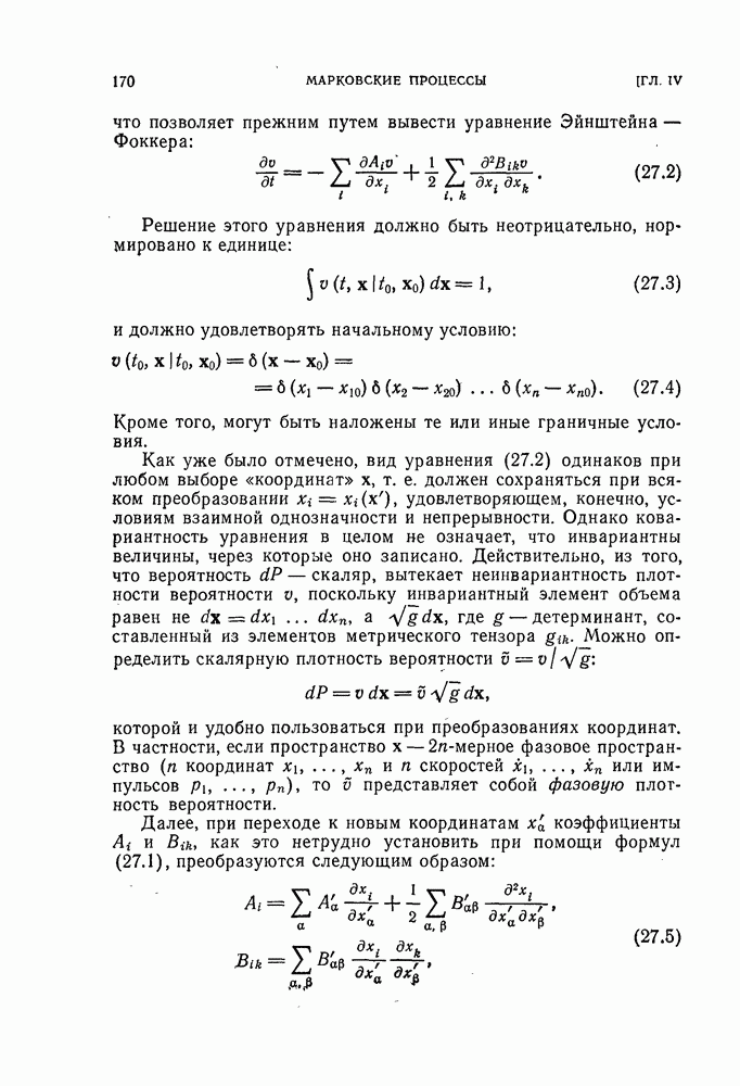 , получаем (при тех же предположениях, какие были сделаны в § 26 при выводе уравнения Эйнштейна — Фоккера для вероятности