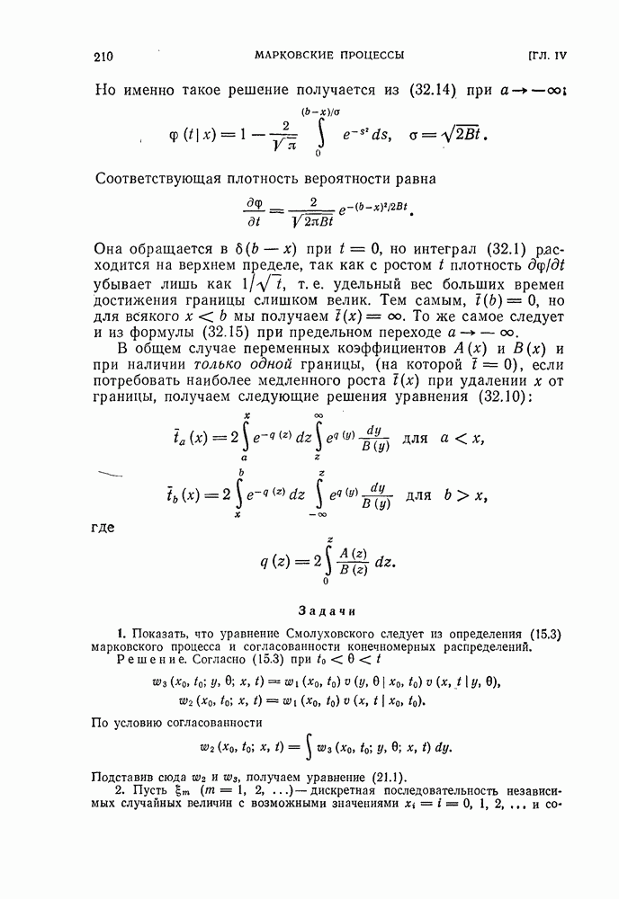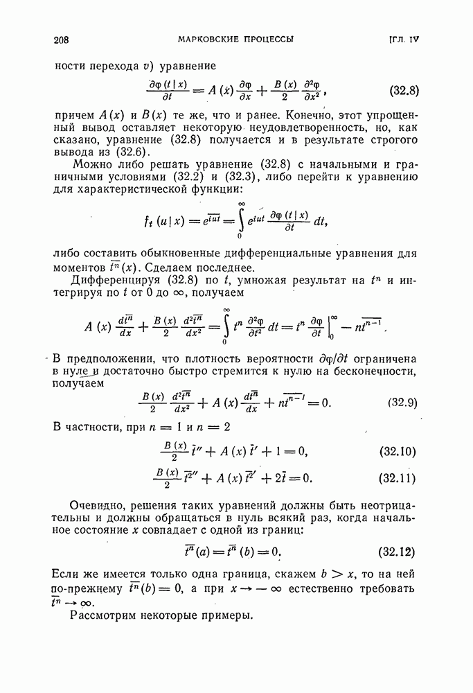 Можно либо решать уравнение (32.8) с начальными и граничными условиями (32.2) и (32.3), либо перейти к уравнению для характеристической функции: