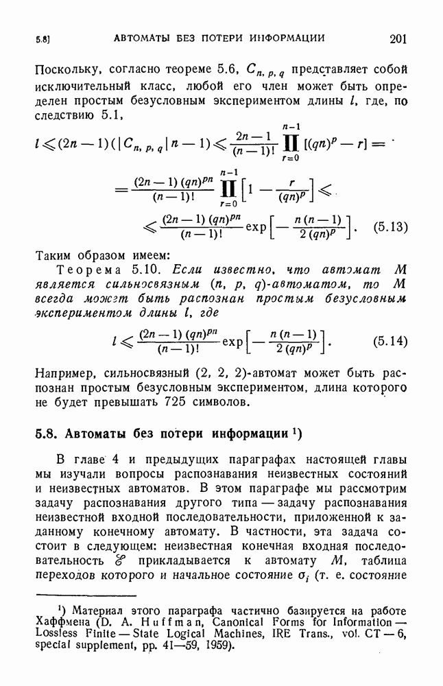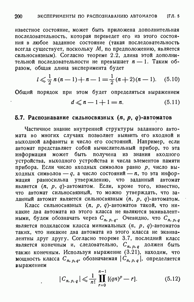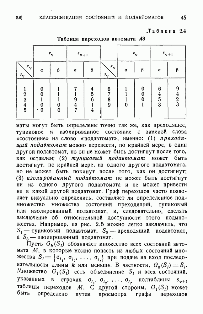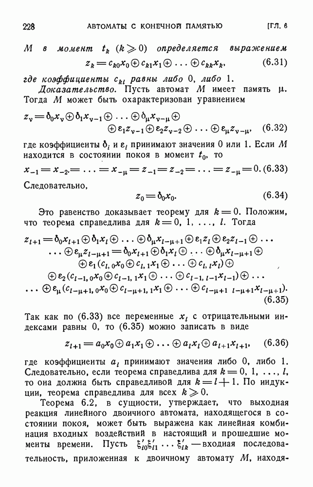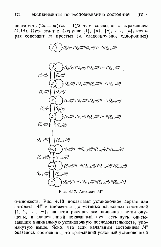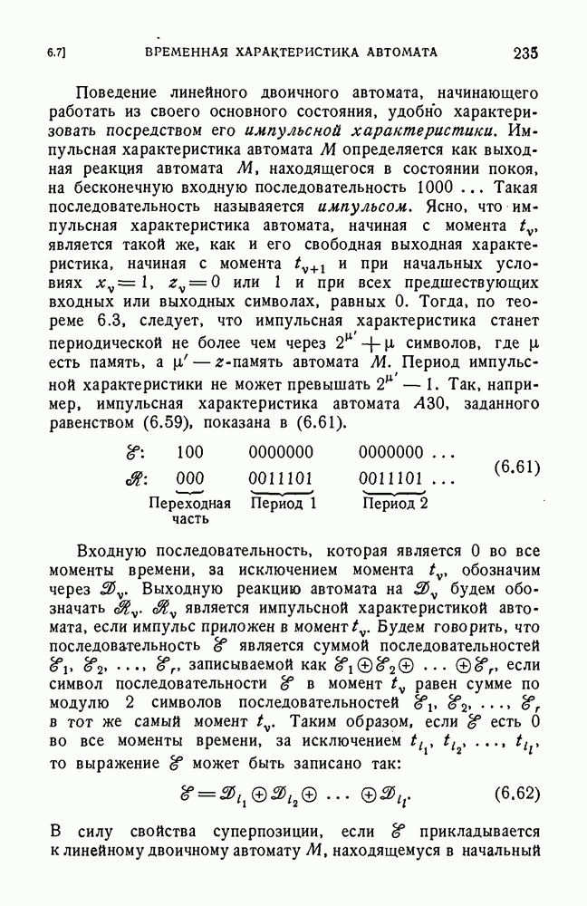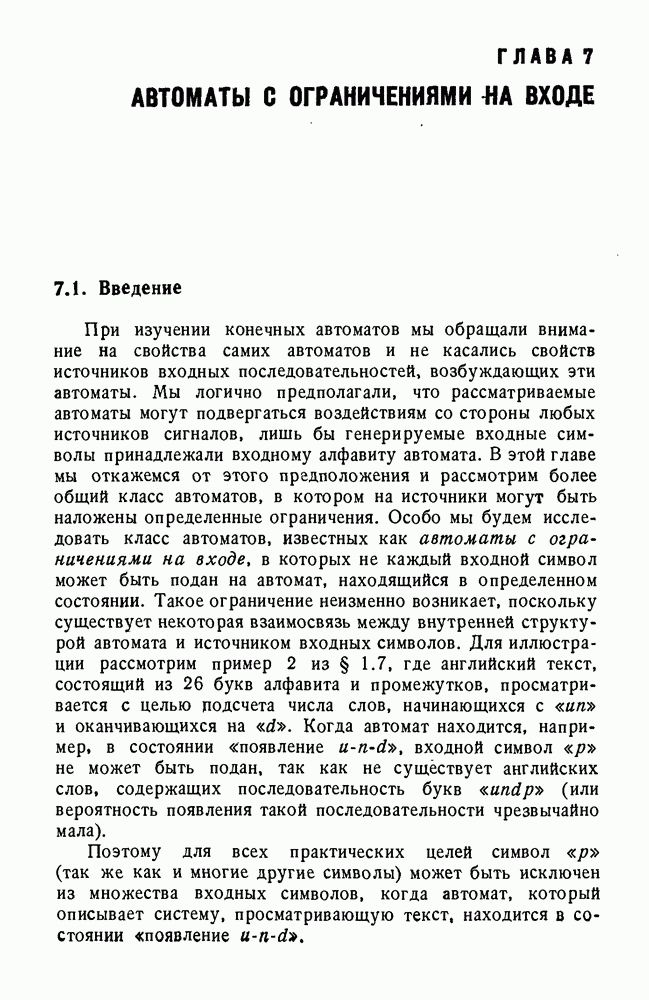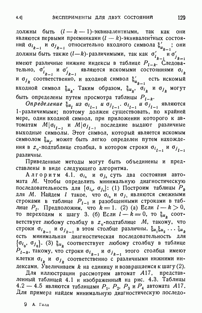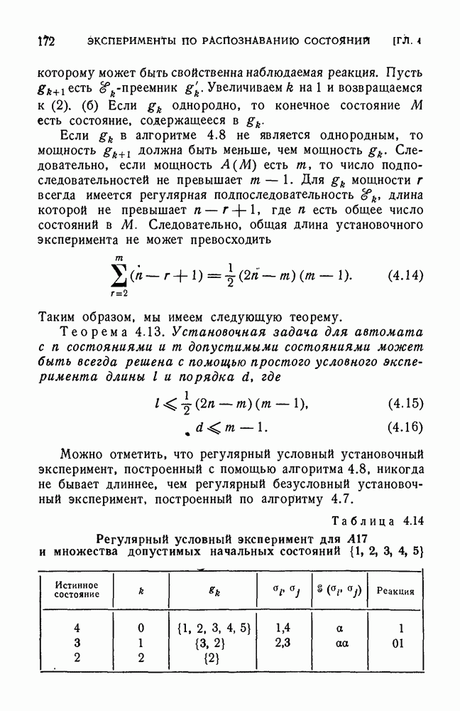 В предыдущих главах было подчеркнуто, что в конечных автоматах не нужно ни наблюдать, ни интересоваться физической природой состояний. Единственная функция состояний заключается в том, чтобы участвовать в определении зависимостей между входами и выходами автомата. Следовательно, любое множество состояний, выполняющих эту функцию, является приемлемым независимо от того, выражают эти состояния какой-либо интуитивный смысл или нет. Эта свобода выбора множества состояний весьма выгодна, поскольку она позволяет заменять одно множество другим, что может оказаться удобным для многих цеей. В частности, она позволяет найти оптимальное или минимальное, в том или другом смысле, множество состояний. При всех таких рассмотрениях понятие «эквивалентности» играет главную роль. Как станет видно из дальнейшего, это понятие не только является фундаментальным для более точного и краткого определения конечных автоматов, но проливает новый свет на всю проблему анализа конечных автоматов (так же как и синтеза).