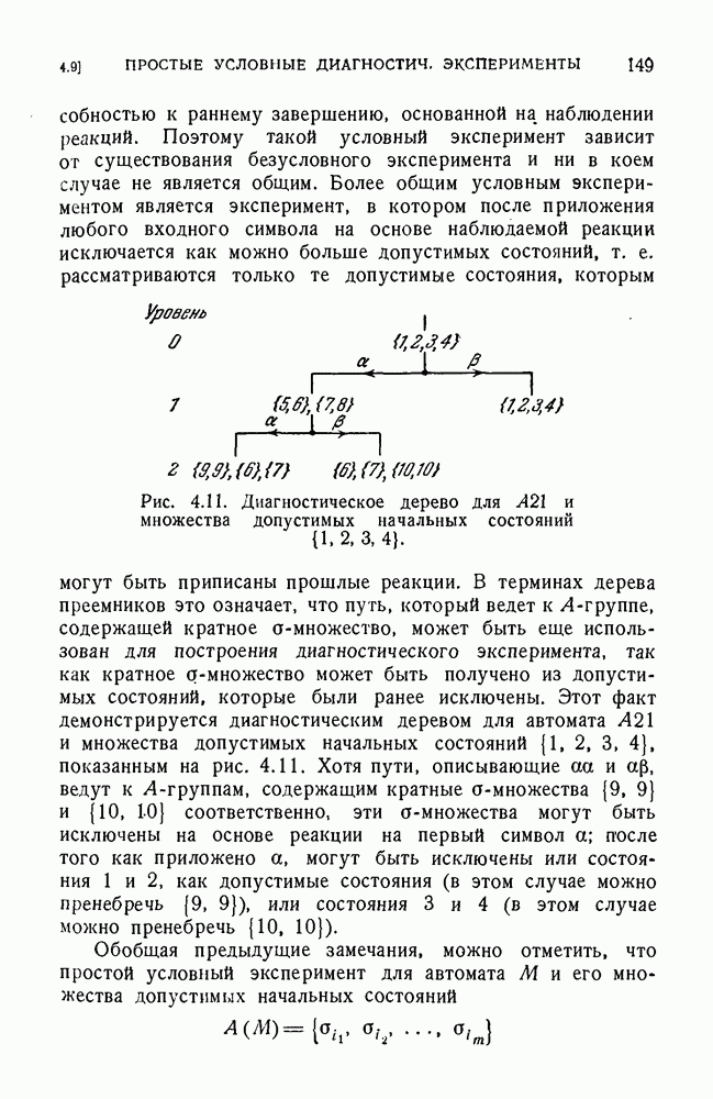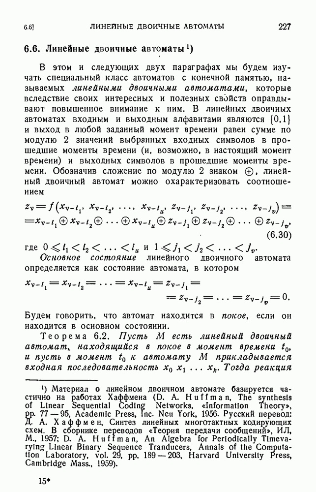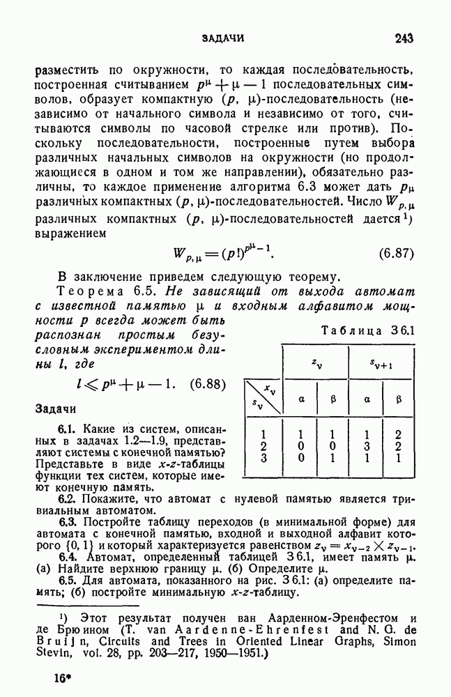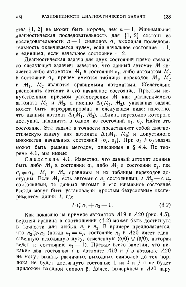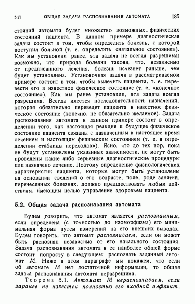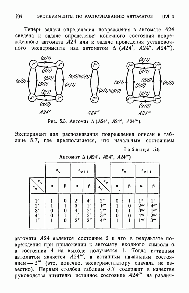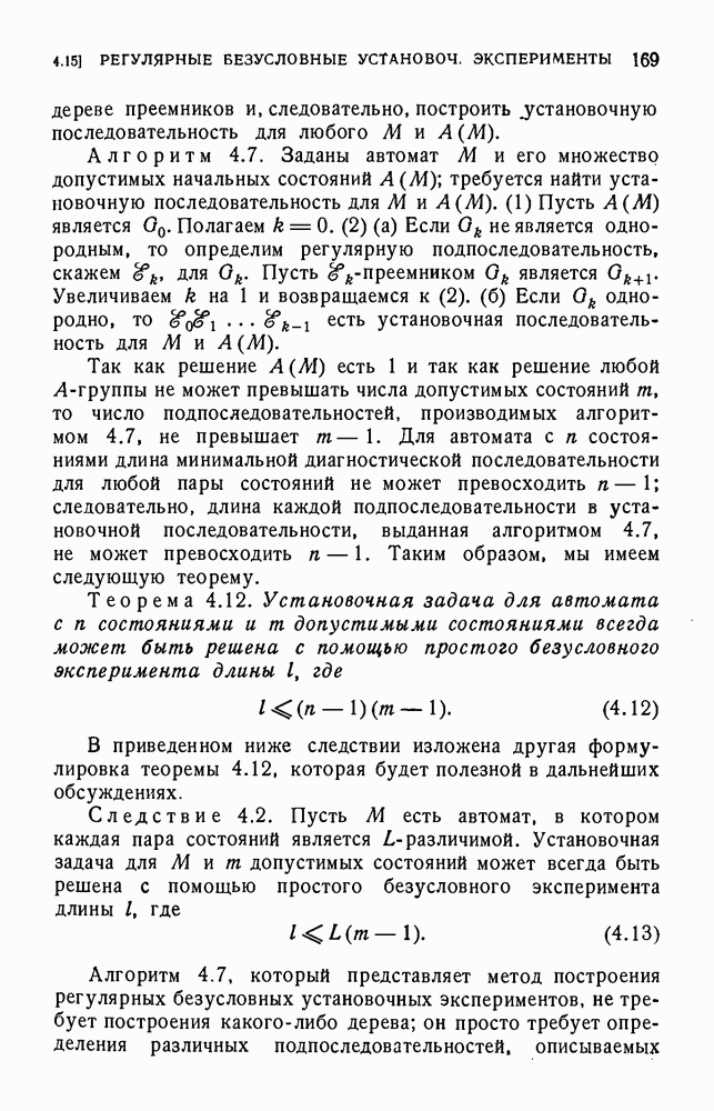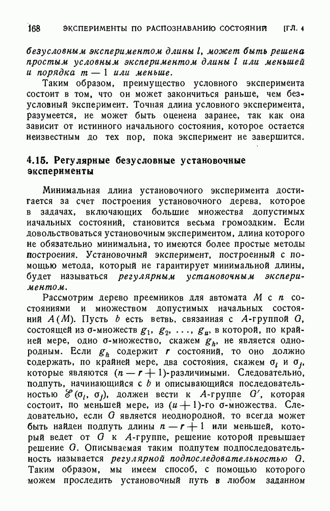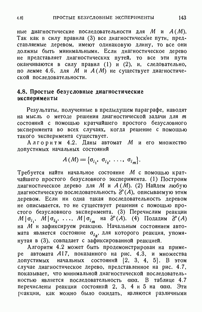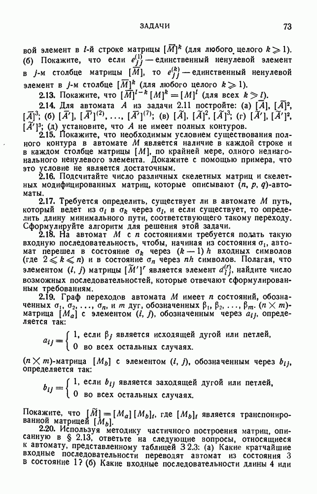 В предыдущих главах было подчеркнуто, что в конечных автоматах не нужно ни наблюдать, ни интересоваться физической природой состояний. Единственная функция состояний заключается в том, чтобы участвовать в определении зависимостей между входами и выходами автомата. Следовательно, любое множество состояний, выполняющих эту функцию, является приемлемым независимо от того, выражают эти состояния какой-либо интуитивный смысл или нет. Эта свобода выбора множества состояний весьма выгодна, поскольку она позволяет заменять одно множество другим, что может оказаться удобным для многих цеей. В частности, она позволяет найти оптимальное или минимальное, в том или другом смысле, множество состояний. При всех таких рассмотрениях понятие «эквивалентности» играет главную роль. Как станет видно из дальнейшего, это понятие не только является фундаментальным для более точного и краткого определения конечных автоматов, но проливает новый свет на всю проблему анализа конечных автоматов (так же как и синтеза).