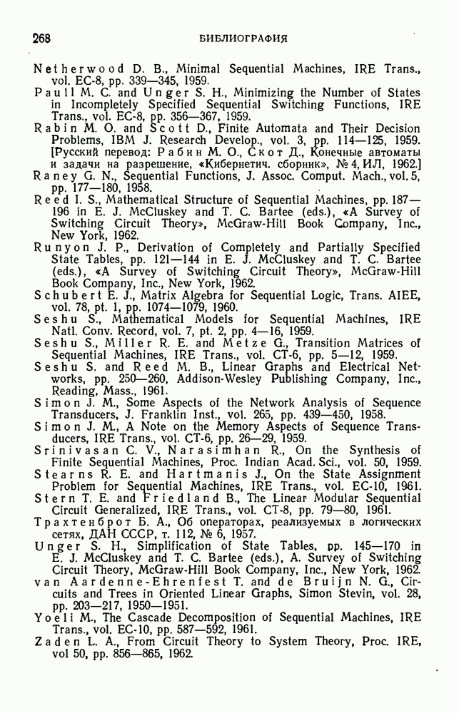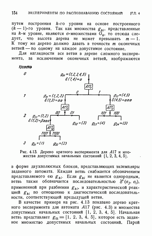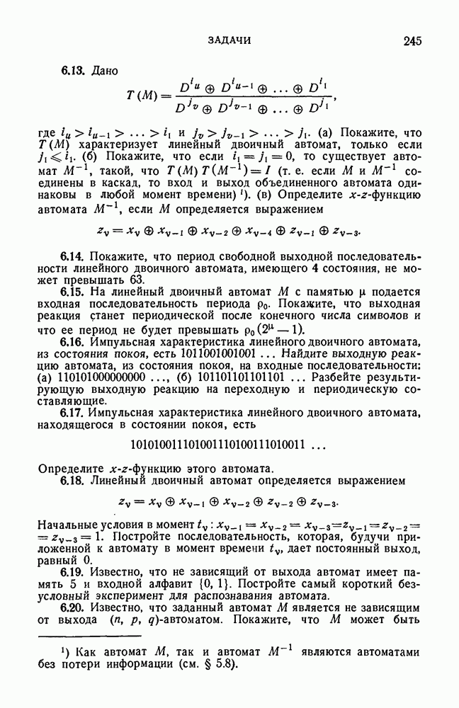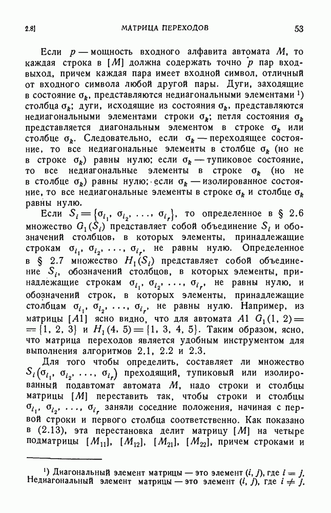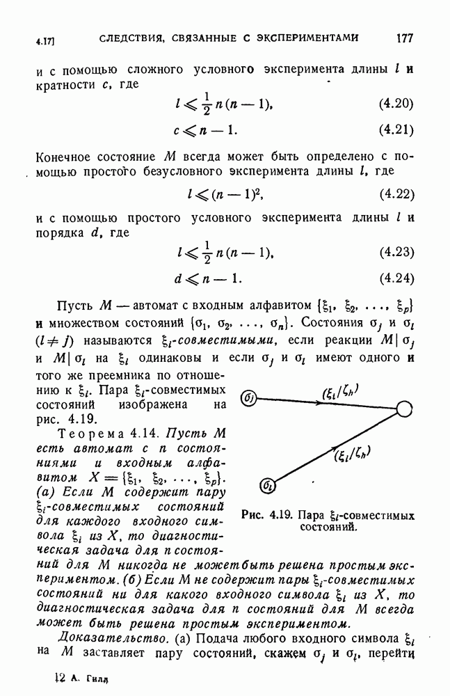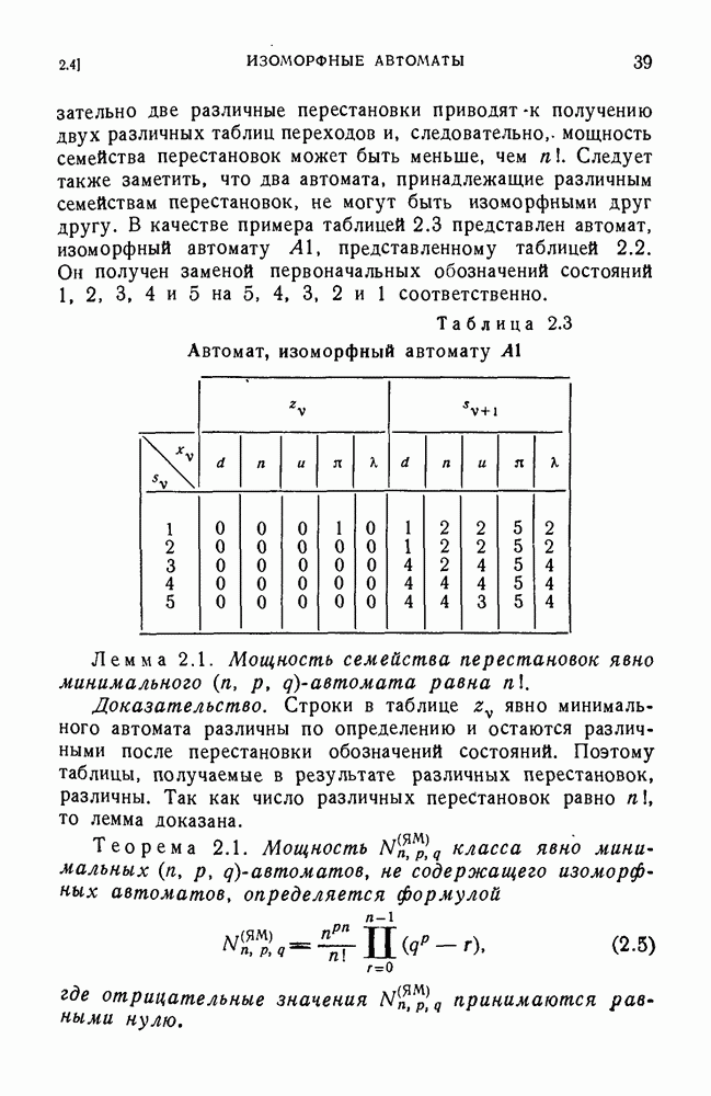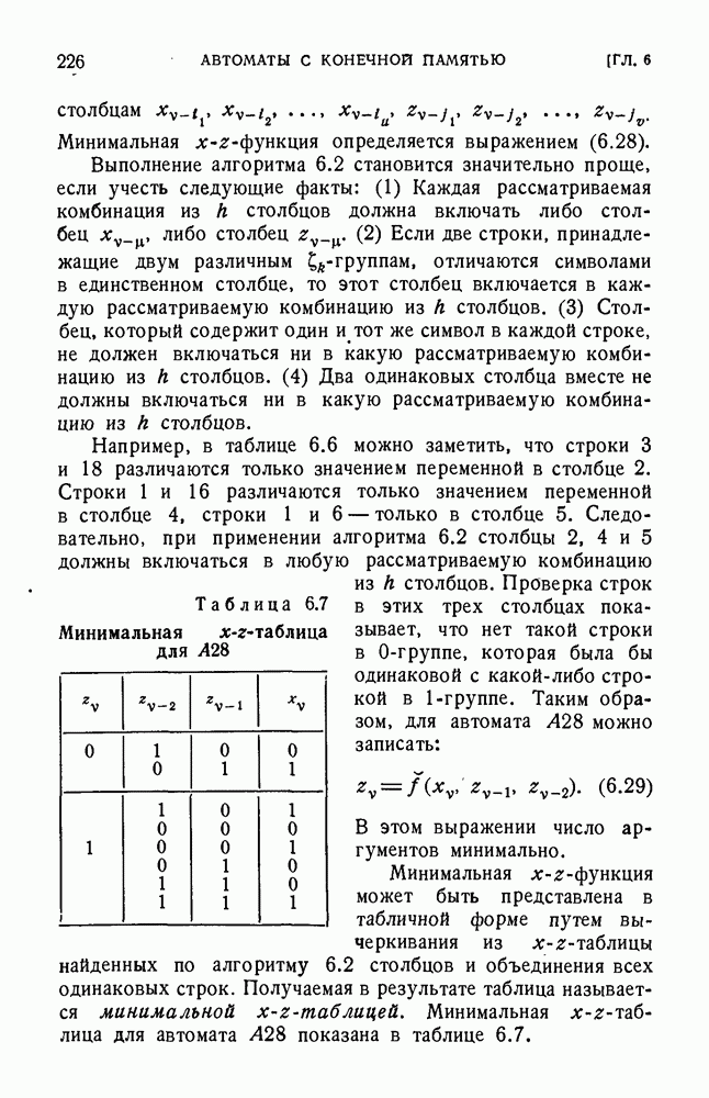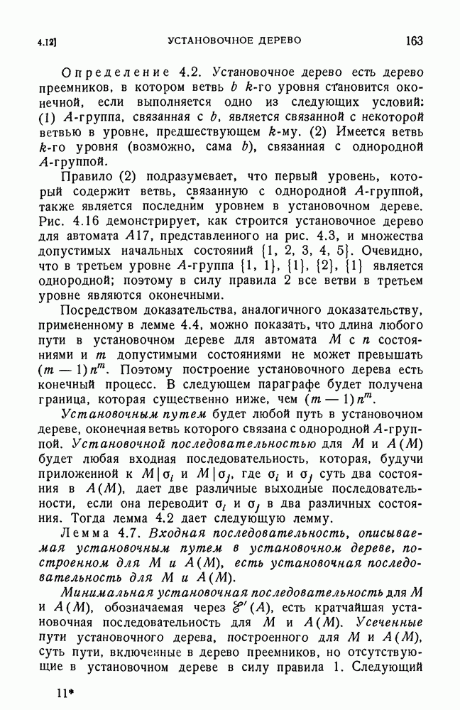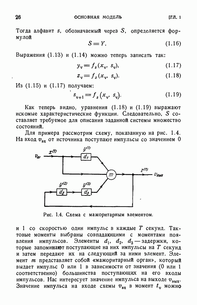 В предыдущих главах было подчеркнуто, что в конечных автоматах не нужно ни наблюдать, ни интересоваться физической природой состояний. Единственная функция состояний заключается в том, чтобы участвовать в определении зависимостей между входами и выходами автомата. Следовательно, любое множество состояний, выполняющих эту функцию, является приемлемым независимо от того, выражают эти состояния какой-либо интуитивный смысл или нет. Эта свобода выбора множества состояний весьма выгодна, поскольку она позволяет заменять одно множество другим, что может оказаться удобным для многих цеей. В частности, она позволяет найти оптимальное или минимальное, в том или другом смысле, множество состояний. При всех таких рассмотрениях понятие «эквивалентности» играет главную роль. Как станет видно из дальнейшего, это понятие не только является фундаментальным для более точного и краткого определения конечных автоматов, но проливает новый свет на всю проблему анализа конечных автоматов (так же как и синтеза).