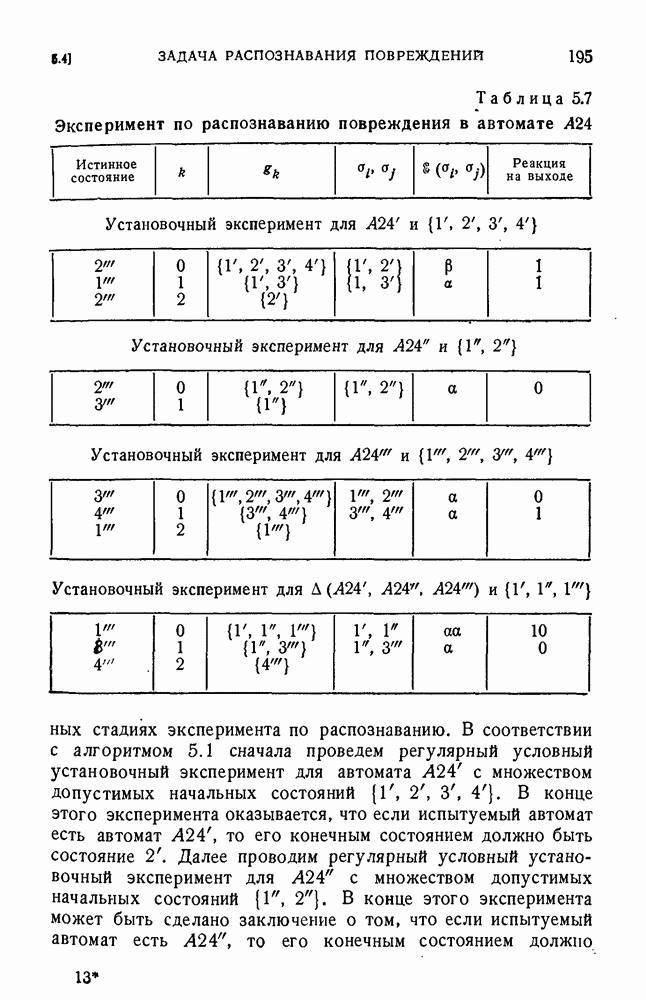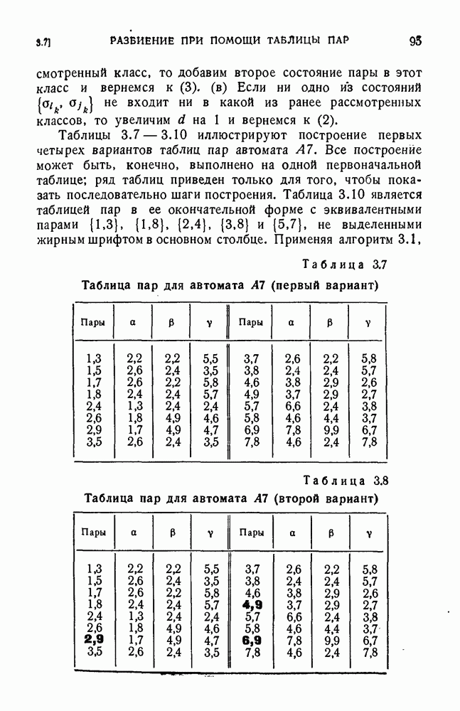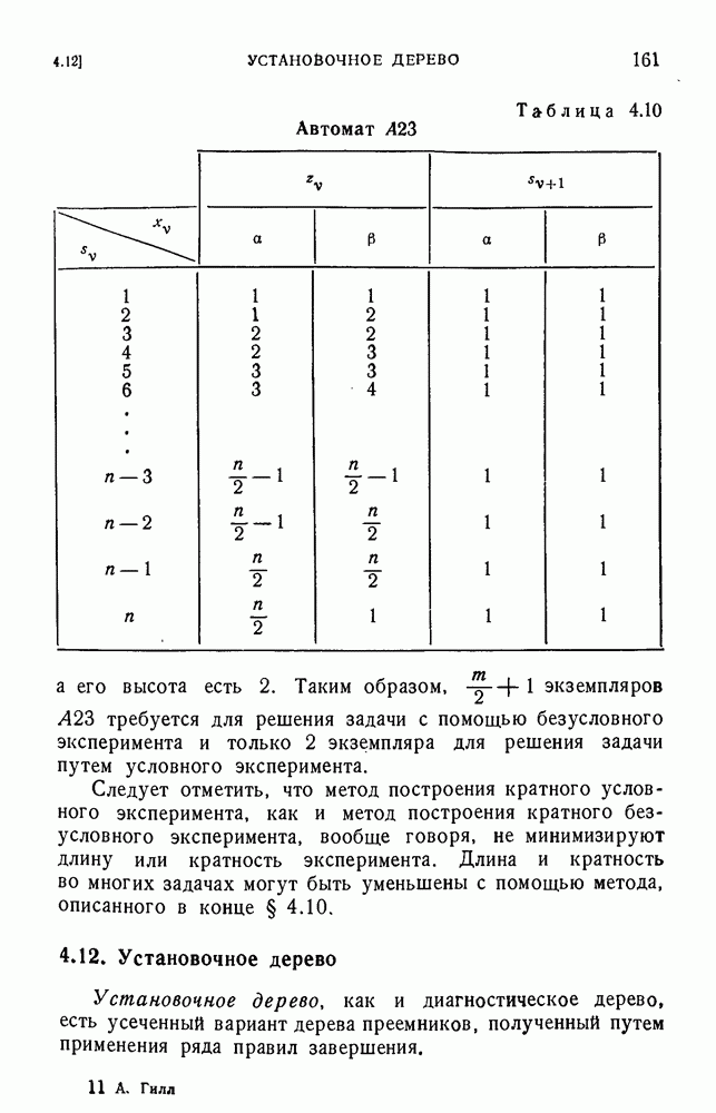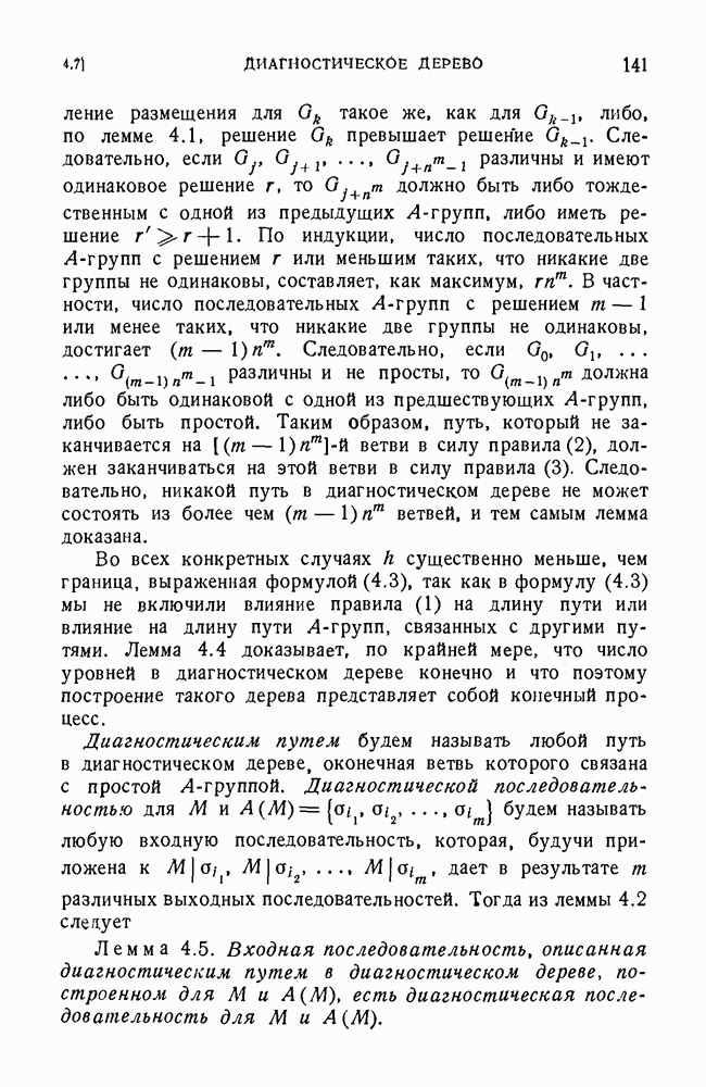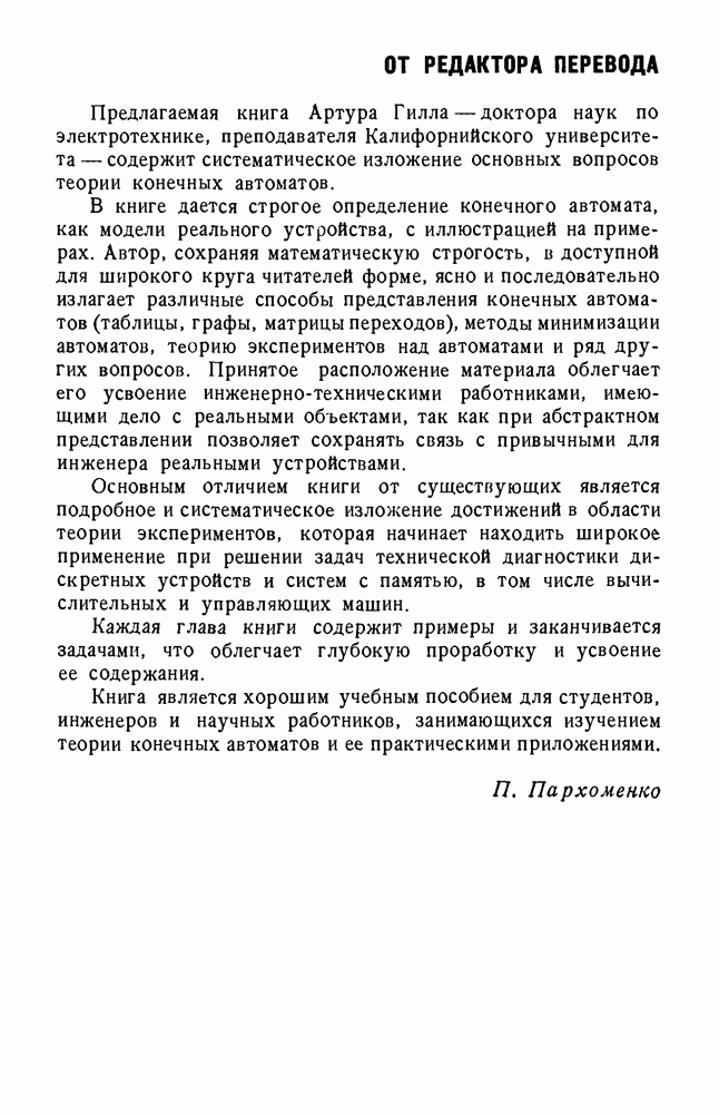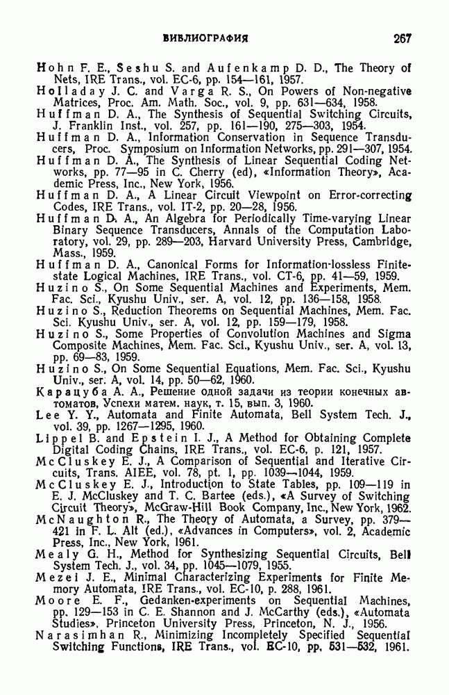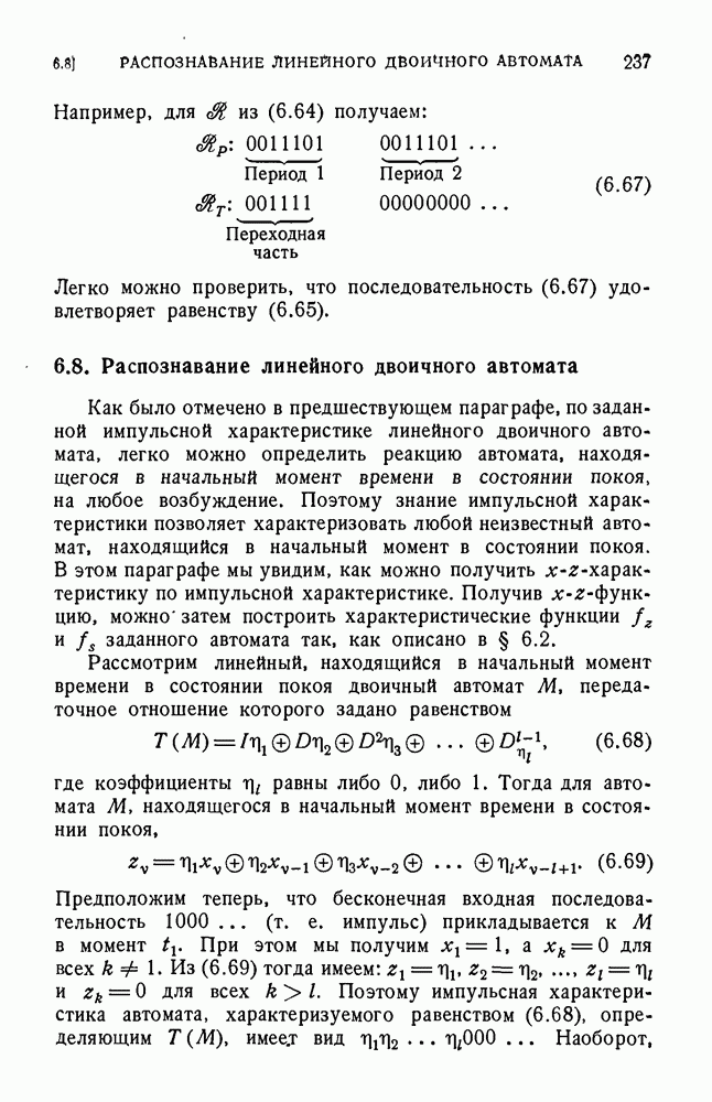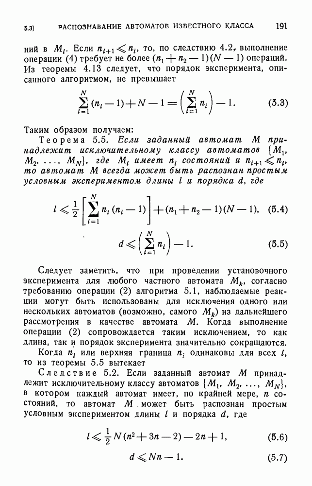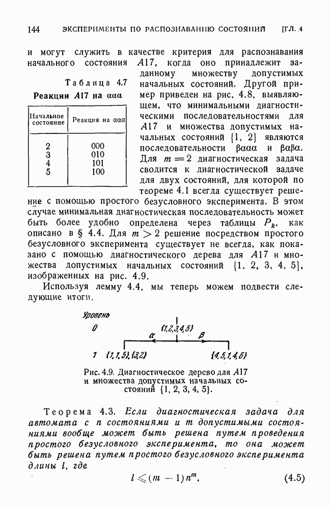 В предыдущих главах было подчеркнуто, что в конечных автоматах не нужно ни наблюдать, ни интересоваться физической природой состояний. Единственная функция состояний заключается в том, чтобы участвовать в определении зависимостей между входами и выходами автомата. Следовательно, любое множество состояний, выполняющих эту функцию, является приемлемым независимо от того, выражают эти состояния какой-либо интуитивный смысл или нет. Эта свобода выбора множества состояний весьма выгодна, поскольку она позволяет заменять одно множество другим, что может оказаться удобным для многих цеей. В частности, она позволяет найти оптимальное или минимальное, в том или другом смысле, множество состояний. При всех таких рассмотрениях понятие «эквивалентности» играет главную роль. Как станет видно из дальнейшего, это понятие не только является фундаментальным для более точного и краткого определения конечных автоматов, но проливает новый свет на всю проблему анализа конечных автоматов (так же как и синтеза).