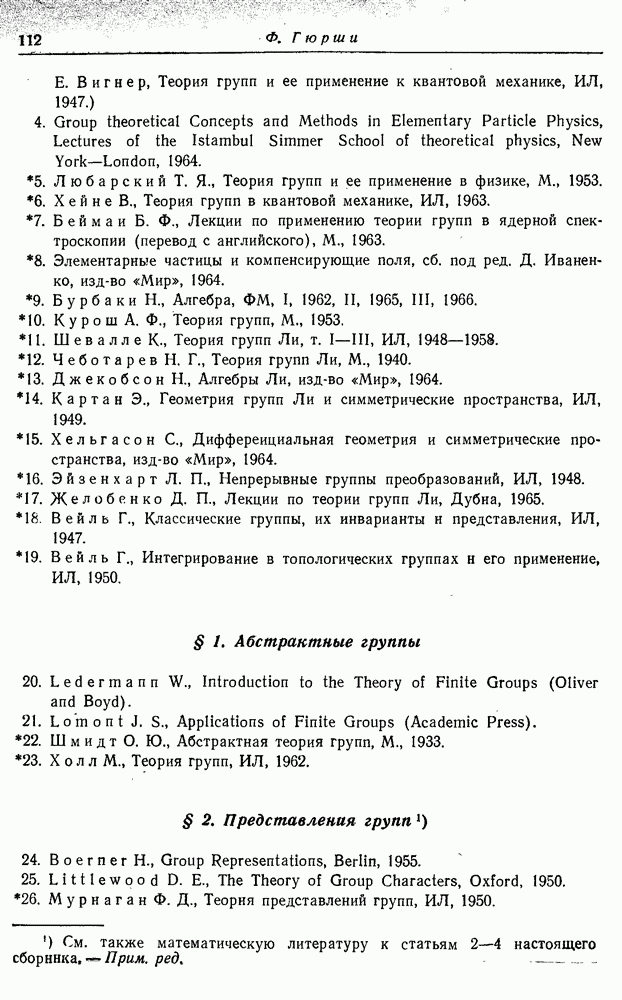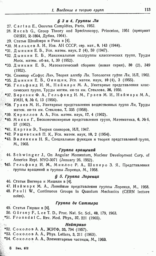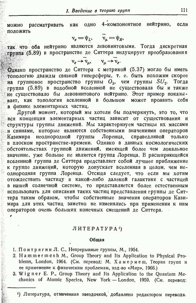 ЛИТЕРАТУРАОбщая1. Поитрягин Л. С., Непрерывные группы, М., 1954. 2. Hammermesh М., Group Theory and Its Application to Physical Problems, London, 1964. (См. перевод: М. Хамермеш, Теория групп и ее применение к физическим проблемам, изд-во «Мир», 1966.) 3. Wignег Е. P., Group Theory and Its Application to the Quantum Mechanics of Atomic Spectra, New York — London, 1959. (См. перевод: (см. скан) (см. скан)
