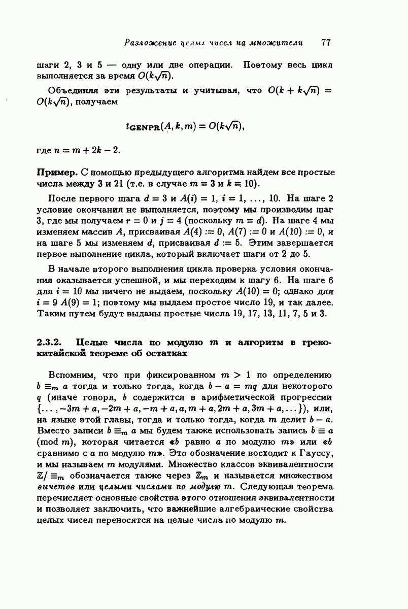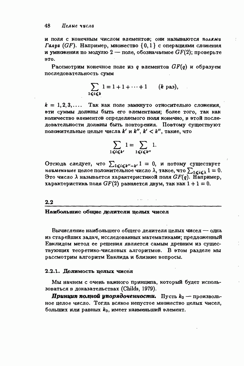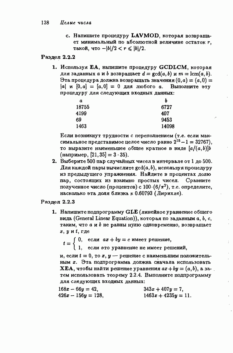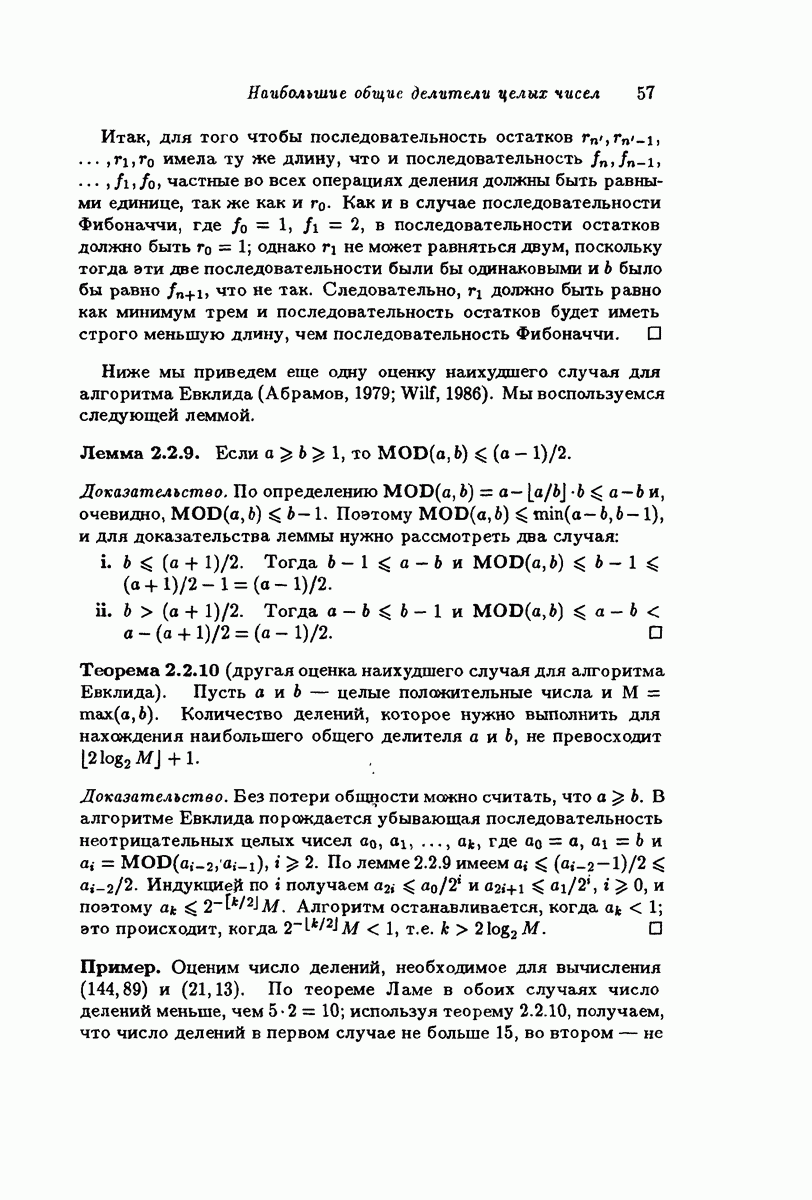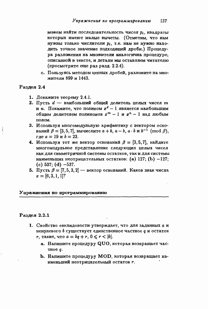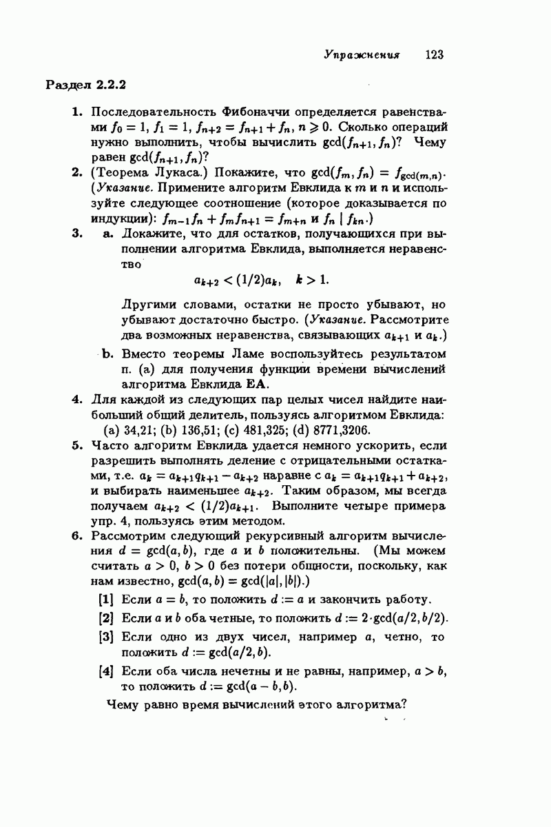 Вычисление наибольшего общего делителя целых чисел — одна из старейших задач, исследованных математиками; предложенный Евклидом метод ее решения является самым древним из существующих теоретико-числовых алгоритмов. В этом разделе мы рассмотрим алгоритм Евклида и близкие вопросы.