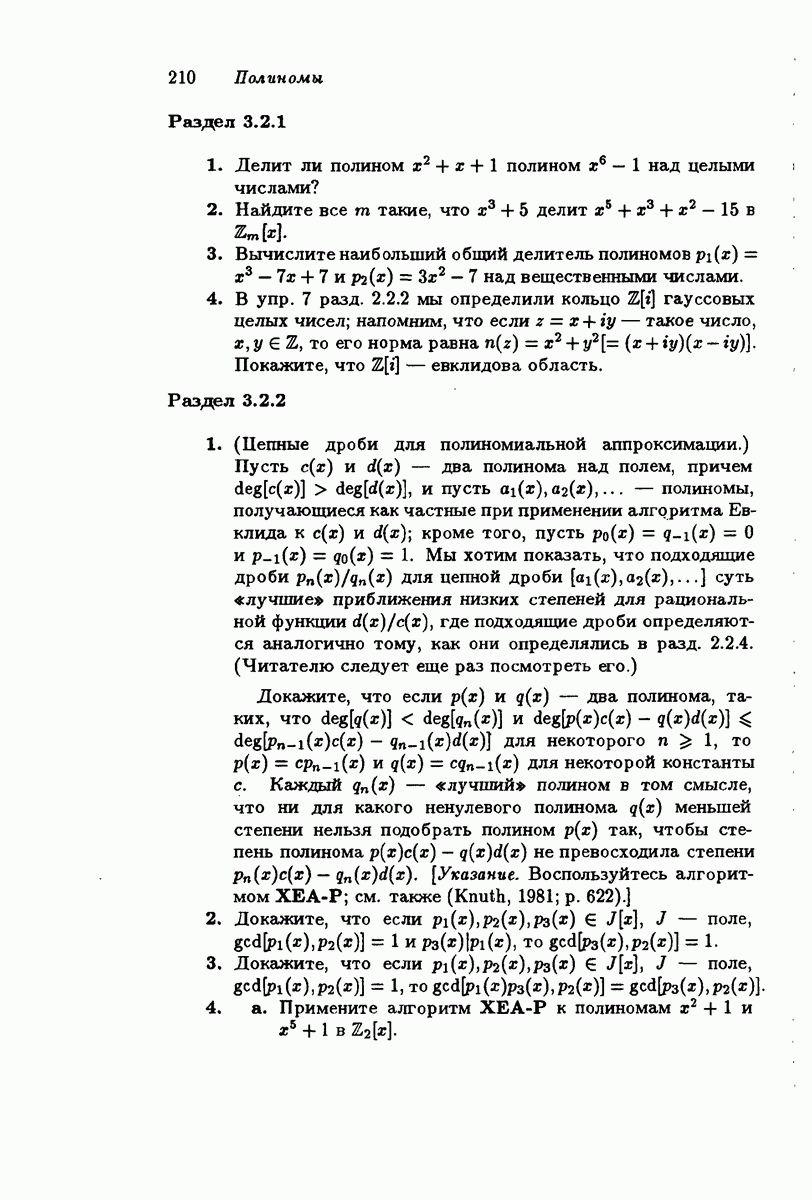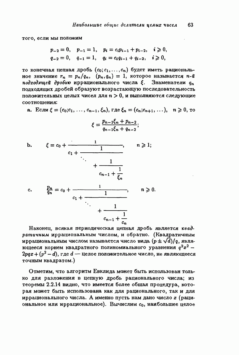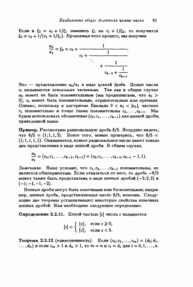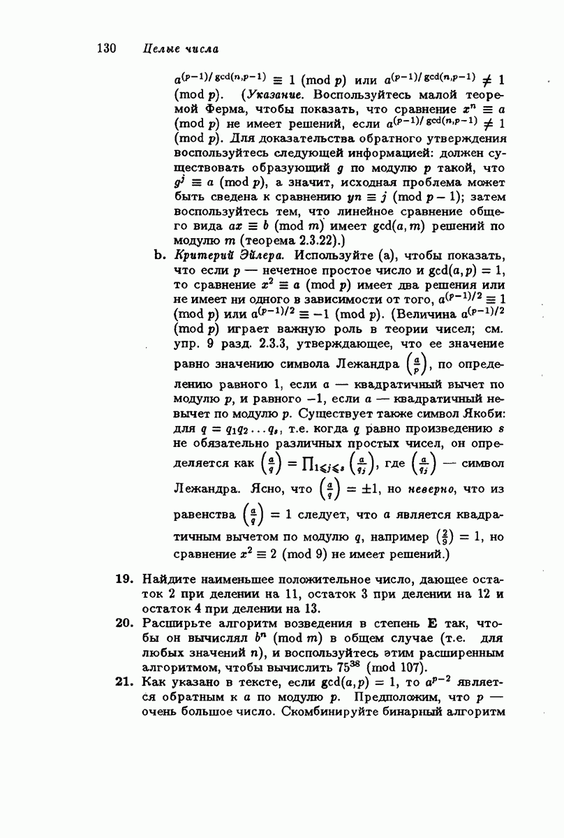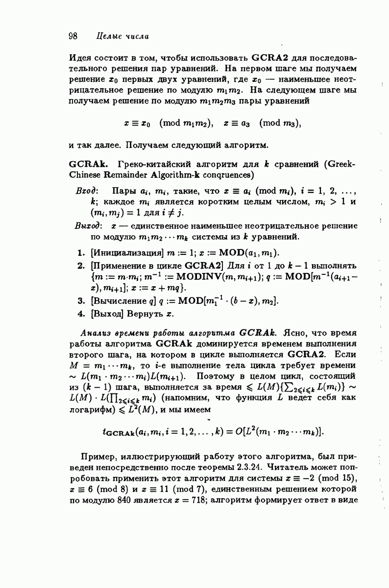 Вычисление наибольшего общего делителя целых чисел — одна из старейших задач, исследованных математиками; предложенный Евклидом метод ее решения является самым древним из существующих теоретико-числовых алгоритмов. В этом разделе мы рассмотрим алгоритм Евклида и близкие вопросы.