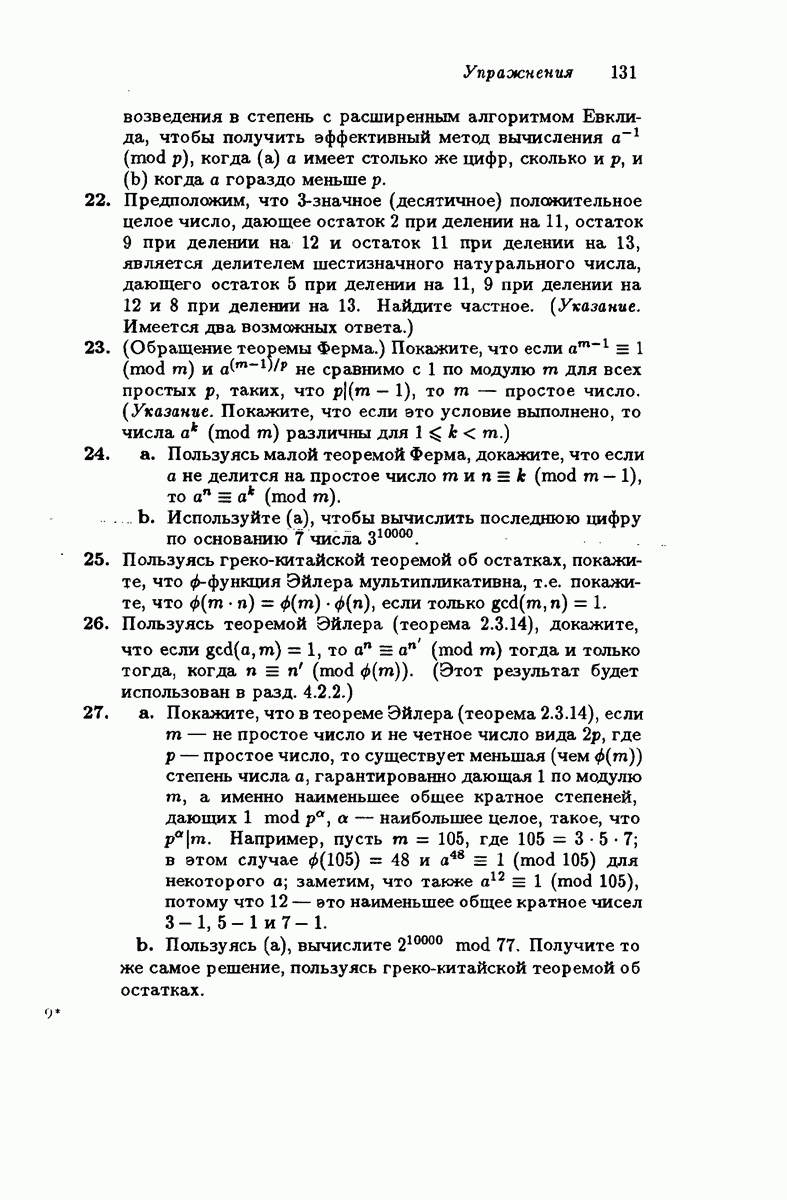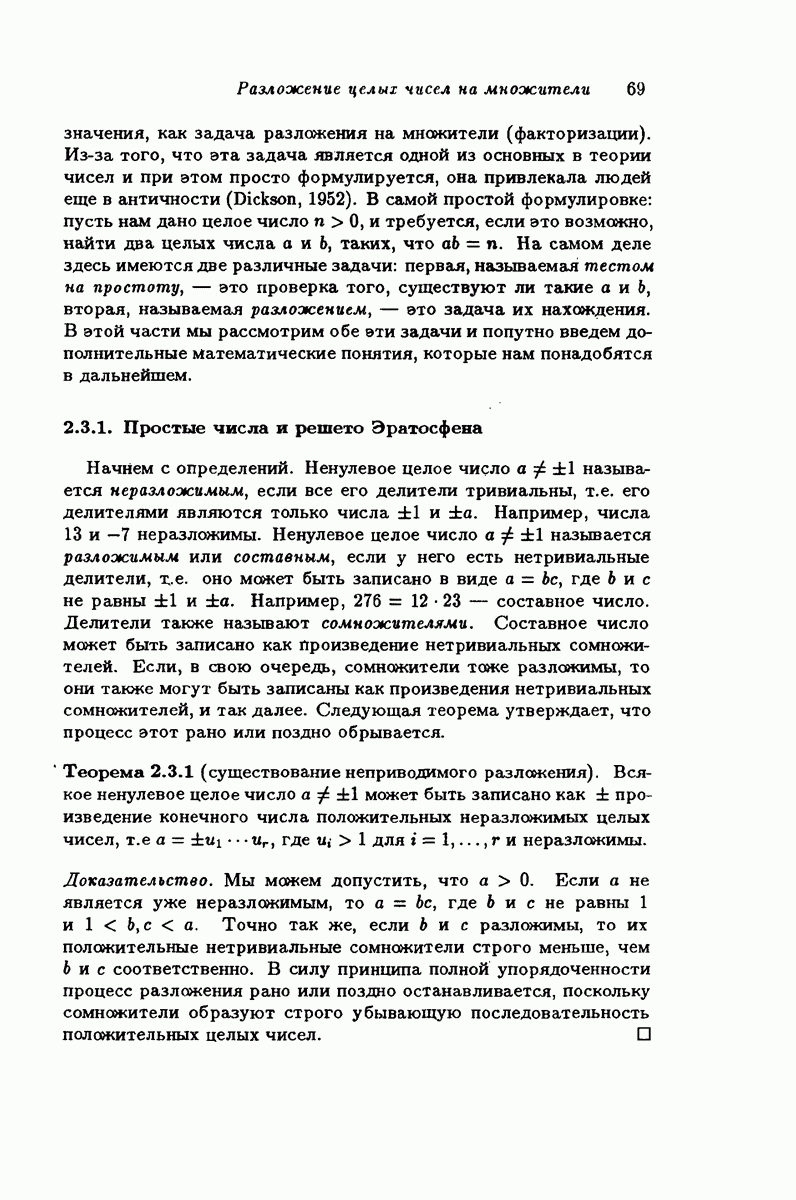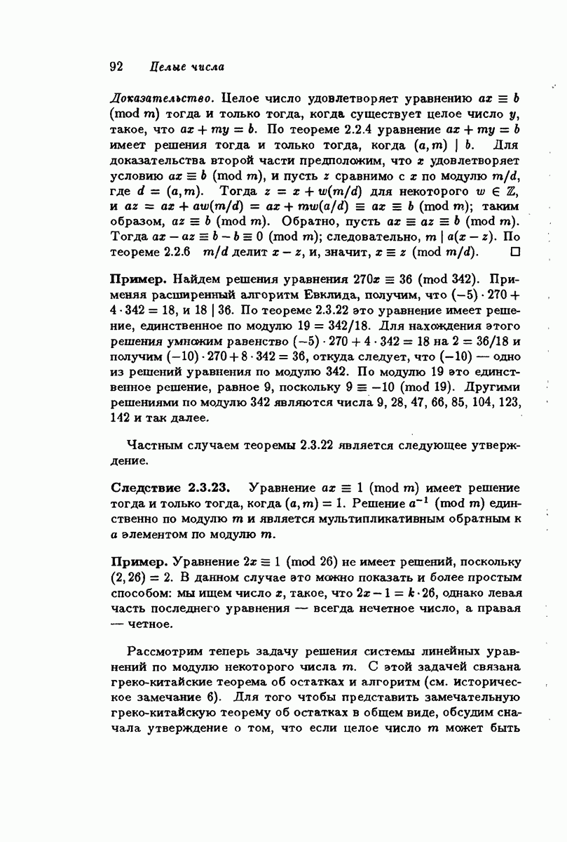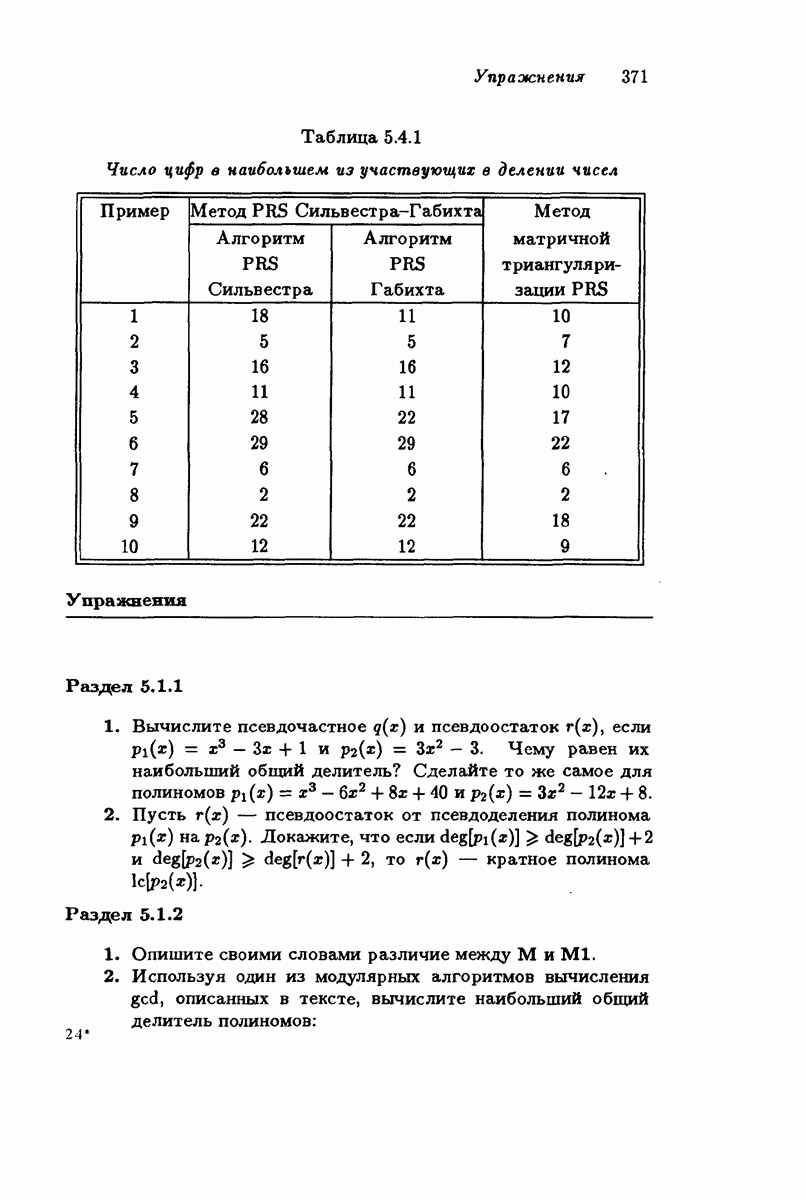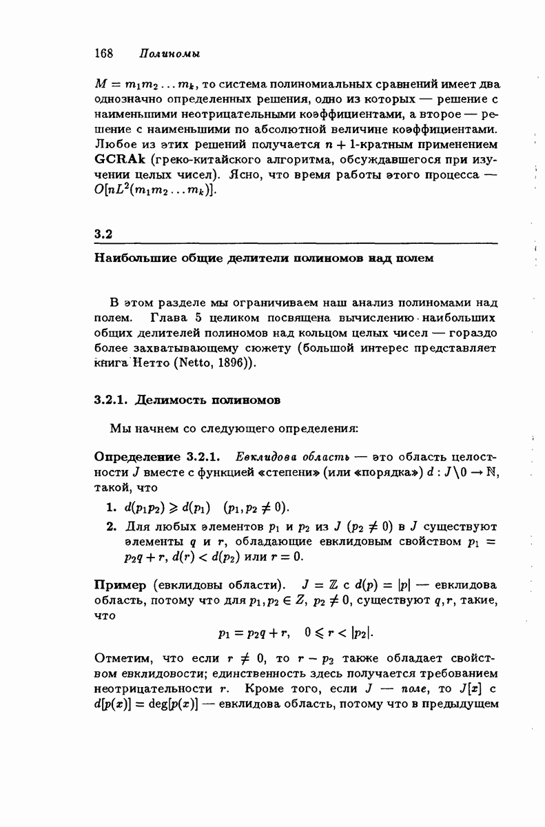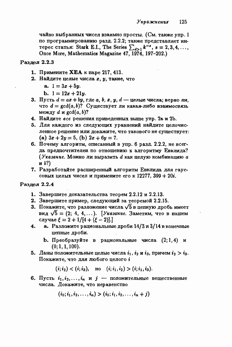 Вычисление наибольшего общего делителя целых чисел — одна из старейших задач, исследованных математиками; предложенный Евклидом метод ее решения является самым древним из существующих теоретико-числовых алгоритмов. В этом разделе мы рассмотрим алгоритм Евклида и близкие вопросы.