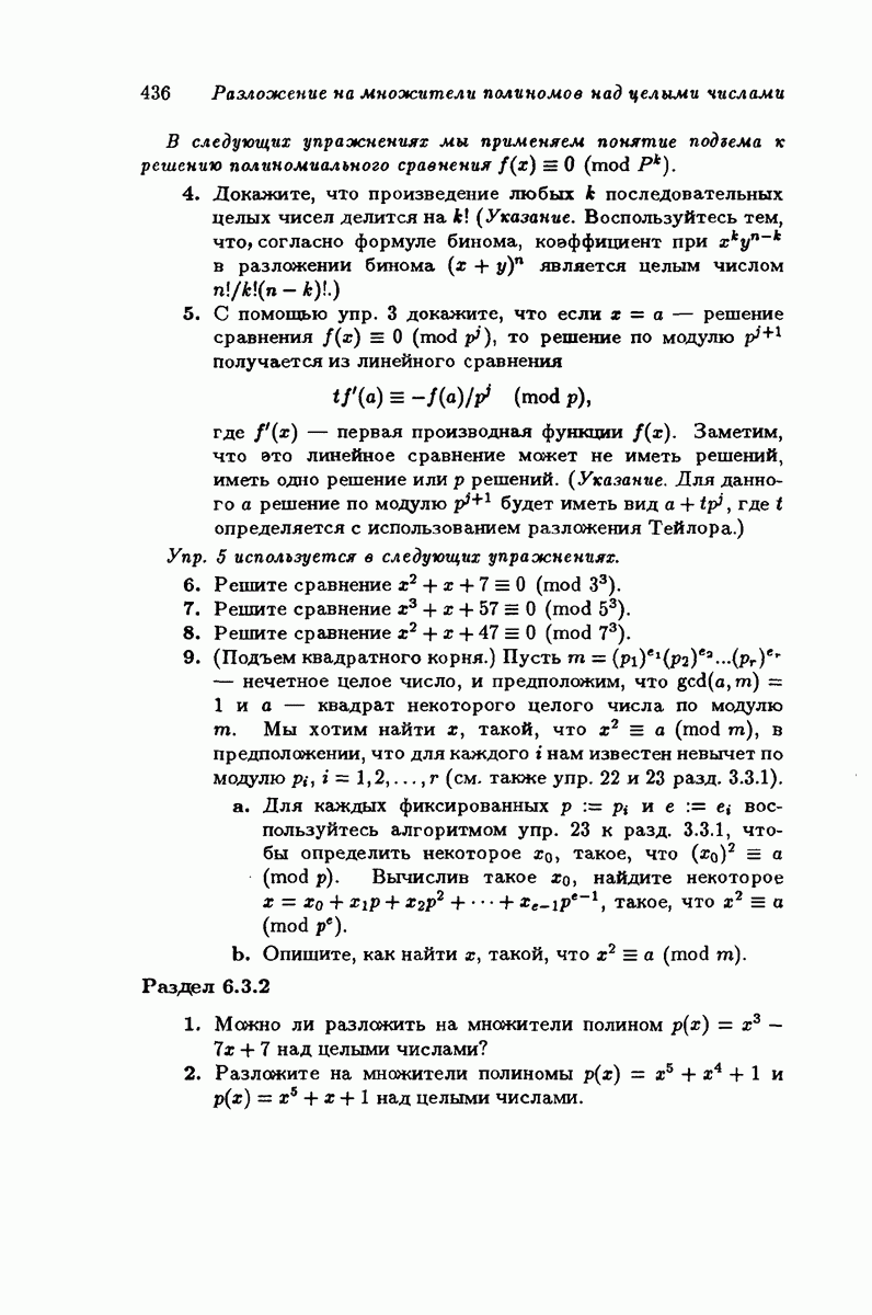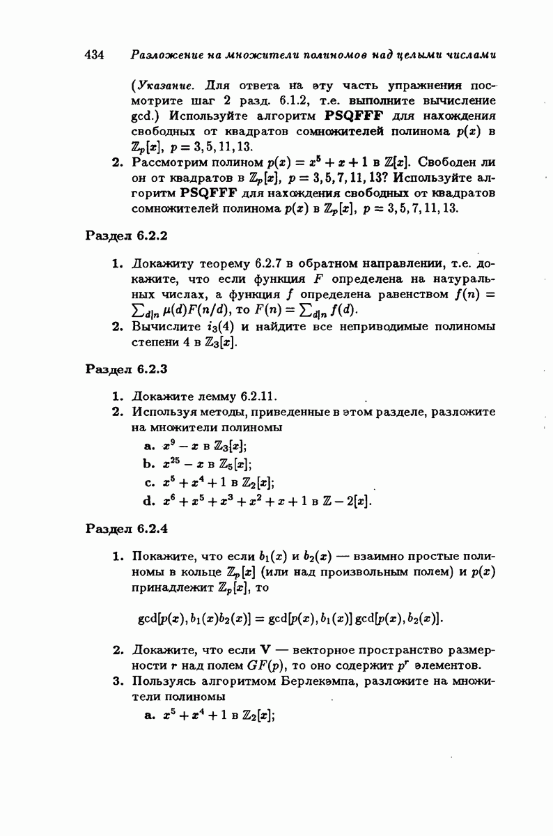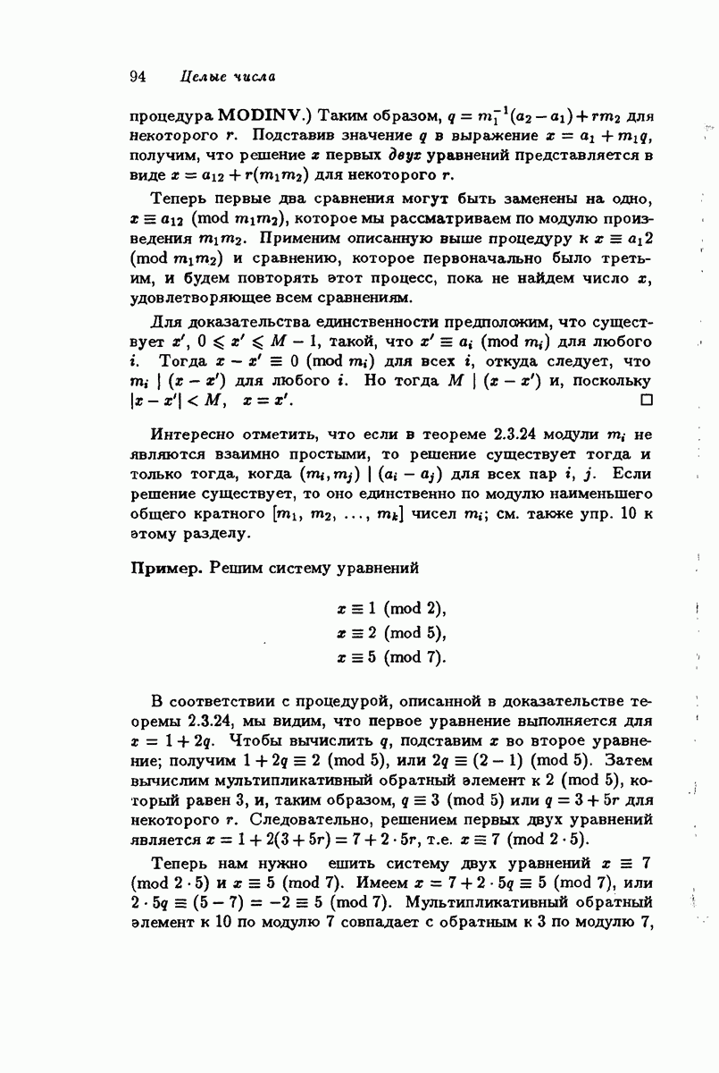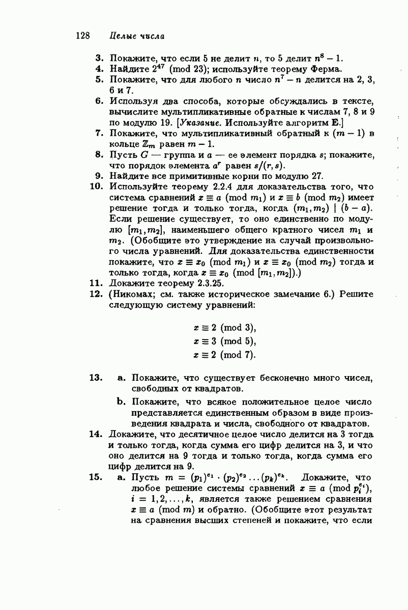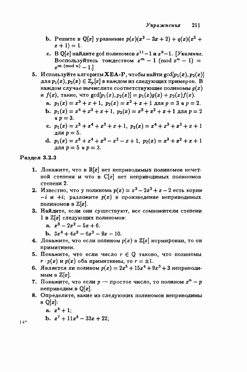 Вычисление наибольшего общего делителя целых чисел — одна из старейших задач, исследованных математиками; предложенный Евклидом метод ее решения является самым древним из существующих теоретико-числовых алгоритмов. В этом разделе мы рассмотрим алгоритм Евклида и близкие вопросы.