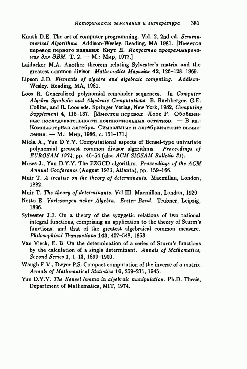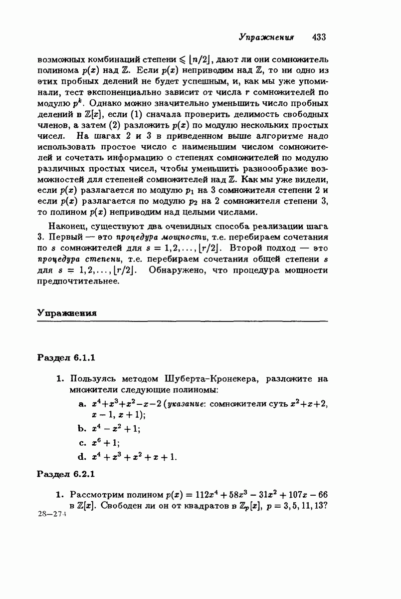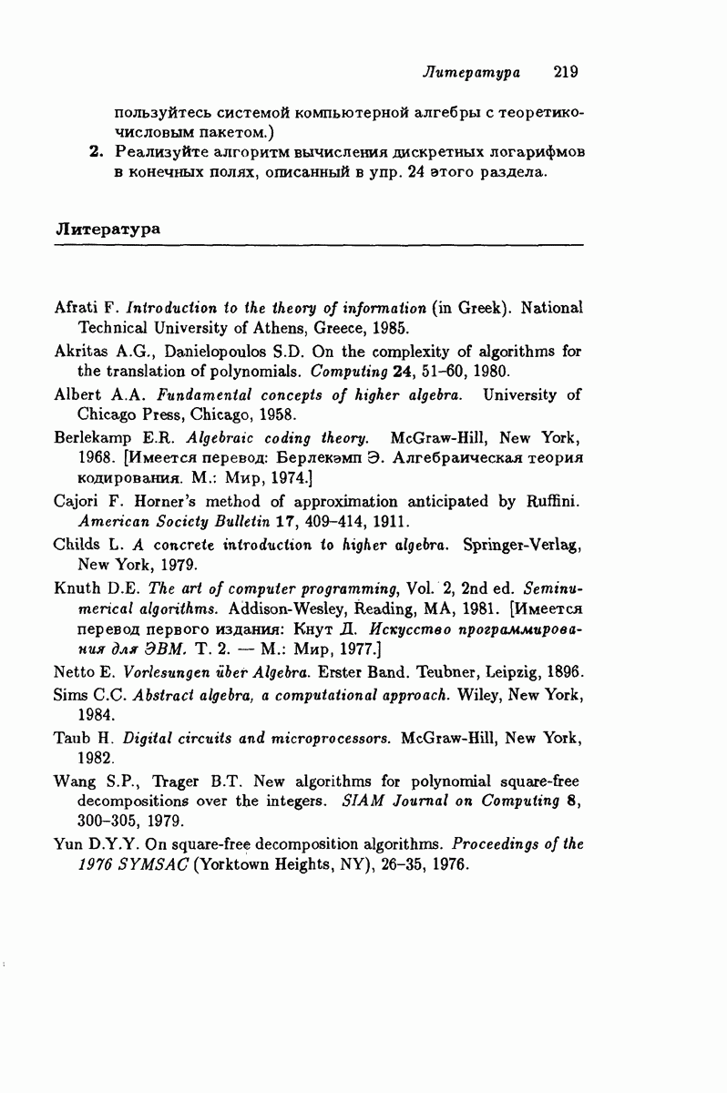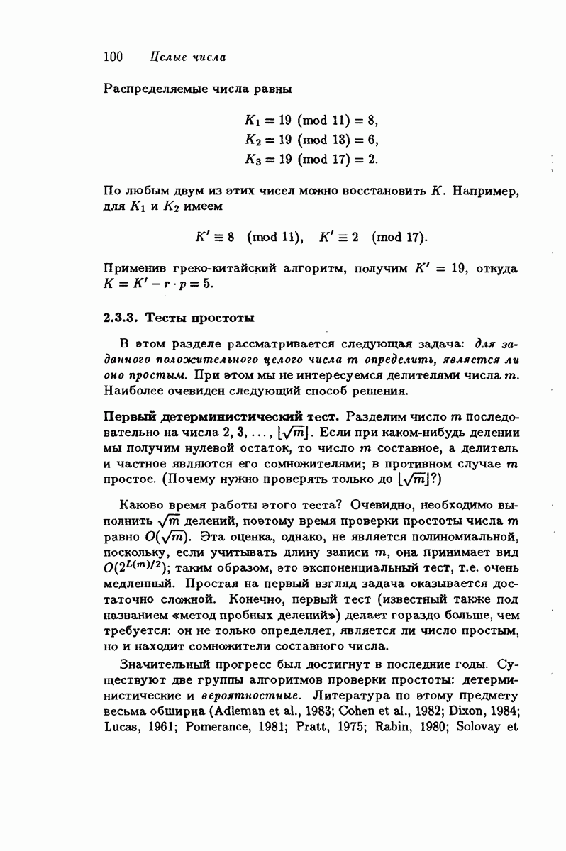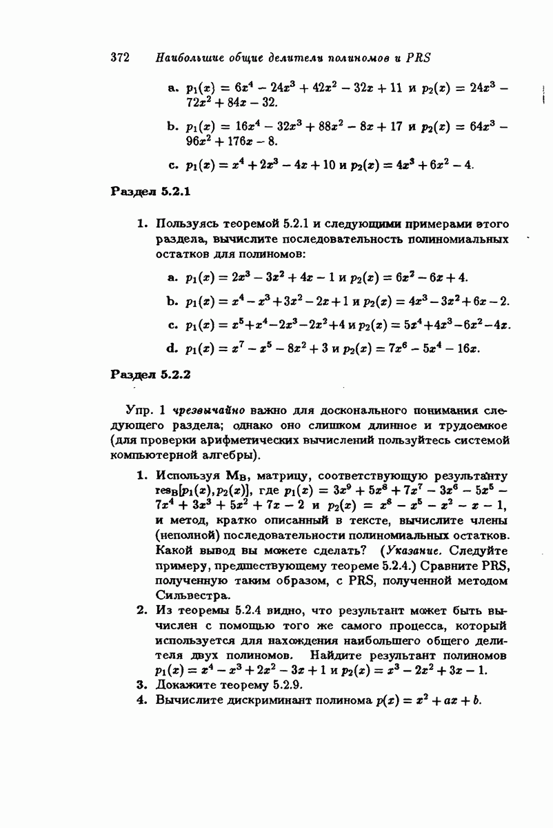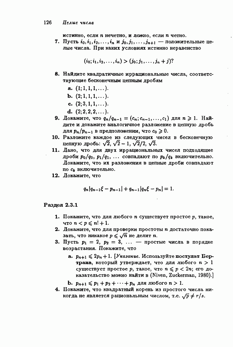 Вычисление наибольшего общего делителя целых чисел — одна из старейших задач, исследованных математиками; предложенный Евклидом метод ее решения является самым древним из существующих теоретико-числовых алгоритмов. В этом разделе мы рассмотрим алгоритм Евклида и близкие вопросы.